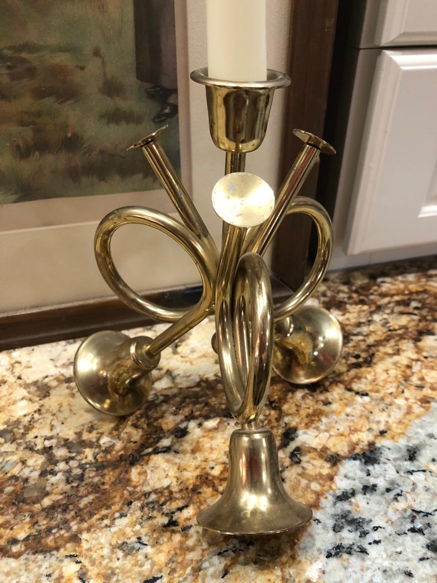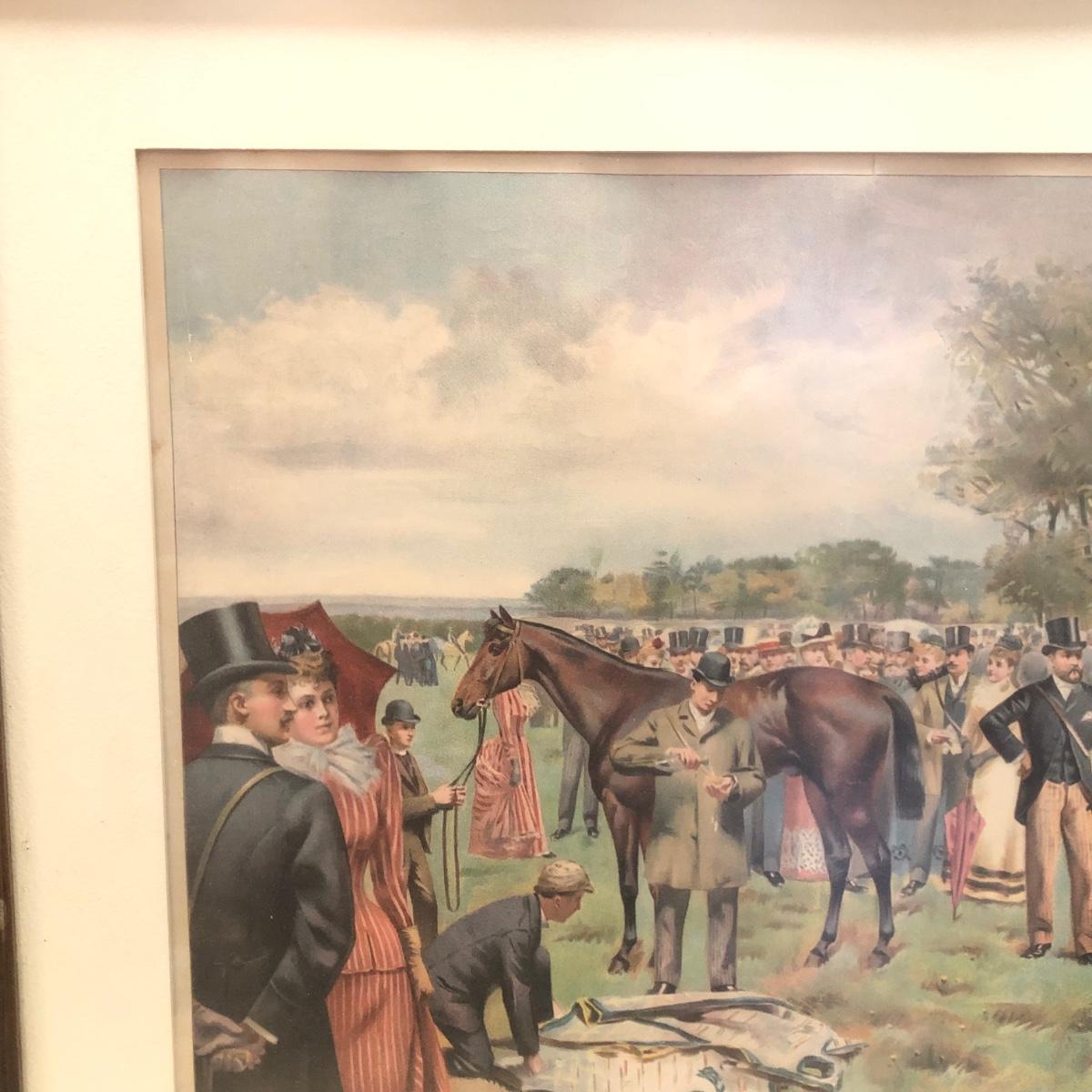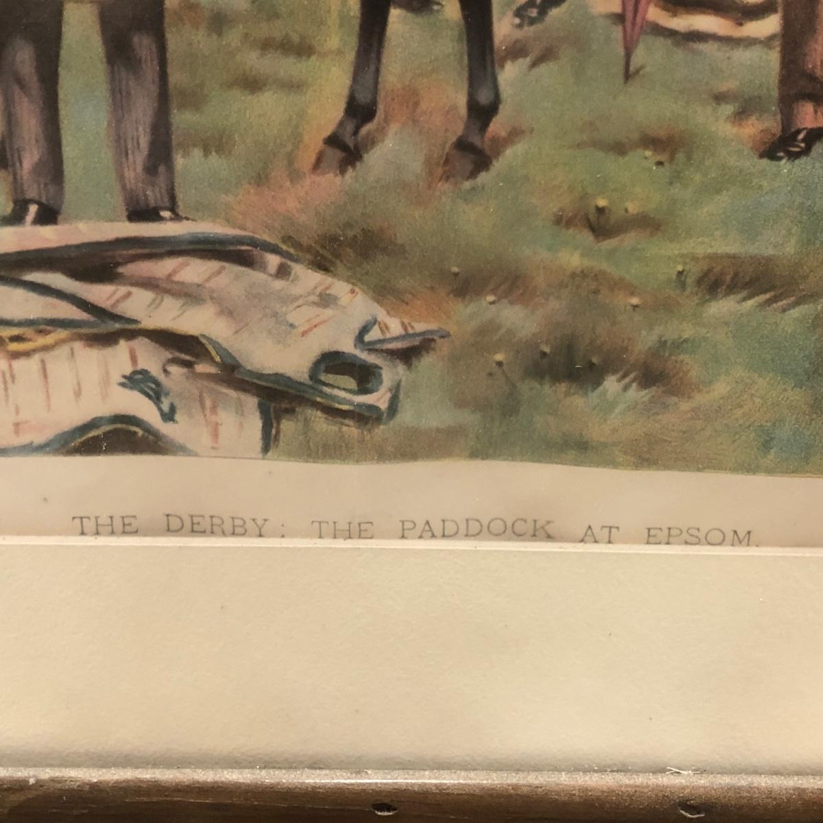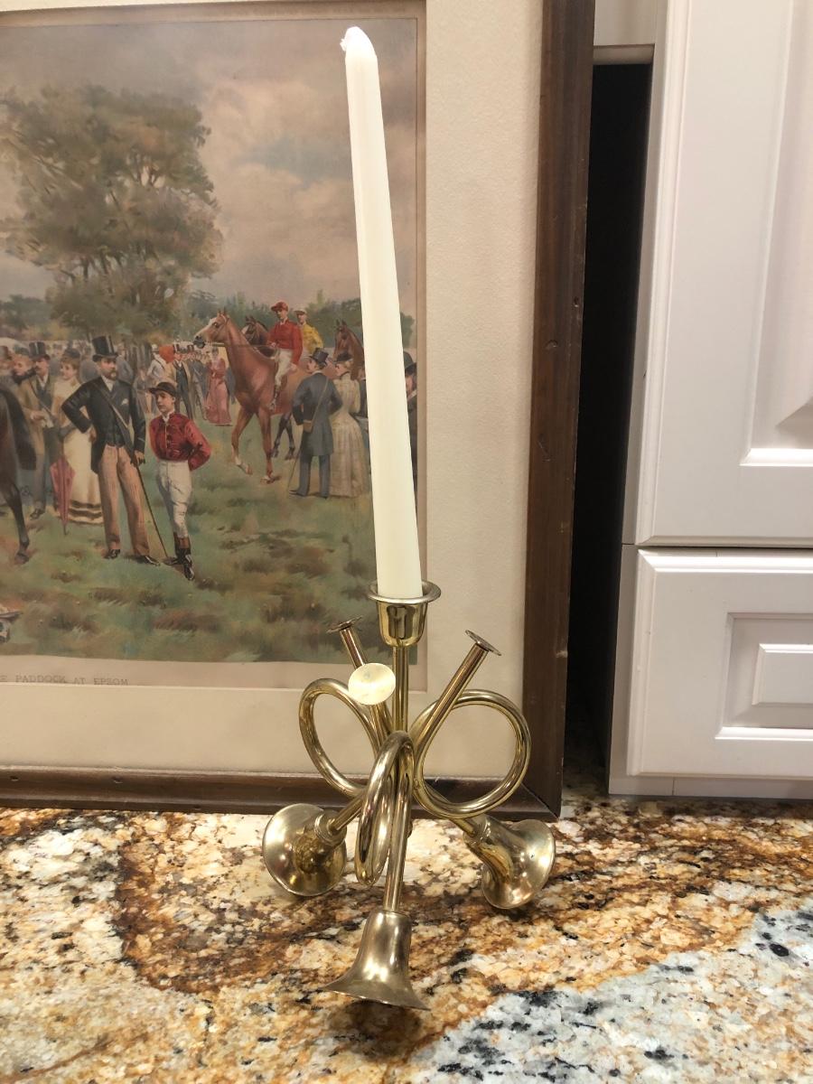 LOT 53M: Framed "The Derby: Paddock at Epsom" Print & French Horn Candle Holder