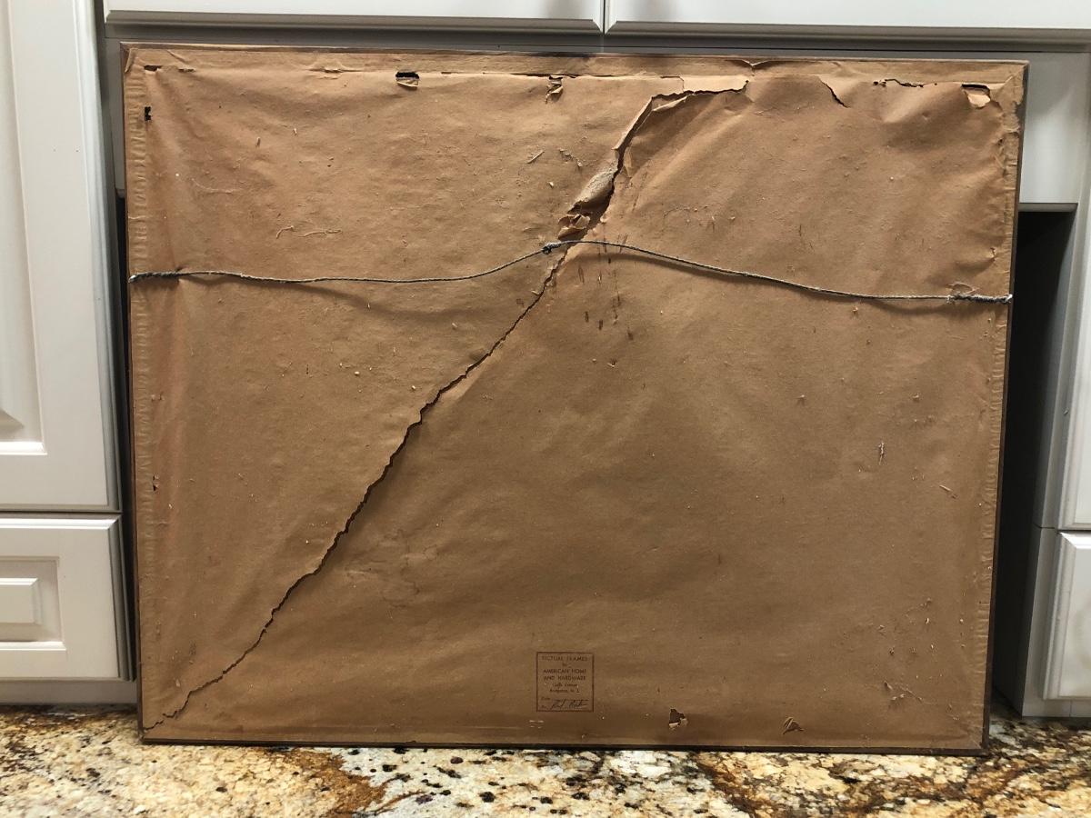 Framed print measures 27 x 22 inches. Candle holder includes candle.