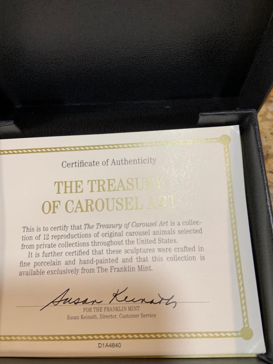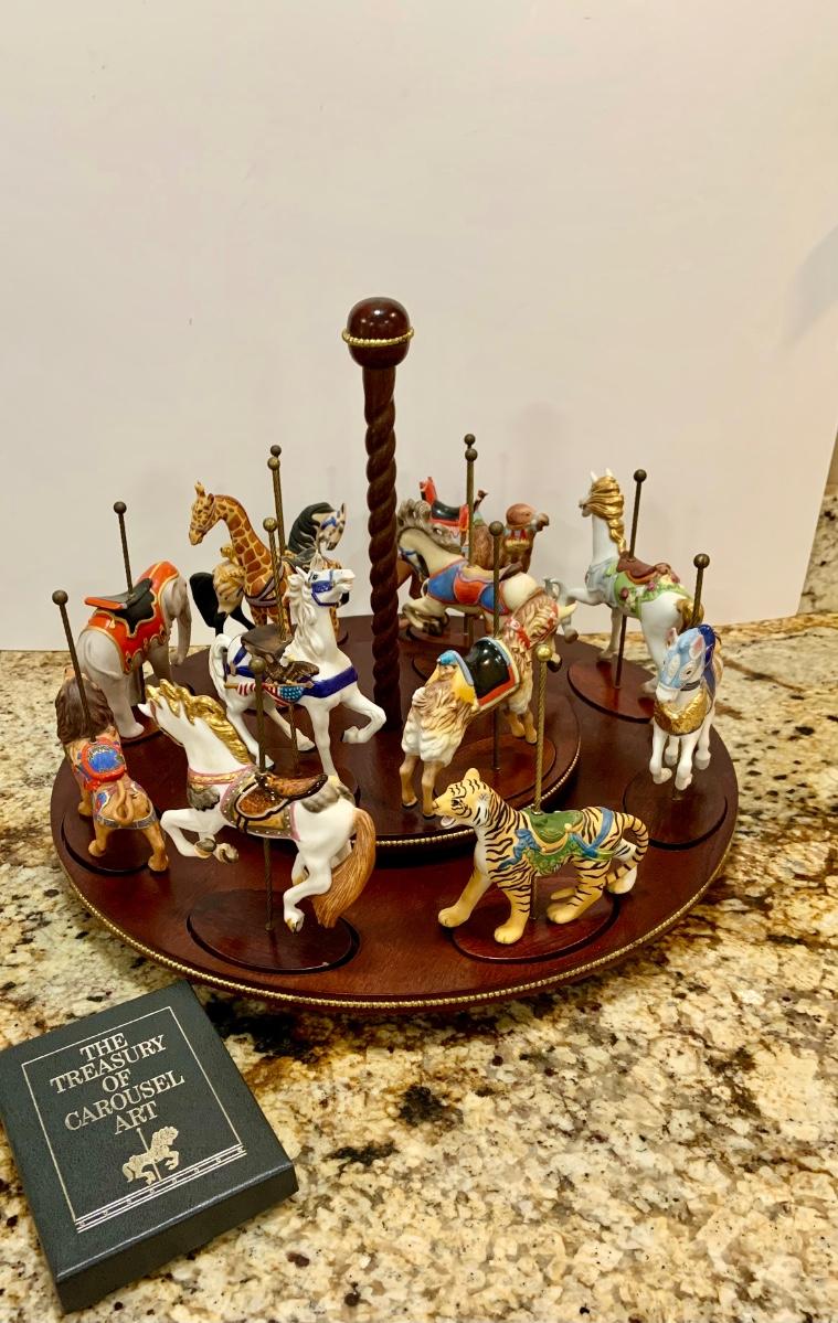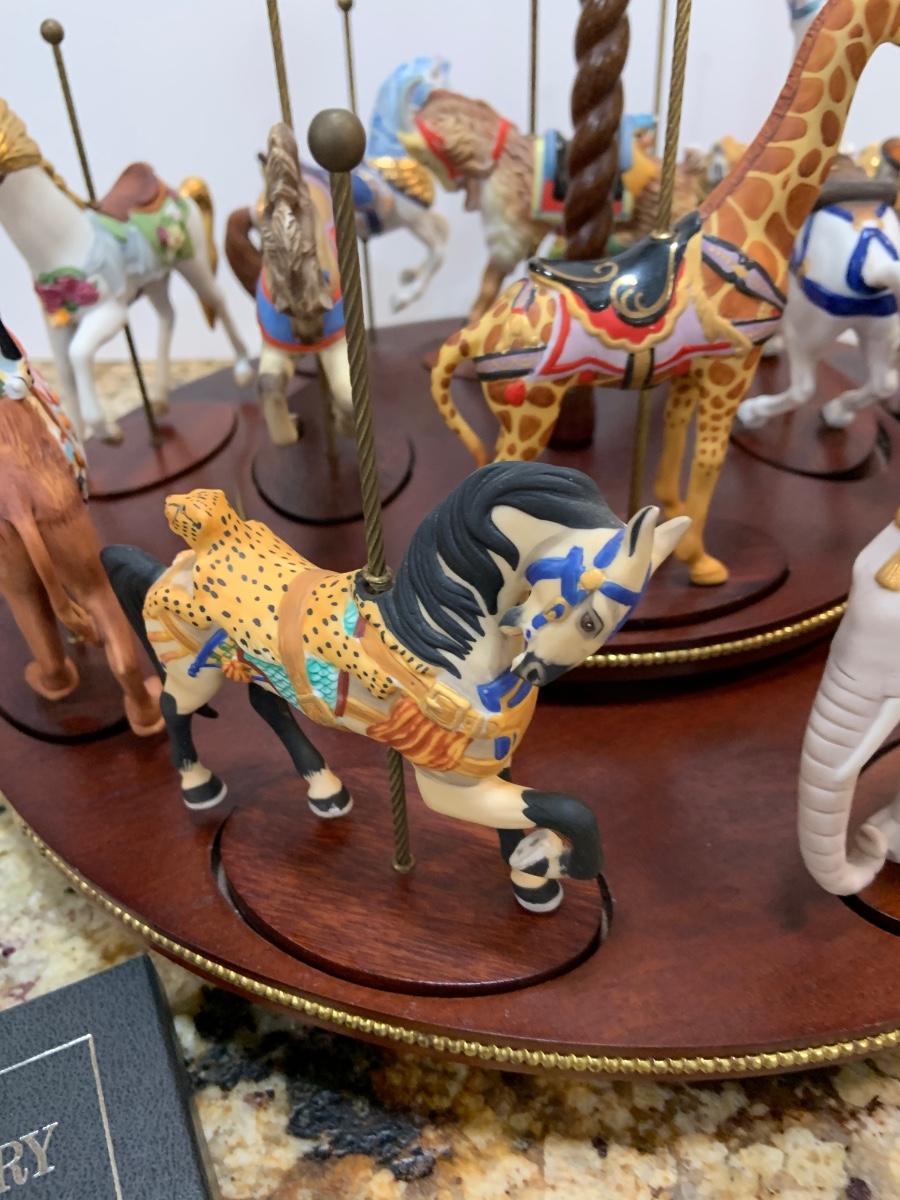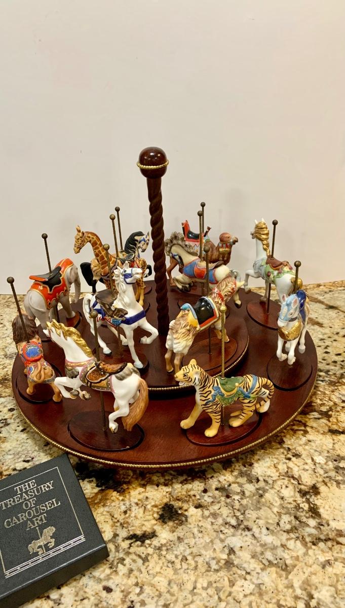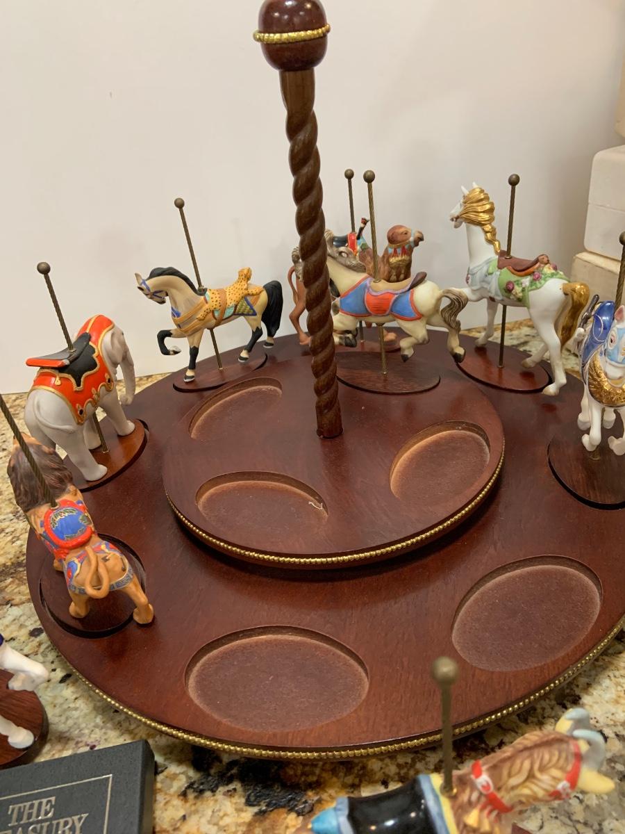 LOT:76G: Complete Set of Franklin Mint’s Treasury of Carousel Art with Wood Carousel Display, COAs and Boxes