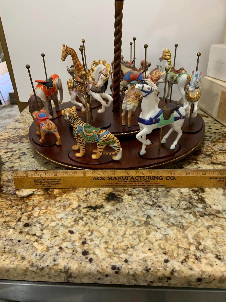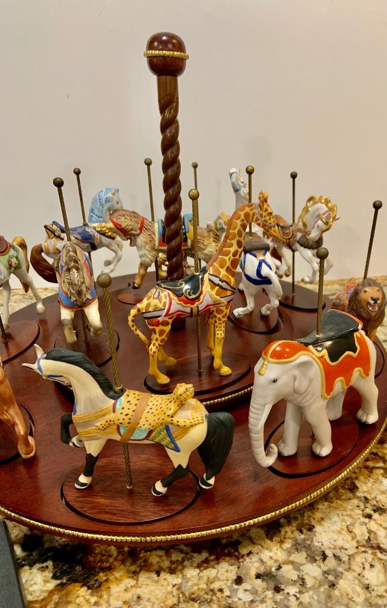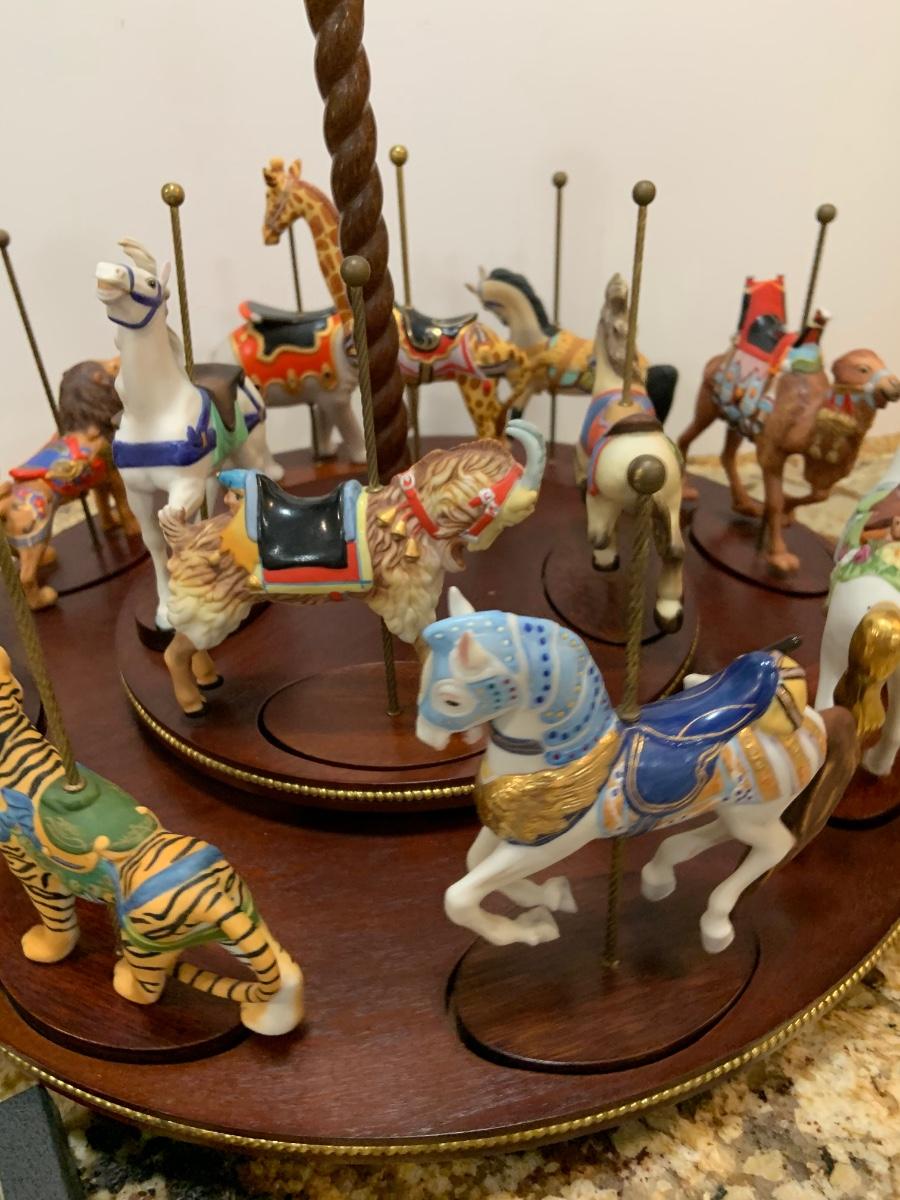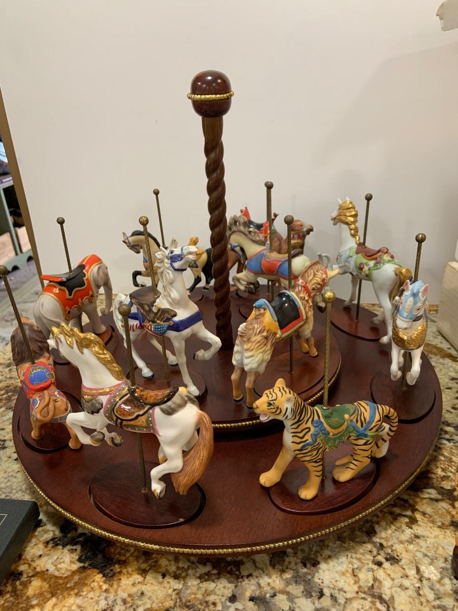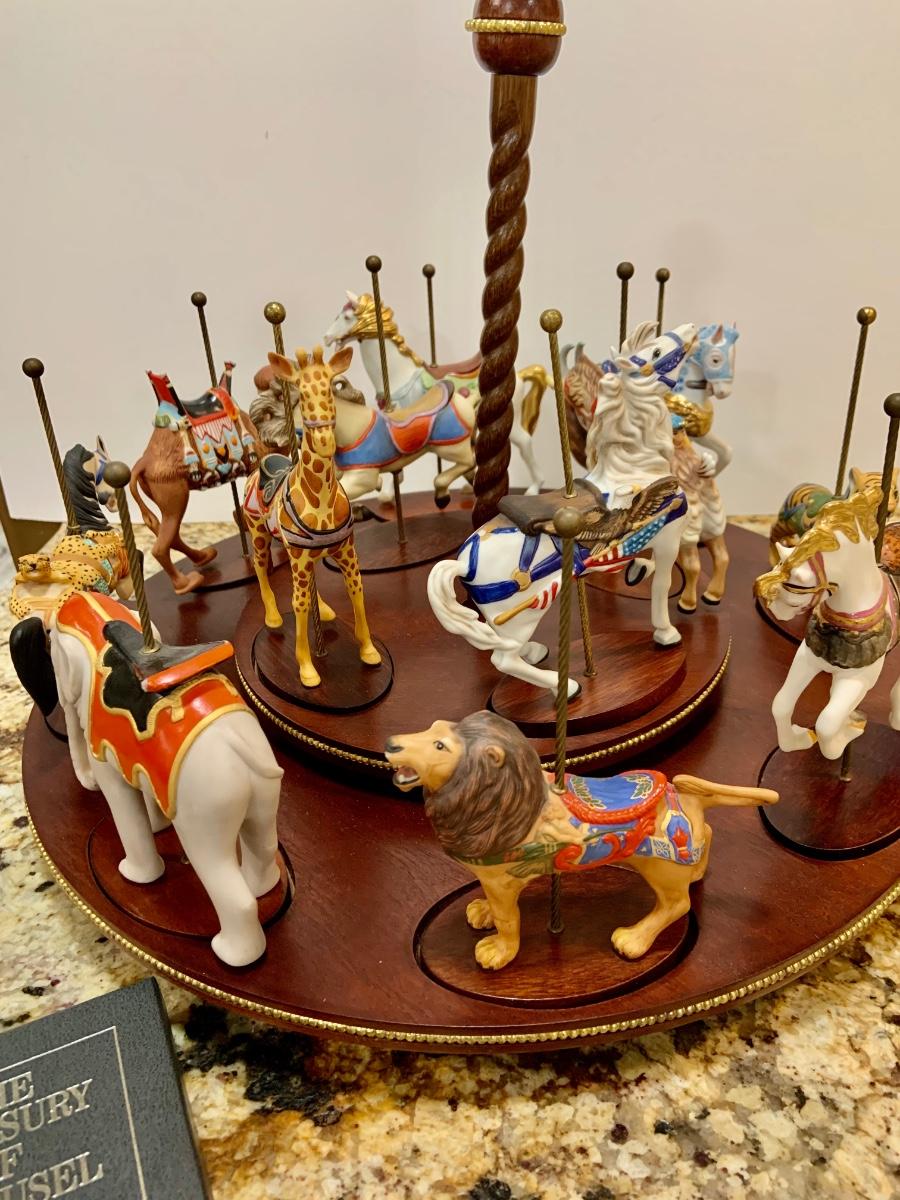 LOT:76G: Complete Set of Franklin Mint’s Treasury of Carousel Art with Wood Carousel Display, COAs and Boxes