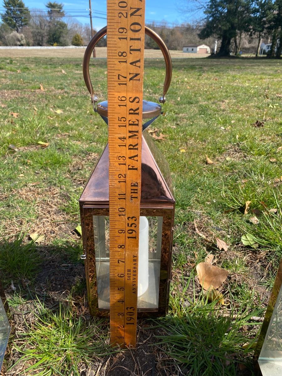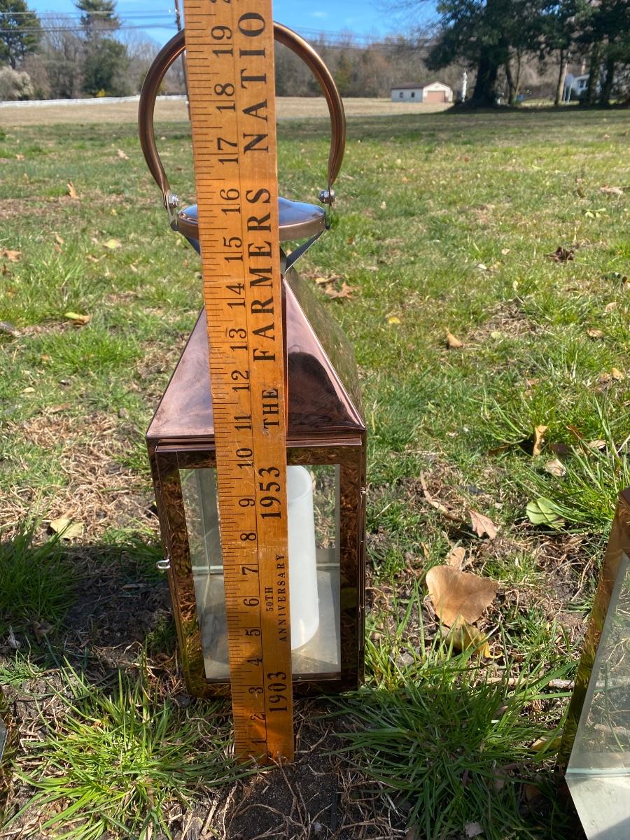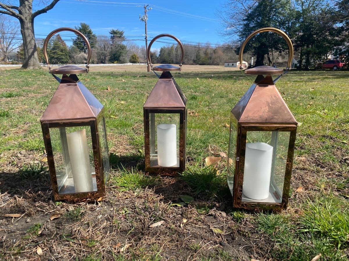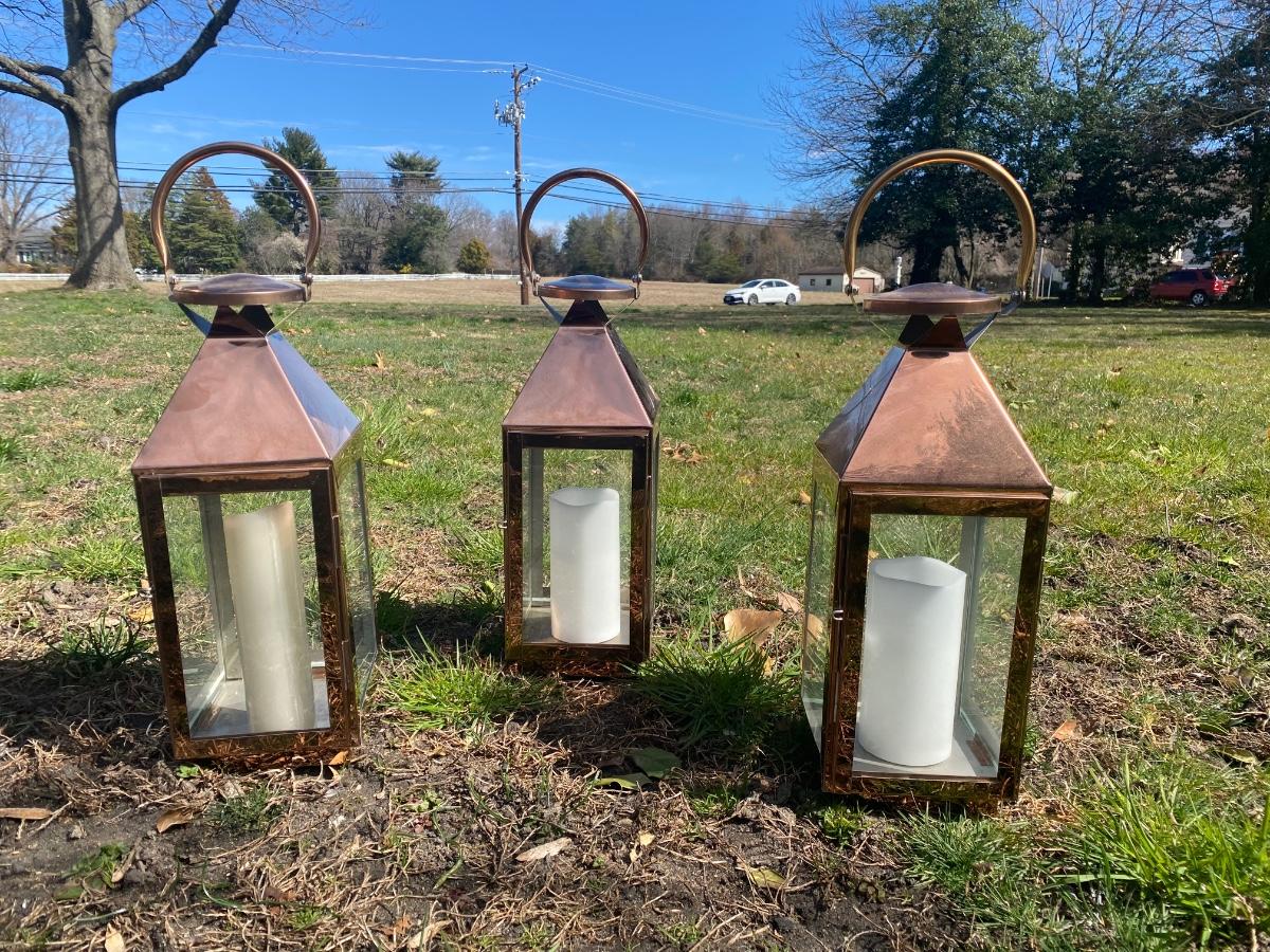LOT:79: 3 Cooper Candle Lanterns Battery Powered Faux Candles