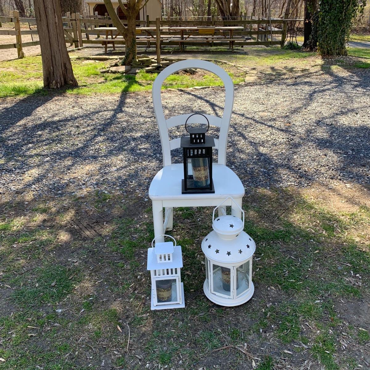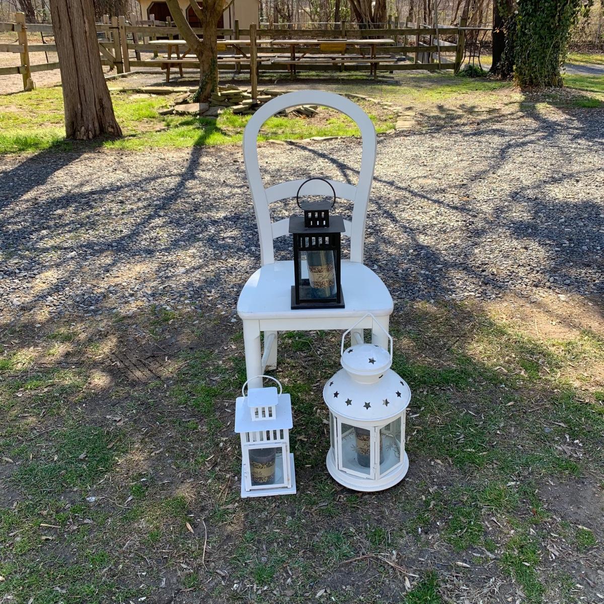3 lanterns & white chair