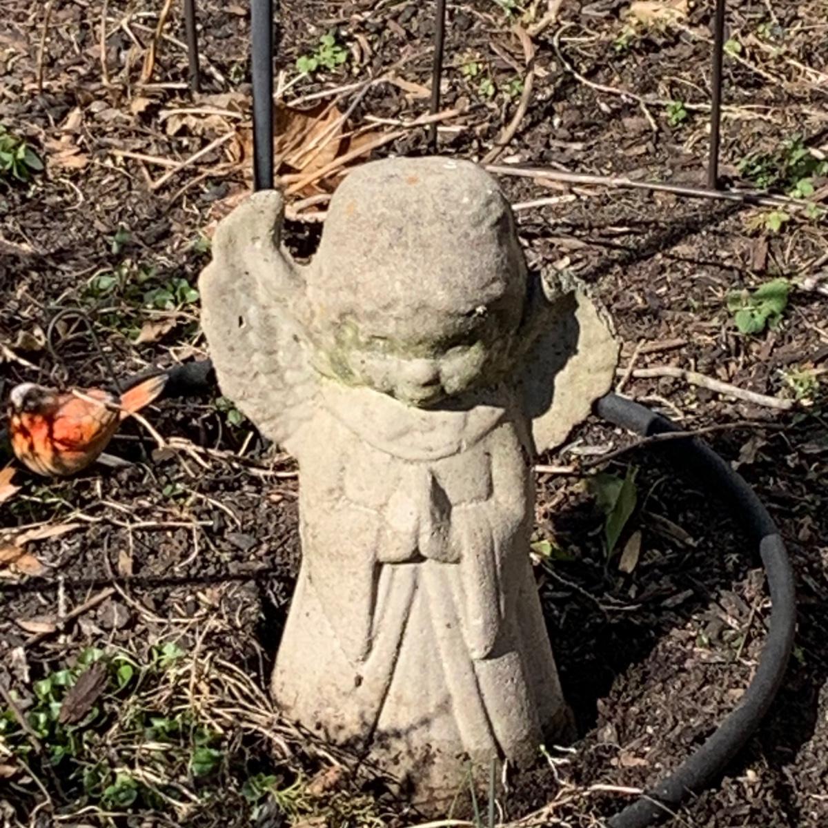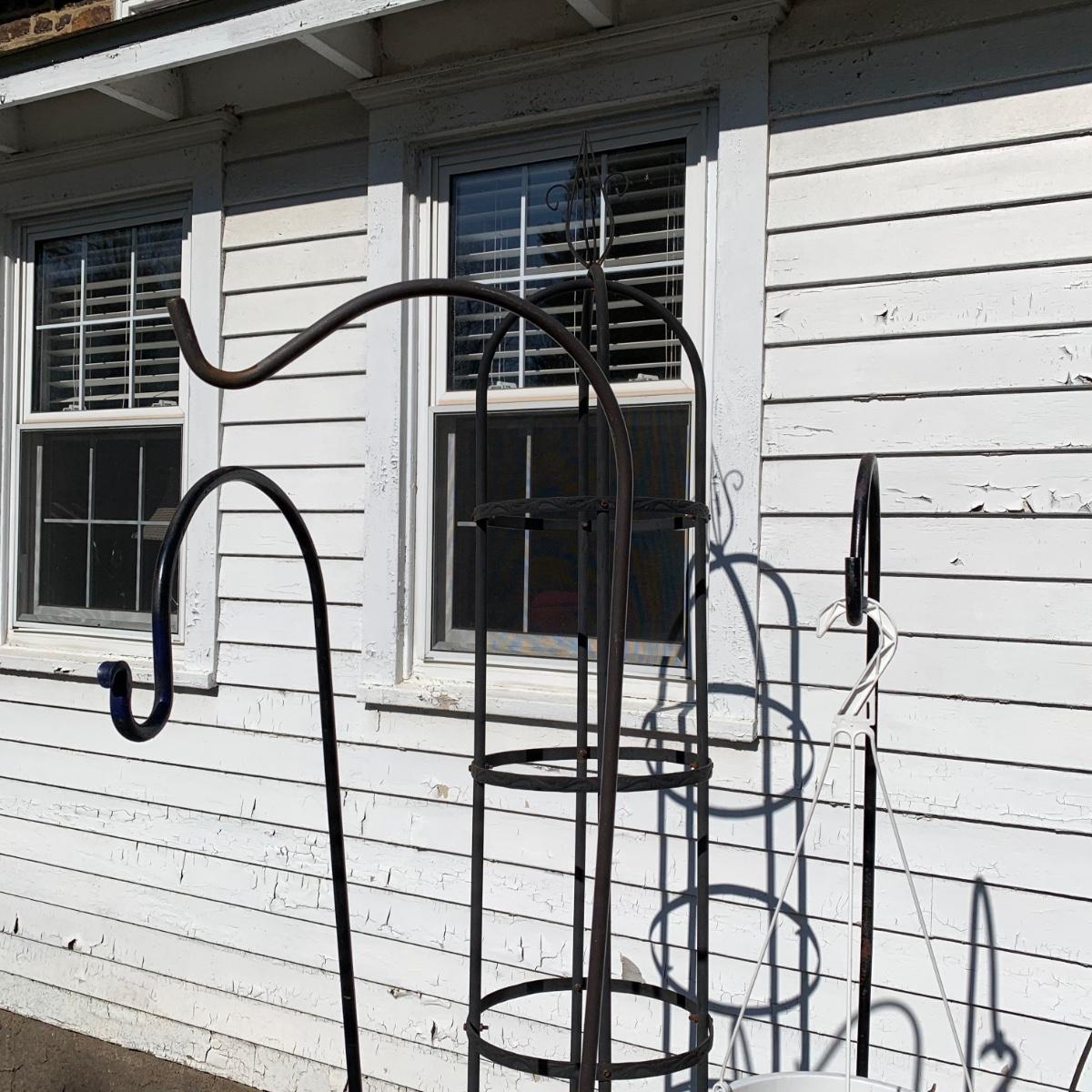 Get ready for gardening with shepherd hooks, trellis's and more. Cement angel pictured is broken as pictured.