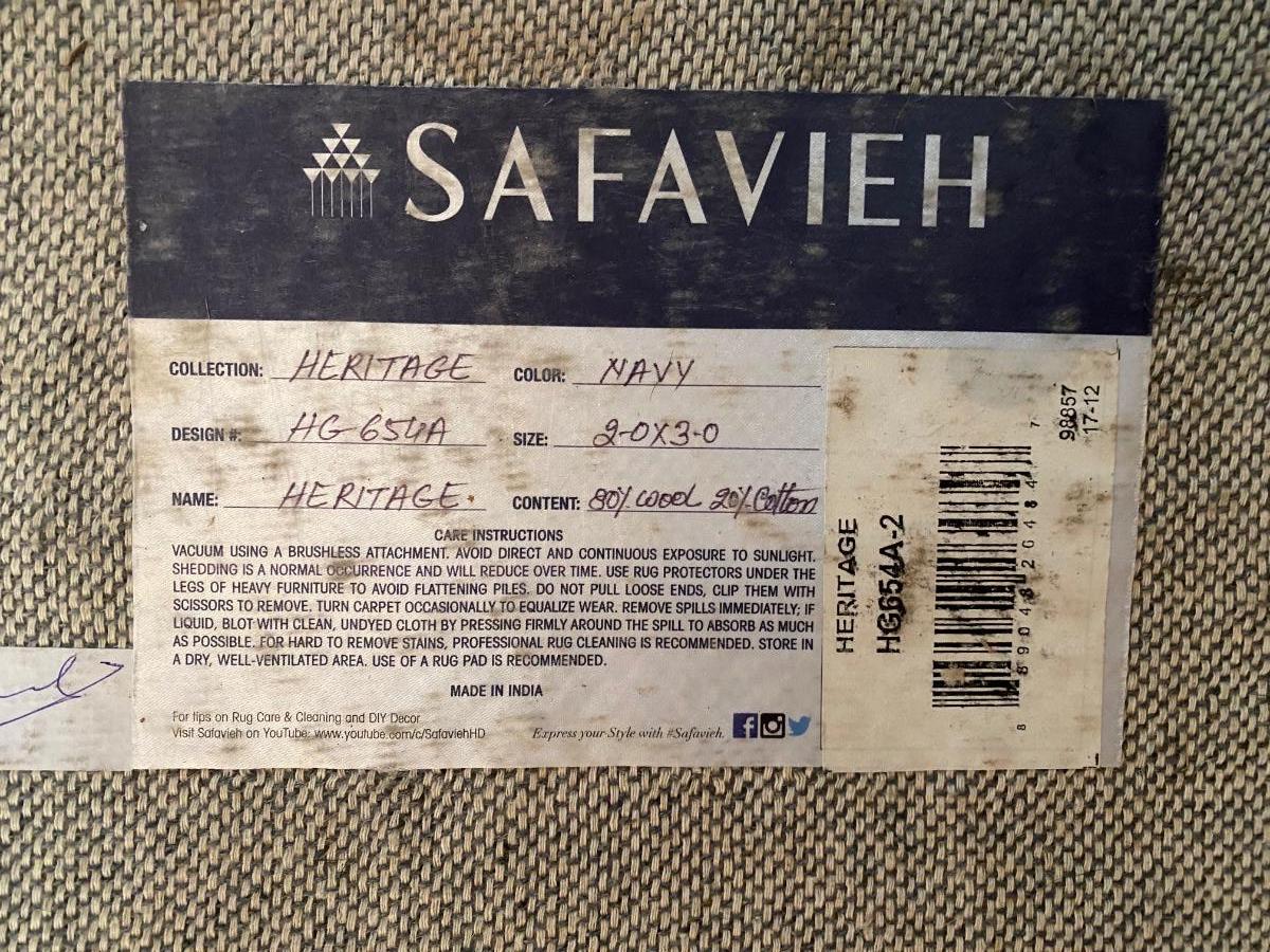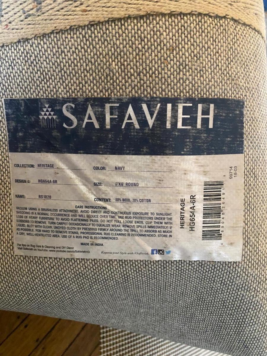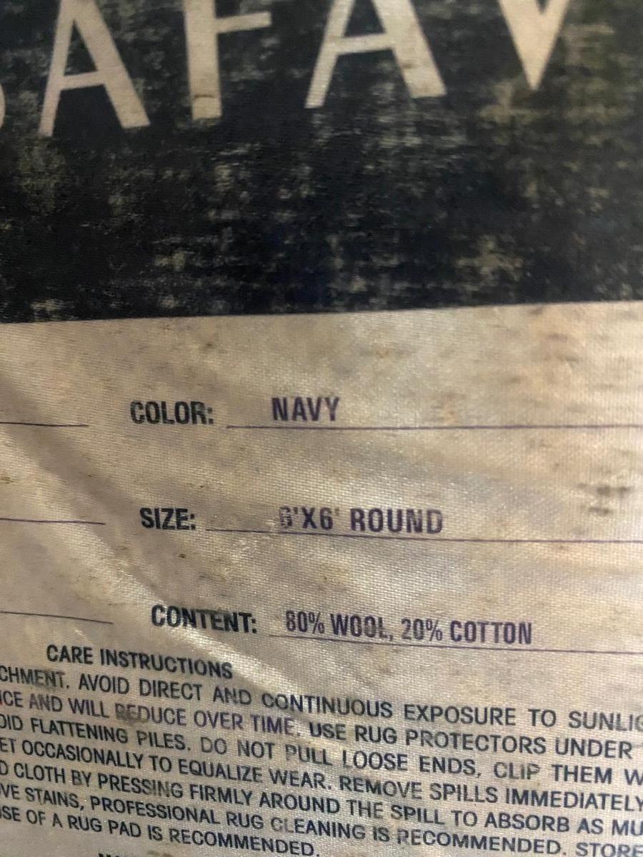 LOT:128: Two  Safavieth Wool/ Cotton Blend Navy Rugs Round and Rectangular Made in India