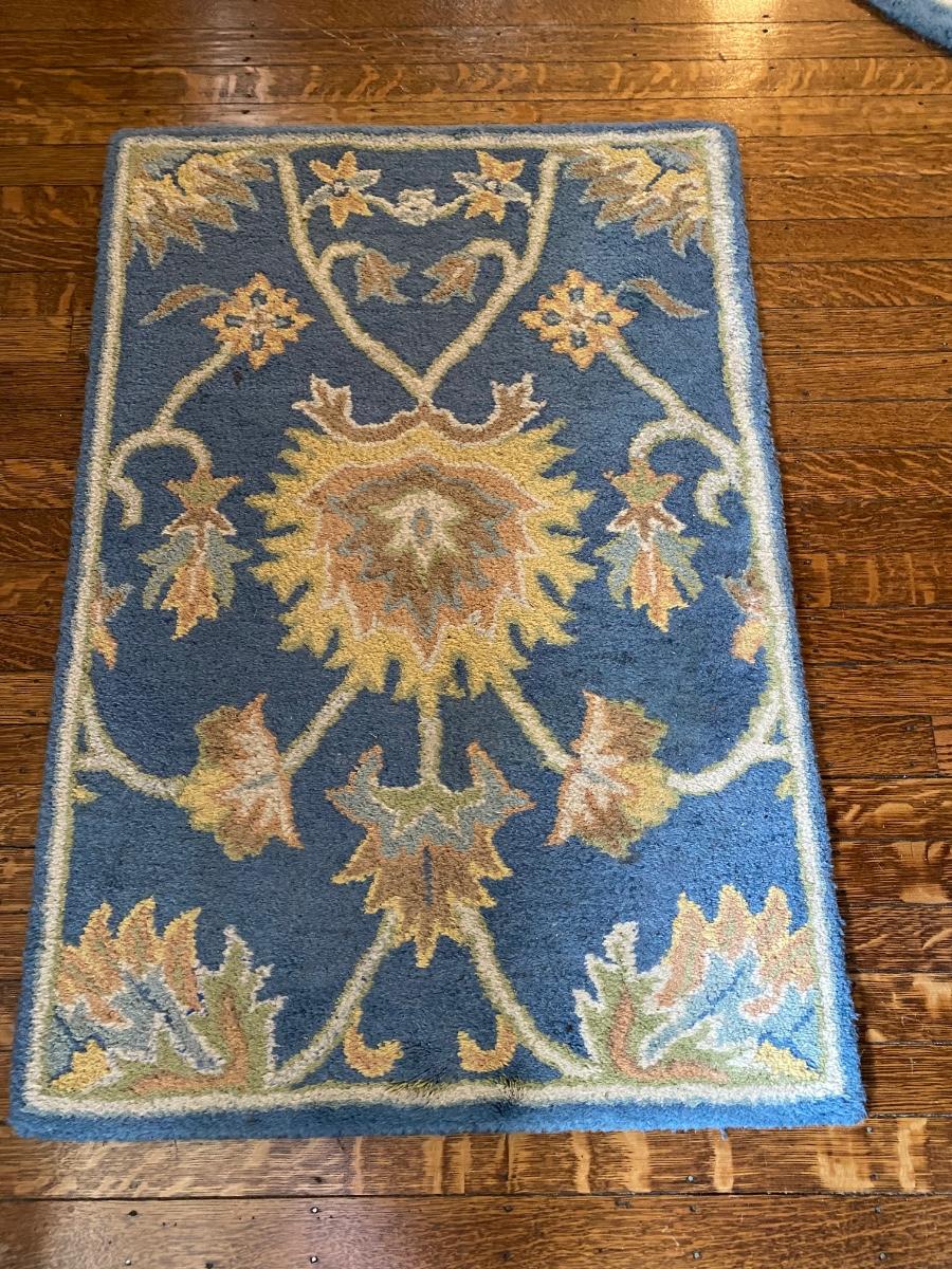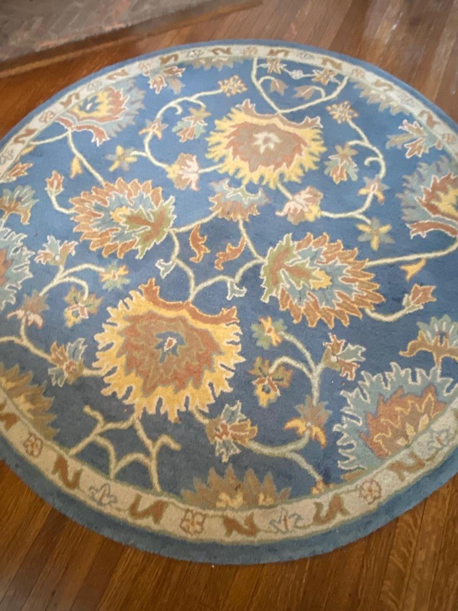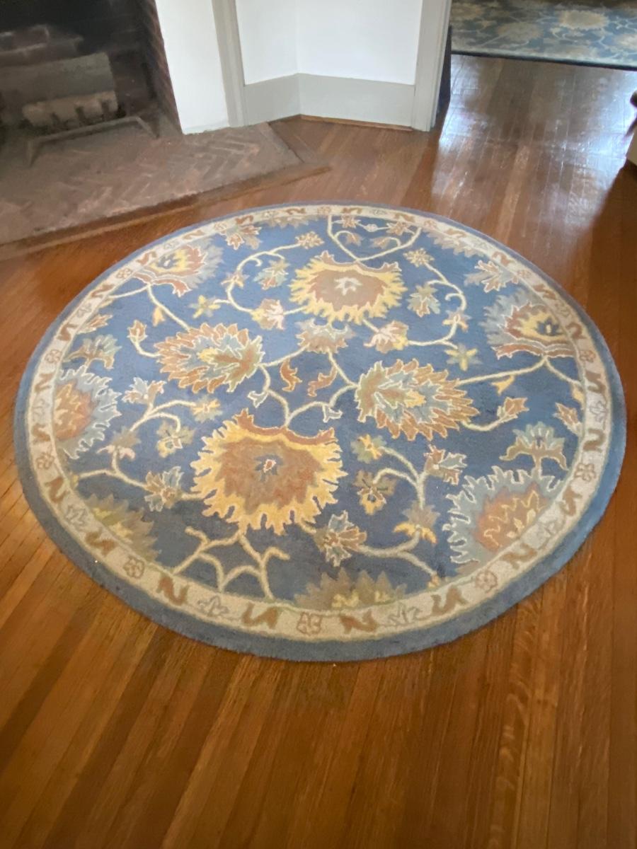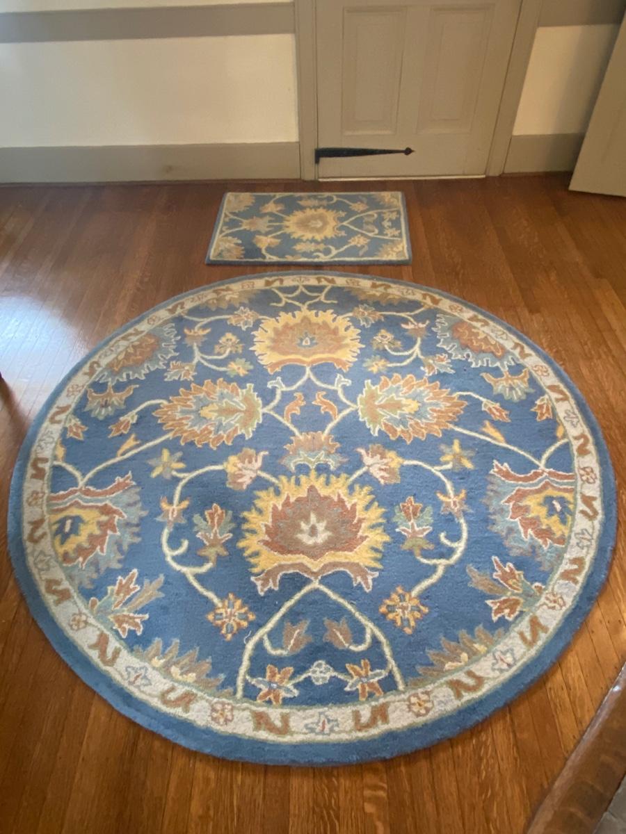 LOT:128: Two Safavieth Wool/ Cotton Blend Navy Rugs Round and Rectangular Made in India