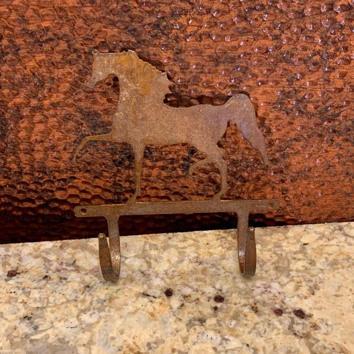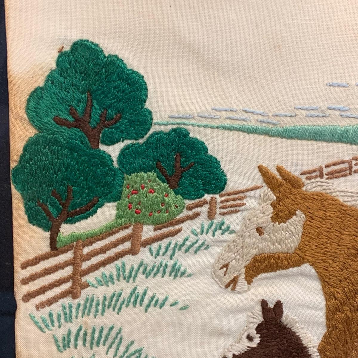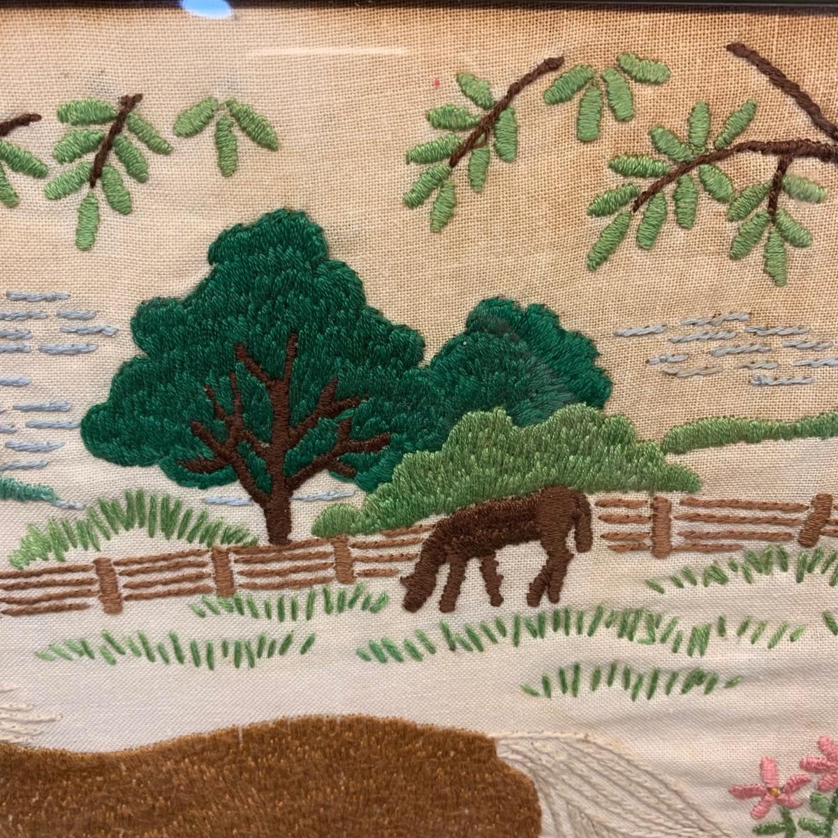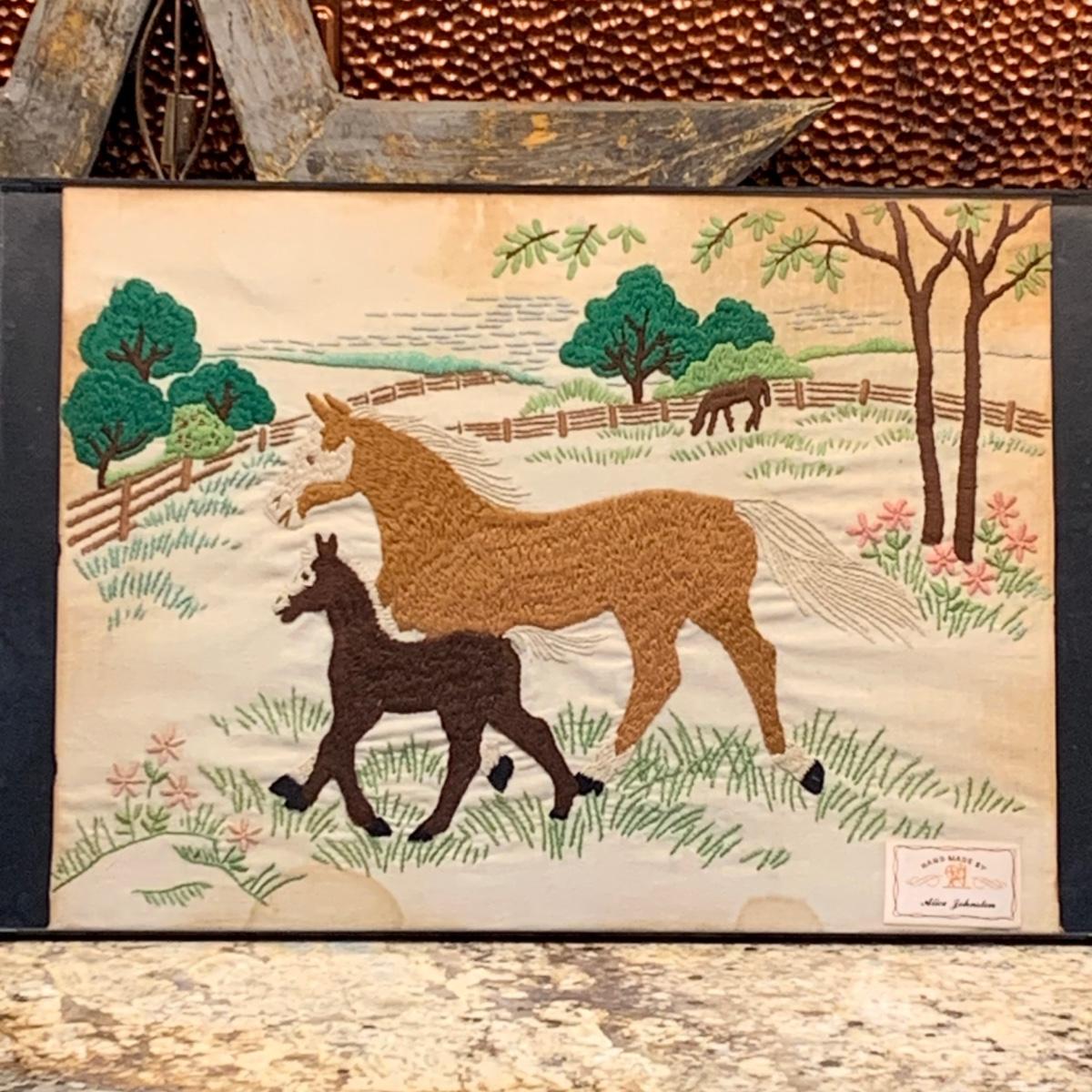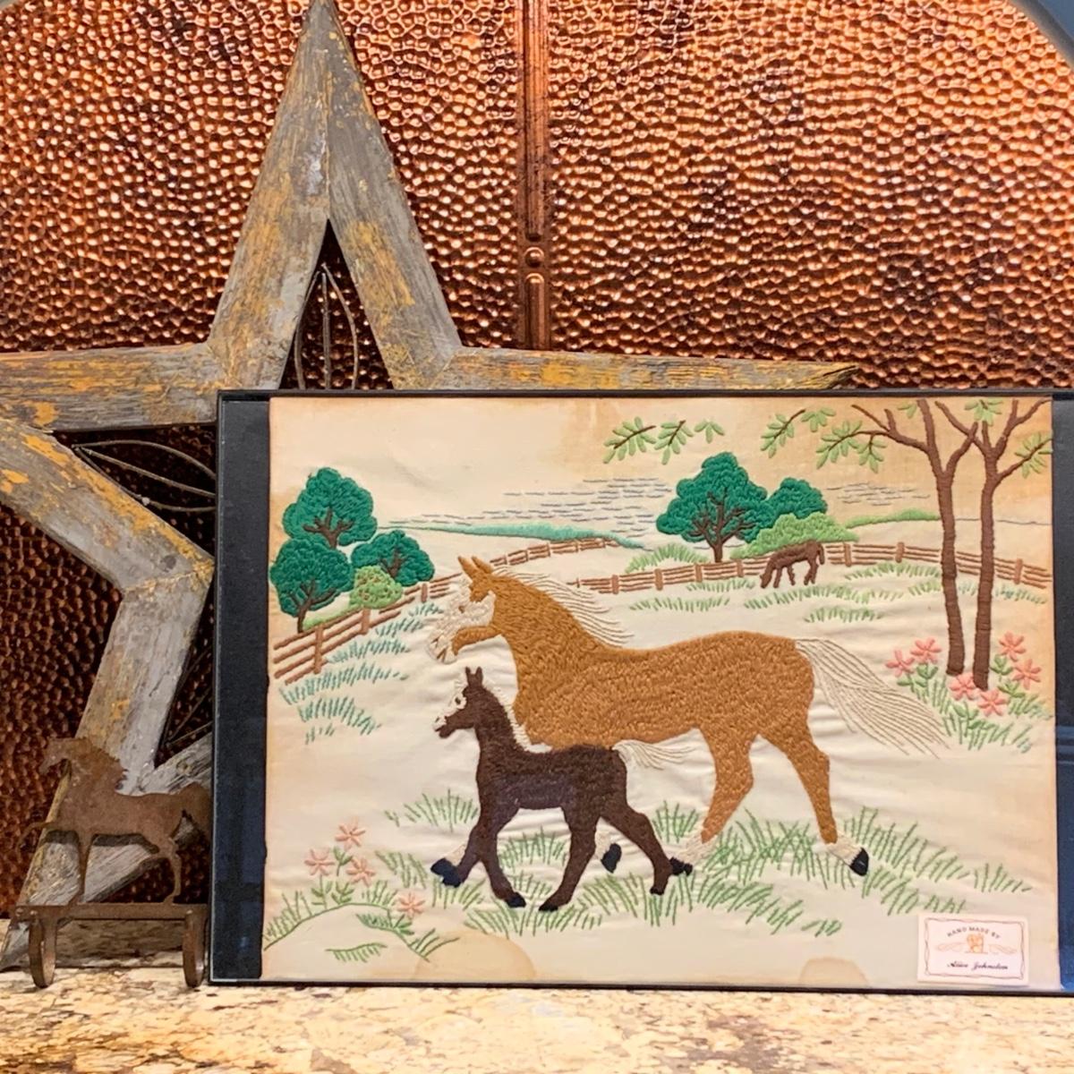 LOT 137R: Vintage Framed Needlepoint, Rustic Home Decor Wood & Metal Star & Metal Horse Cutout Key Holder