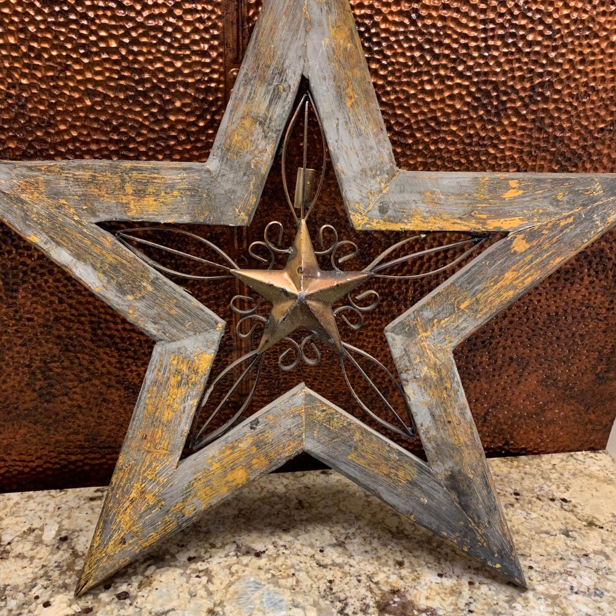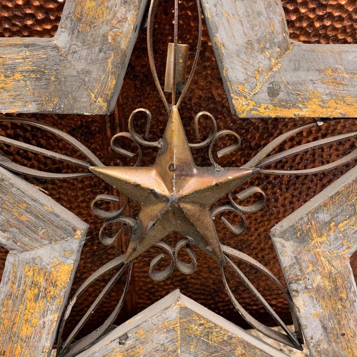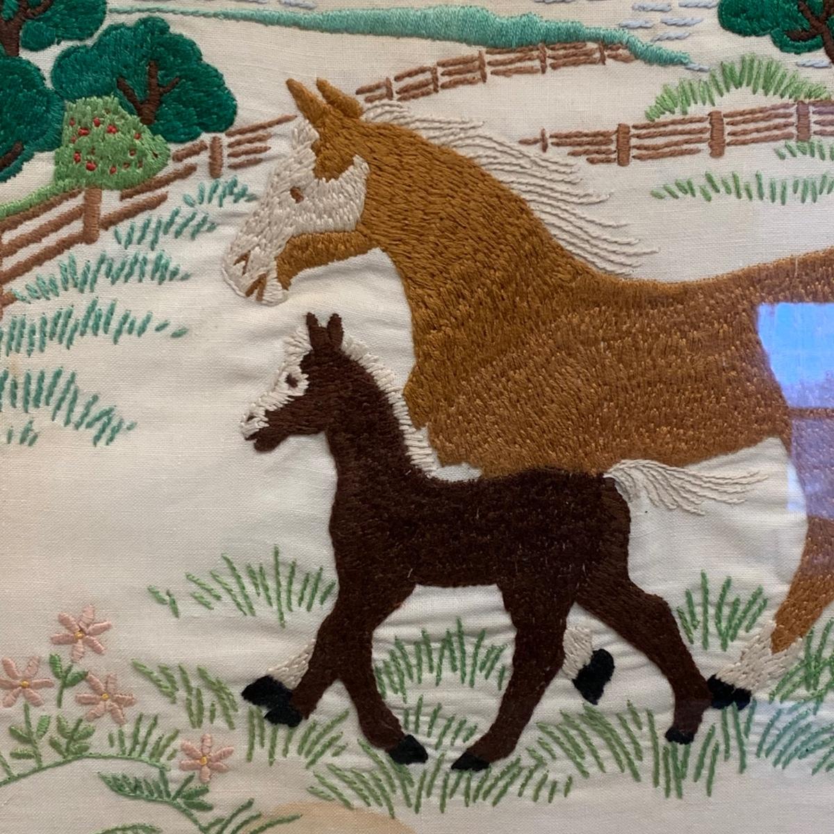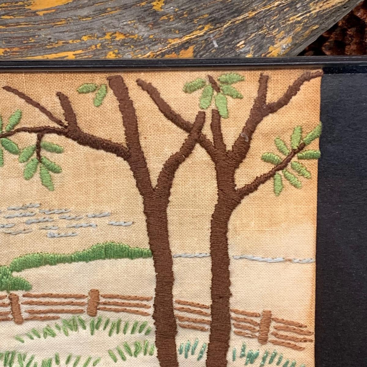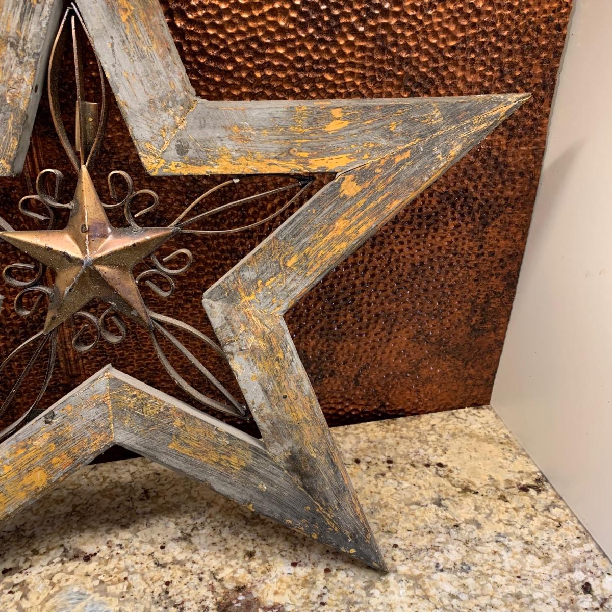LOT 137R: Vintage Framed Needlepoint, Rustic Home Decor Wood & Metal Star & Metal Horse Cutout Key Holder