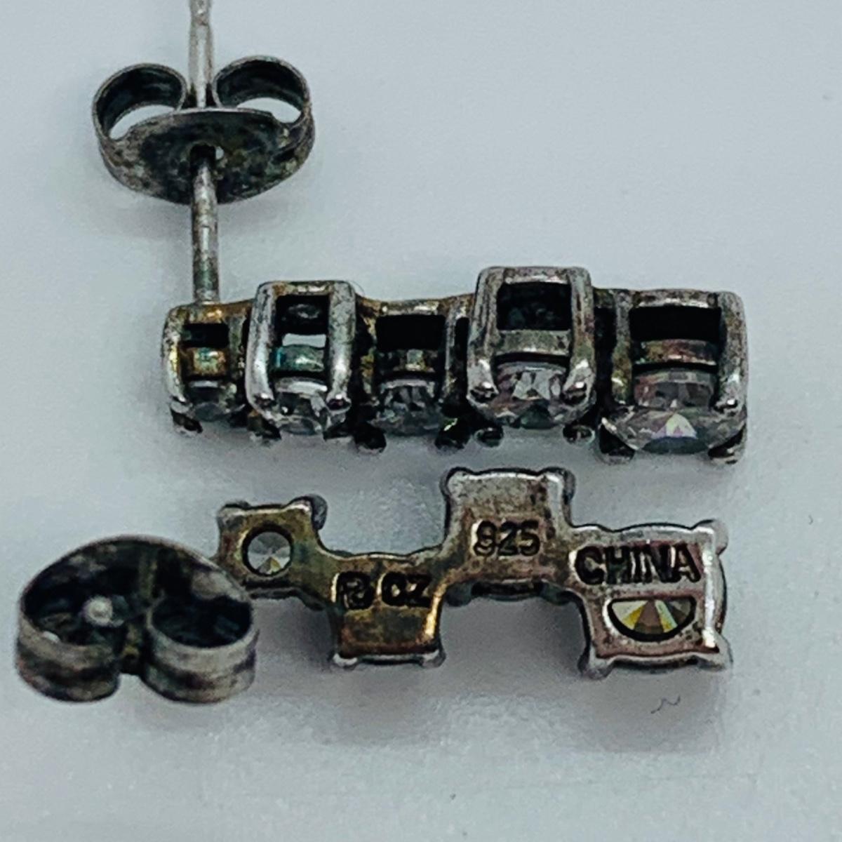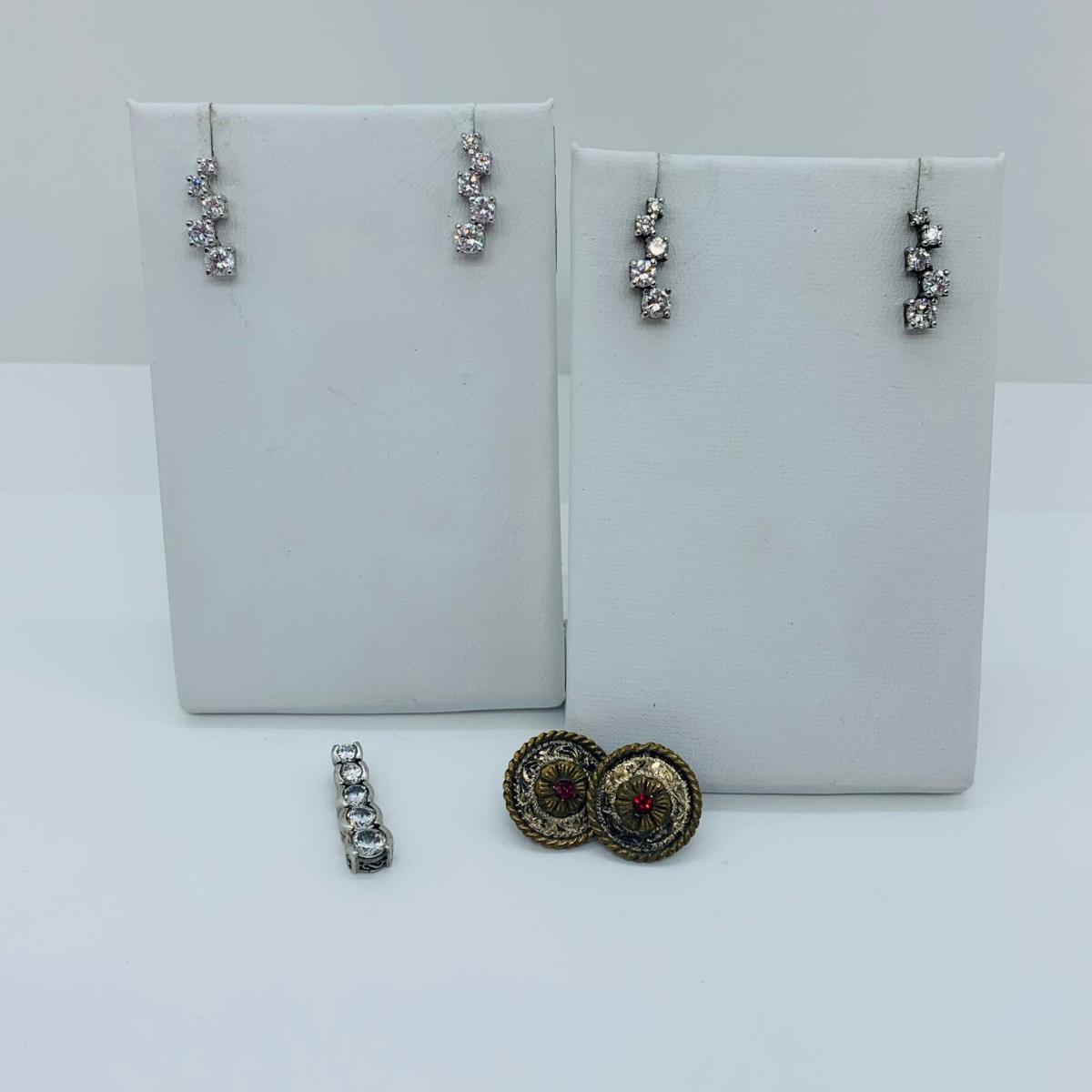 LOT 305: Sterling Silver Dangle Earring w/Rhinestones, Sterling Silver Rhinestone Pendant & Sterling Silver Button Earring w/Simulated Gemstones