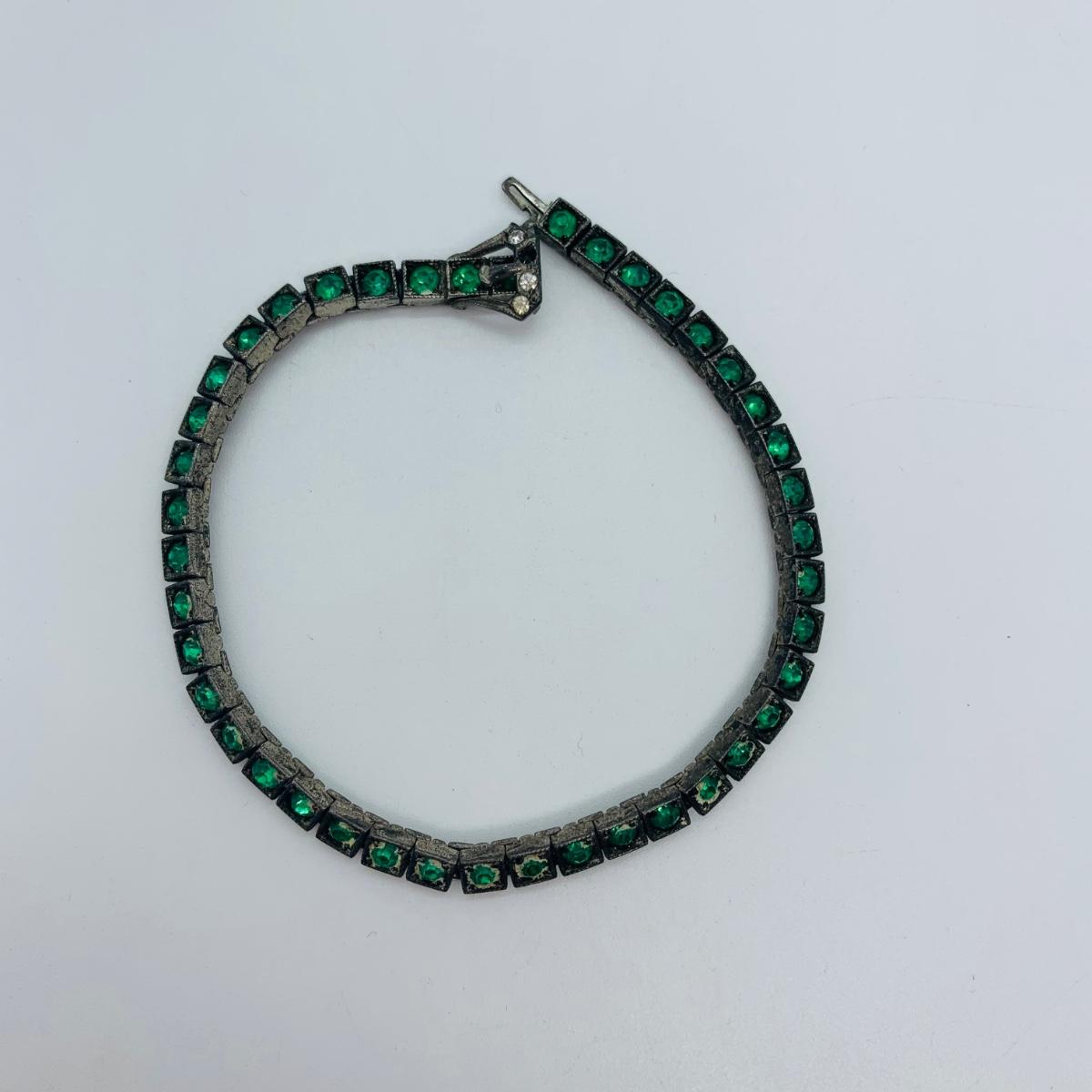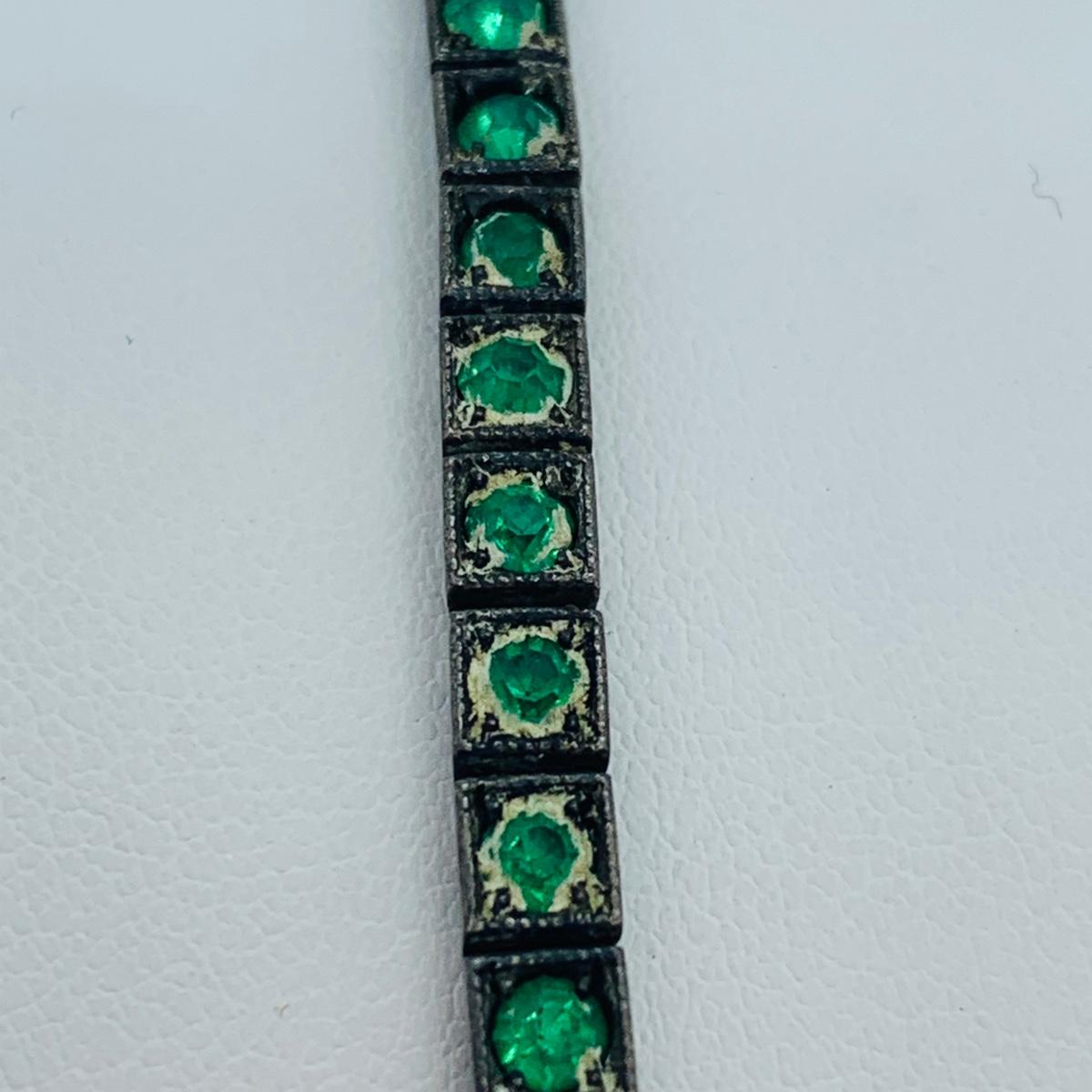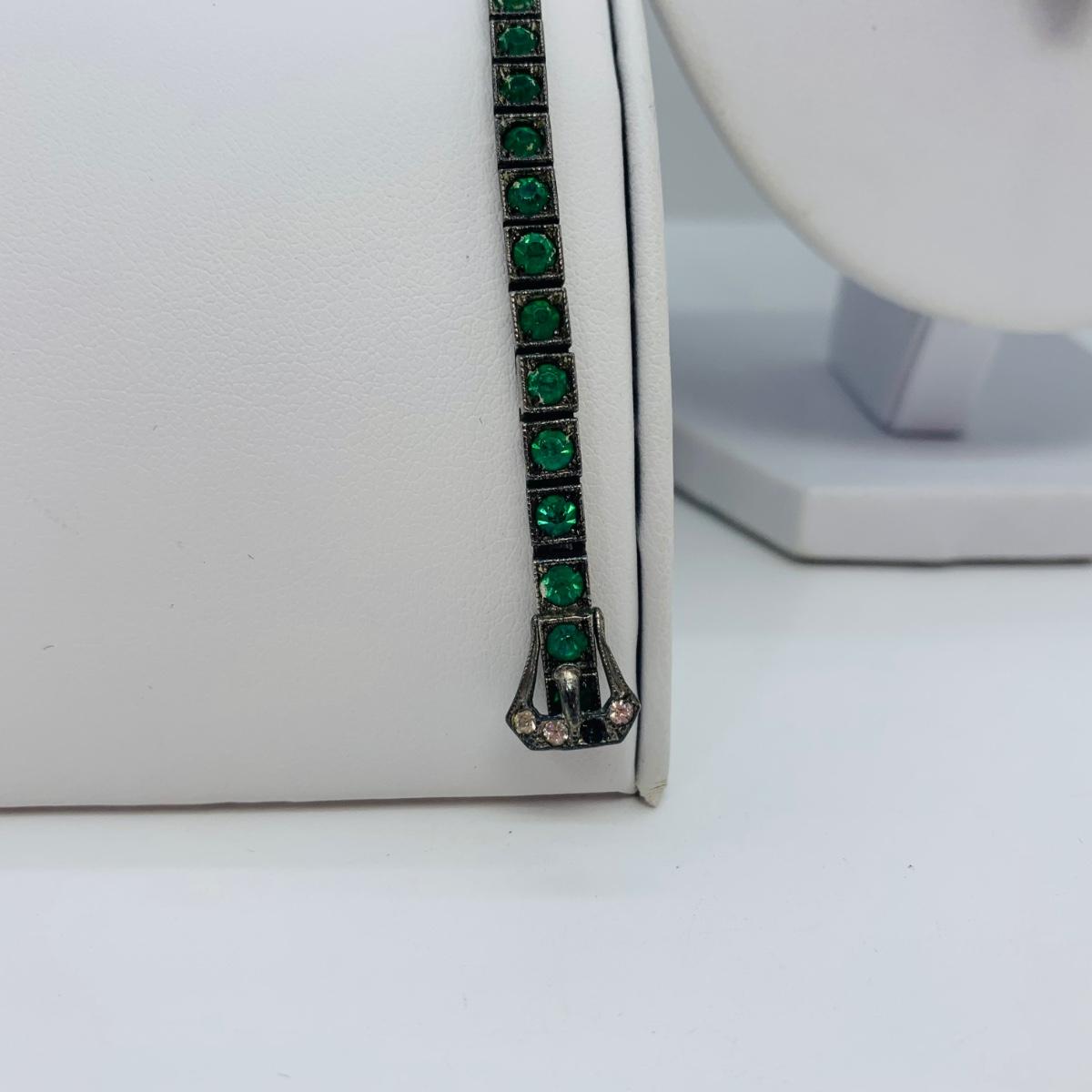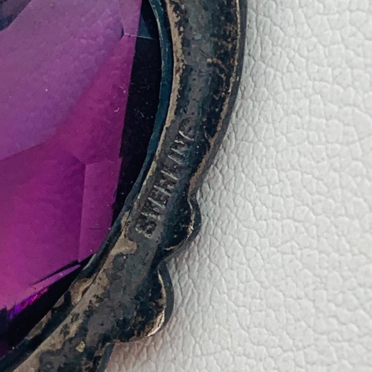 LOT 304: Sterling Silver Collection: 2" Amethyst Pendant w/24" Chain & Simulated 7"Emerald Braclet