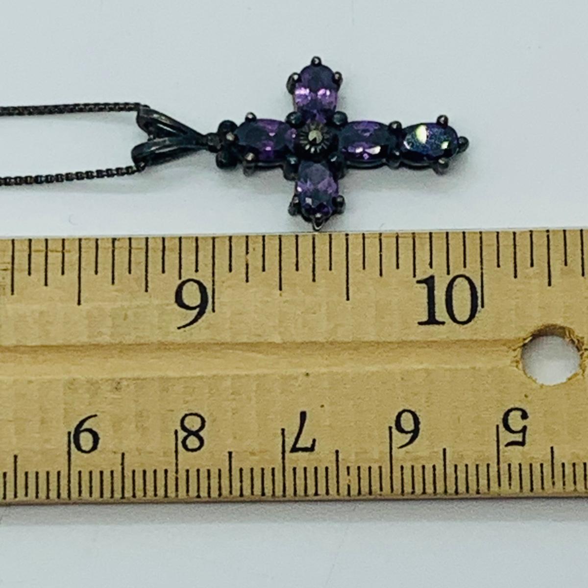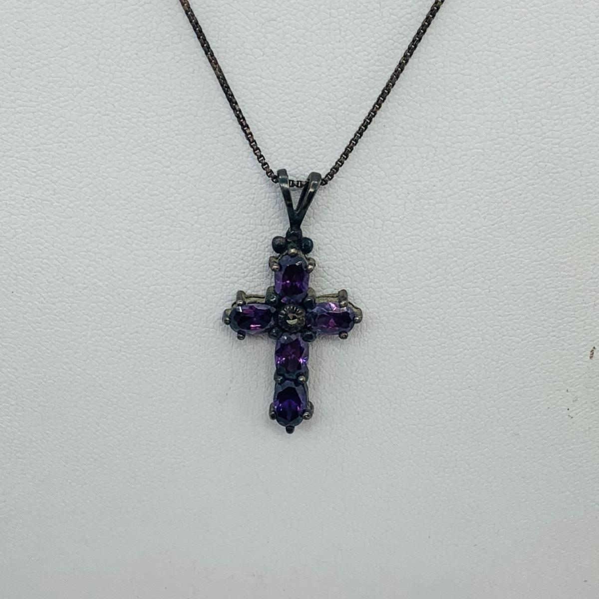 LOT 303:  Sterling Silver & Simulated Amethyst  Pendants w/Chains & Pierced Earrings