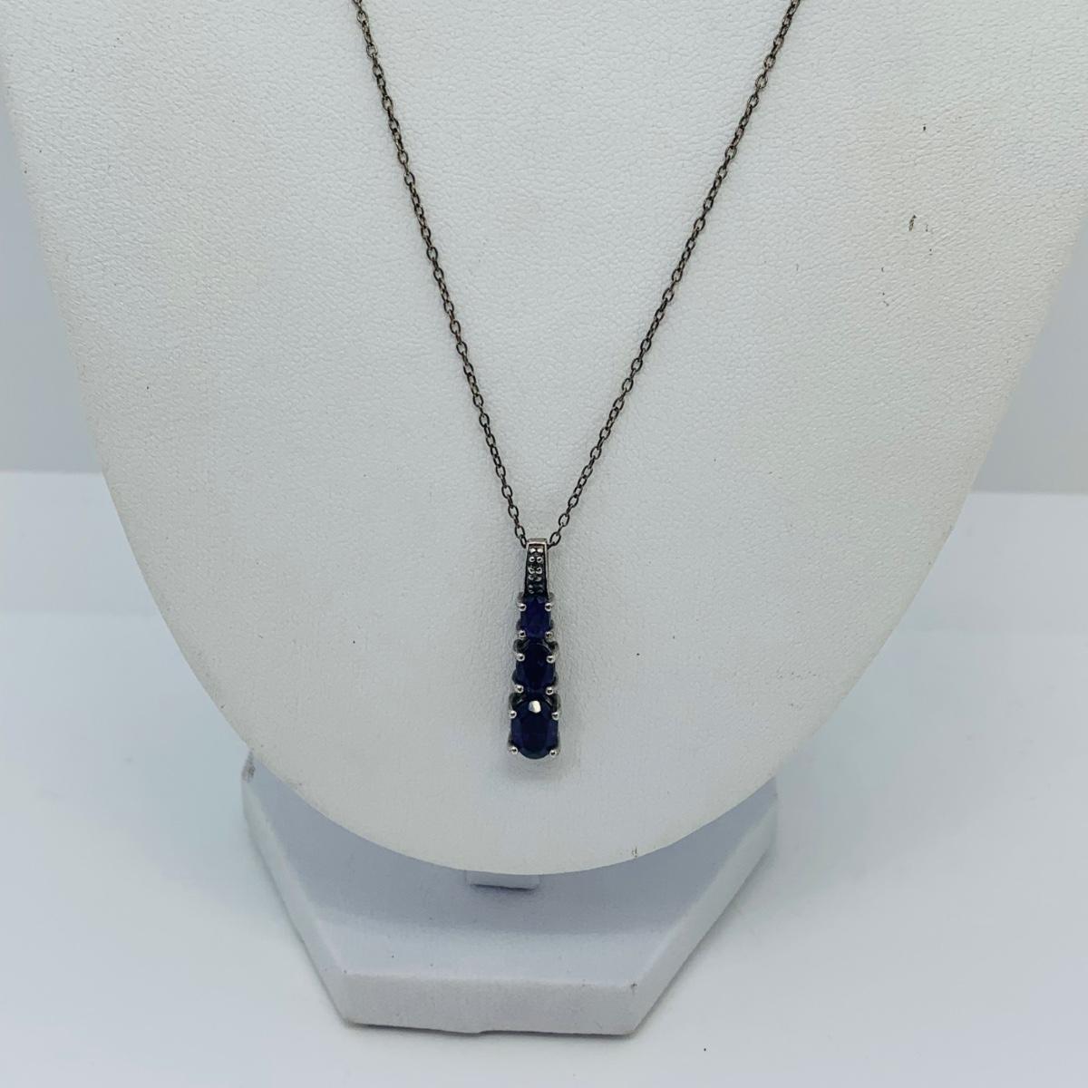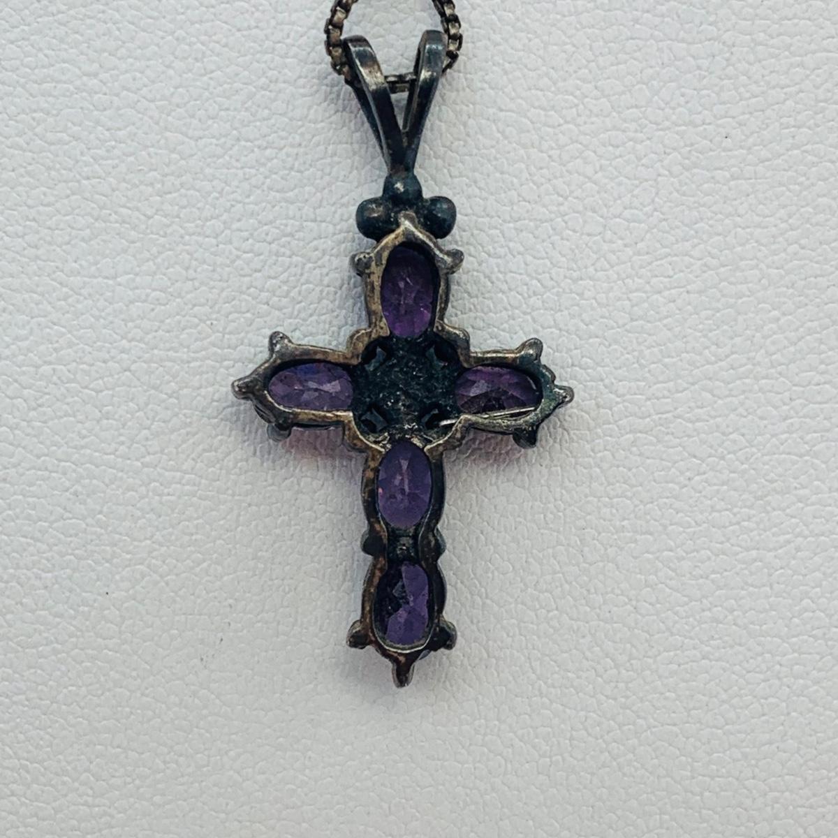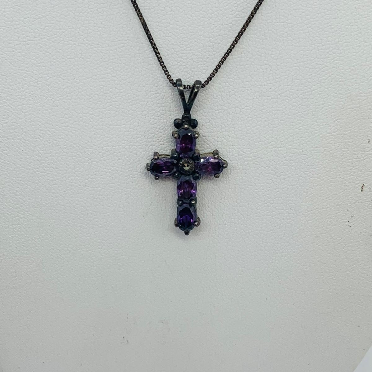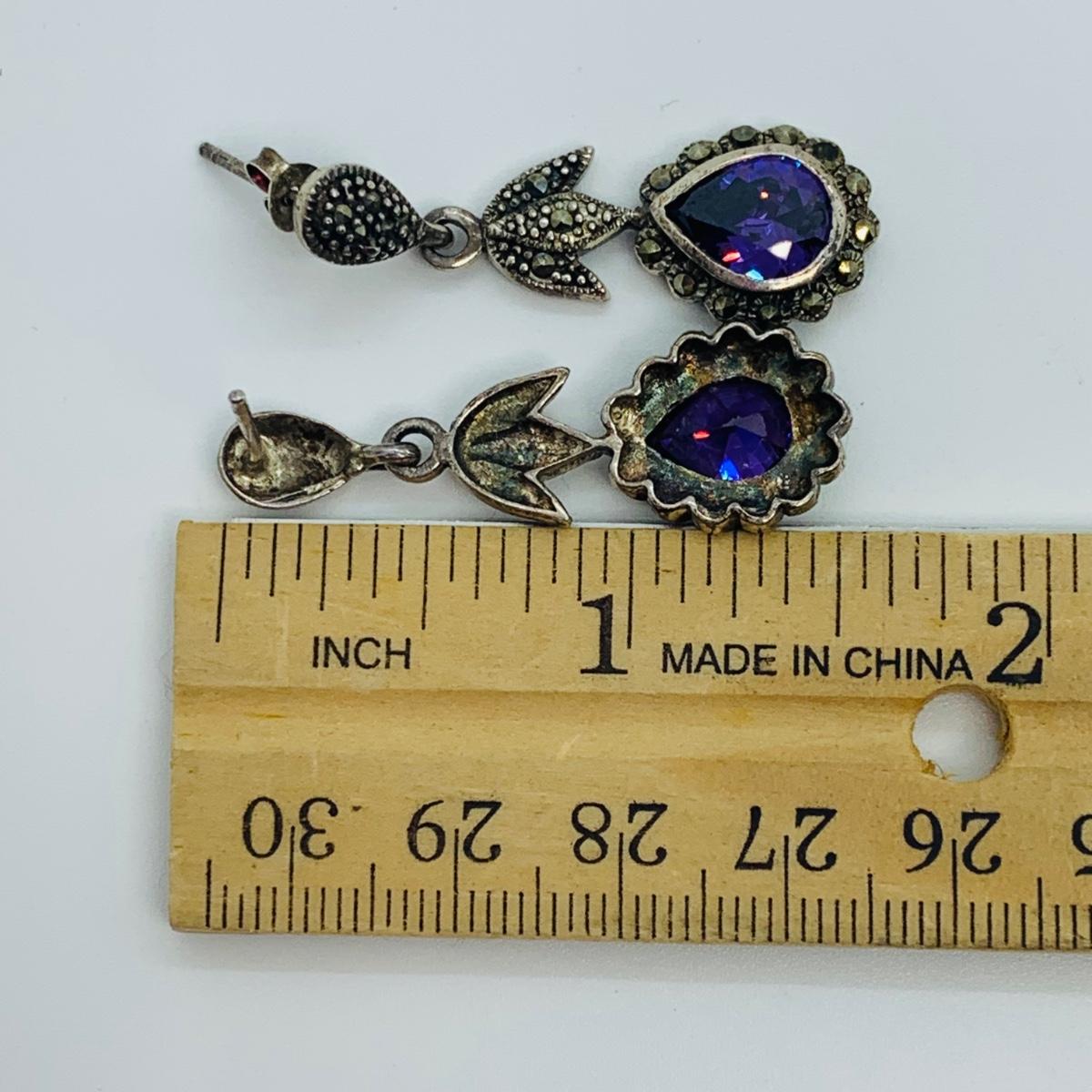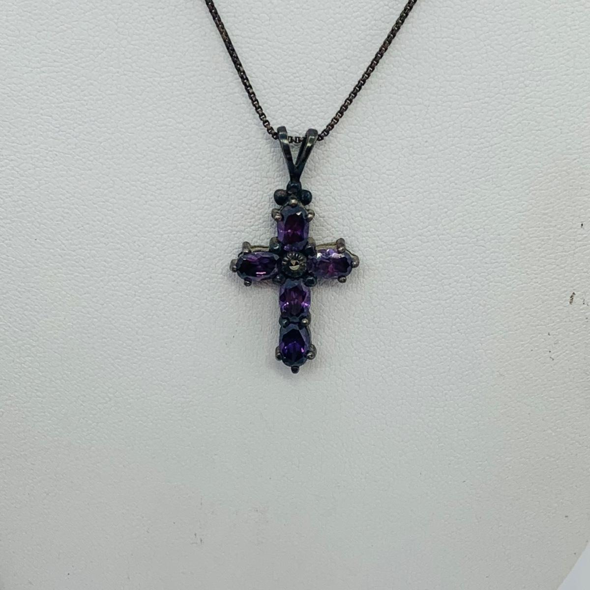 LOT 303: Sterling Silver & Simulated Amethyst Pendants w/Chains & Pierced Earrings