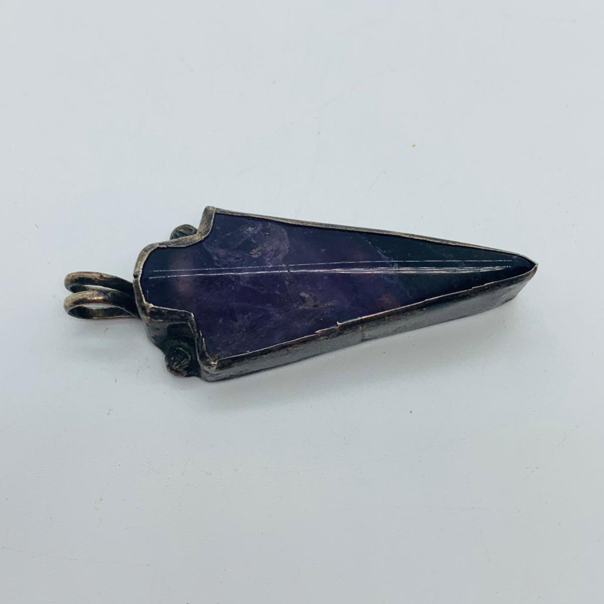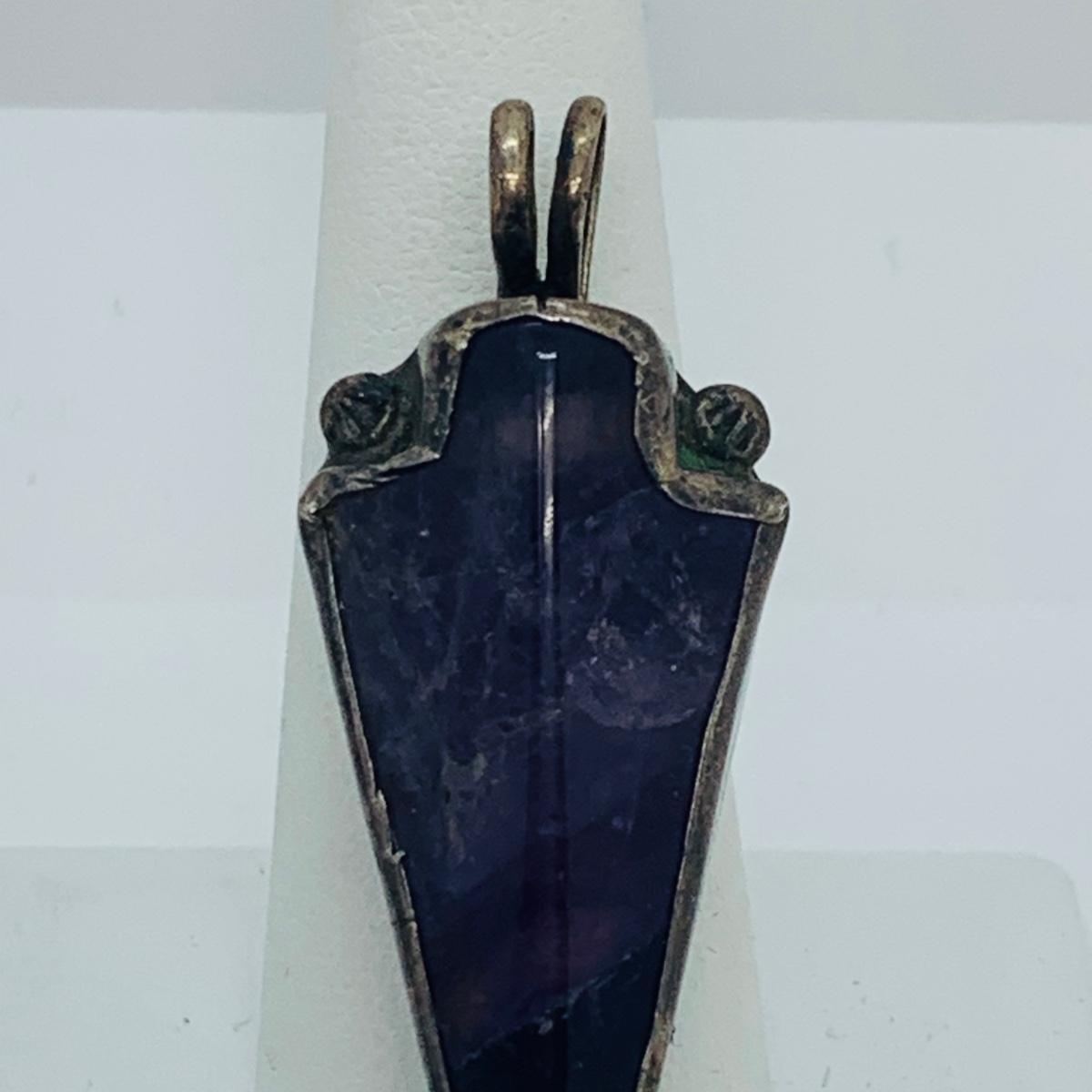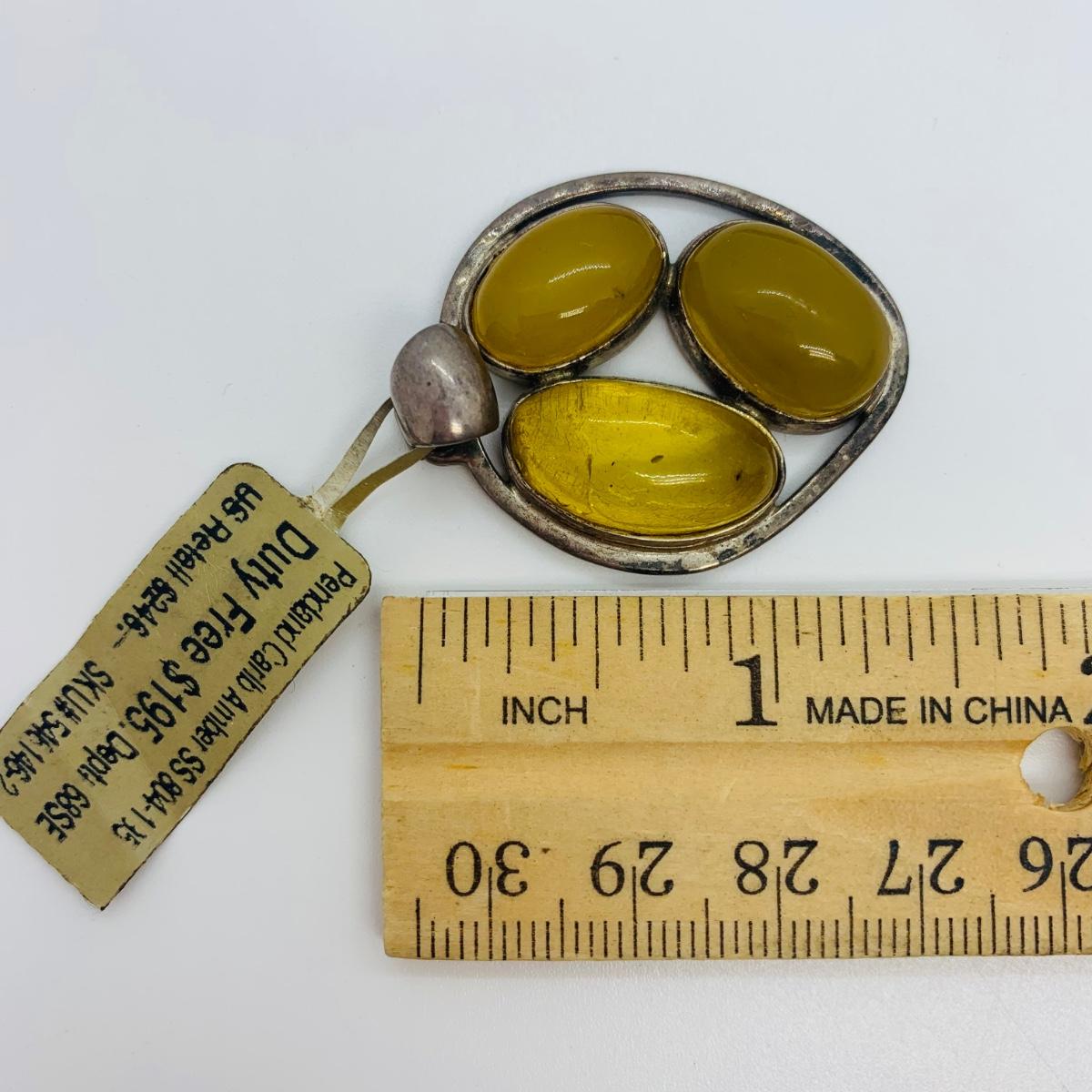 LOT 299: Sterling Silver Choker Style Necklace, Amethyst Stone Pendant & Yellow Stone Pendant