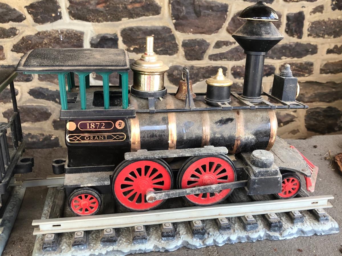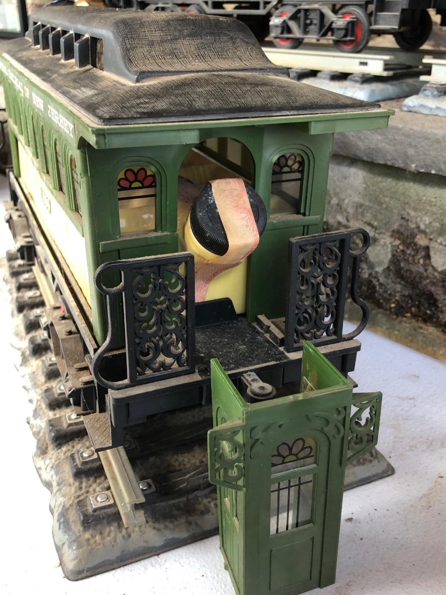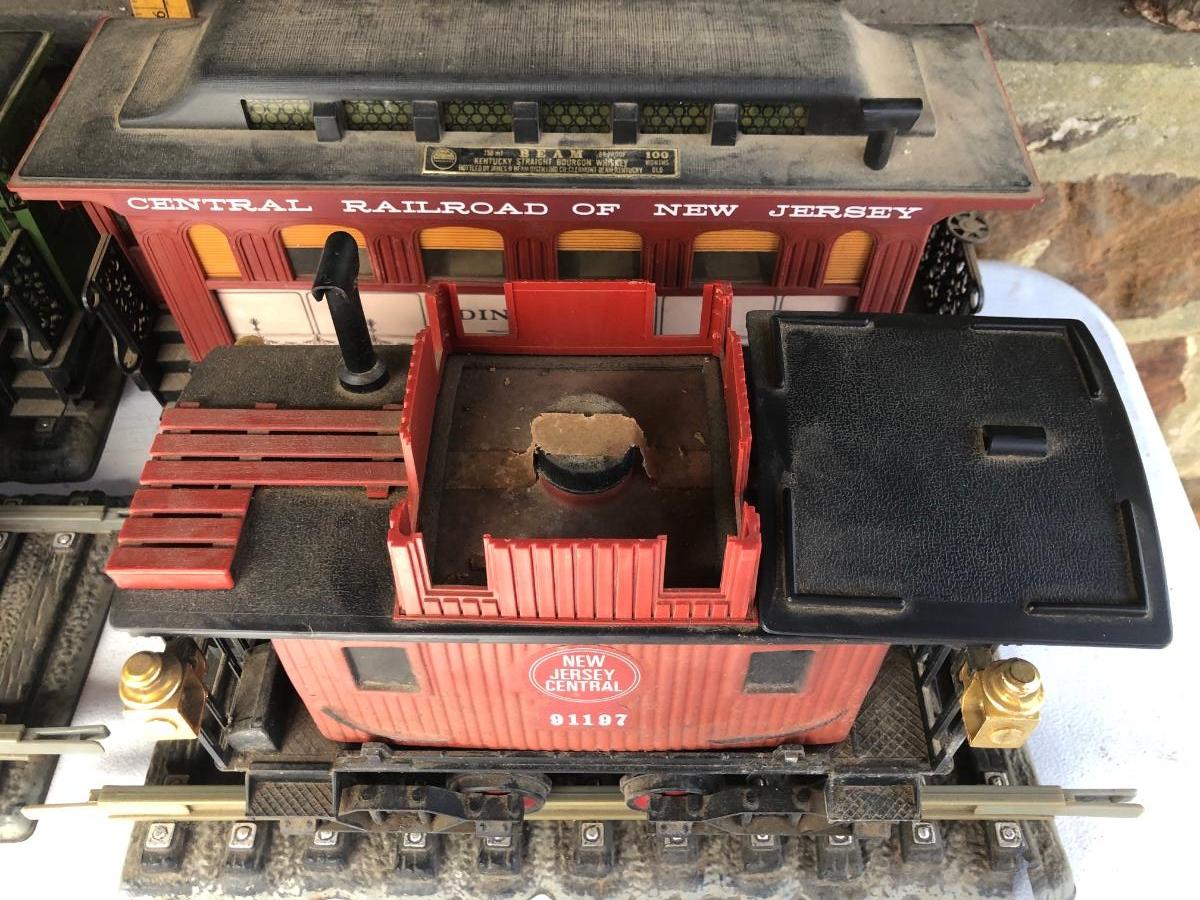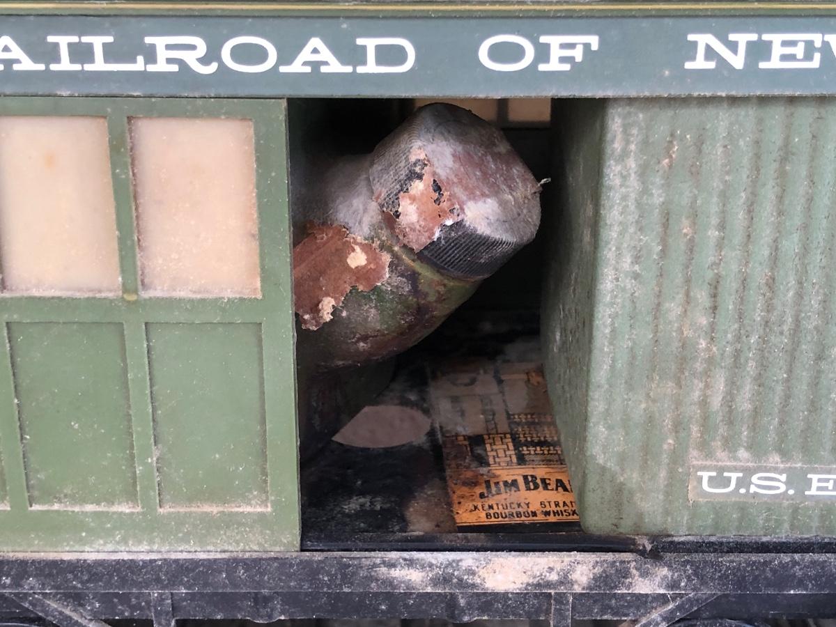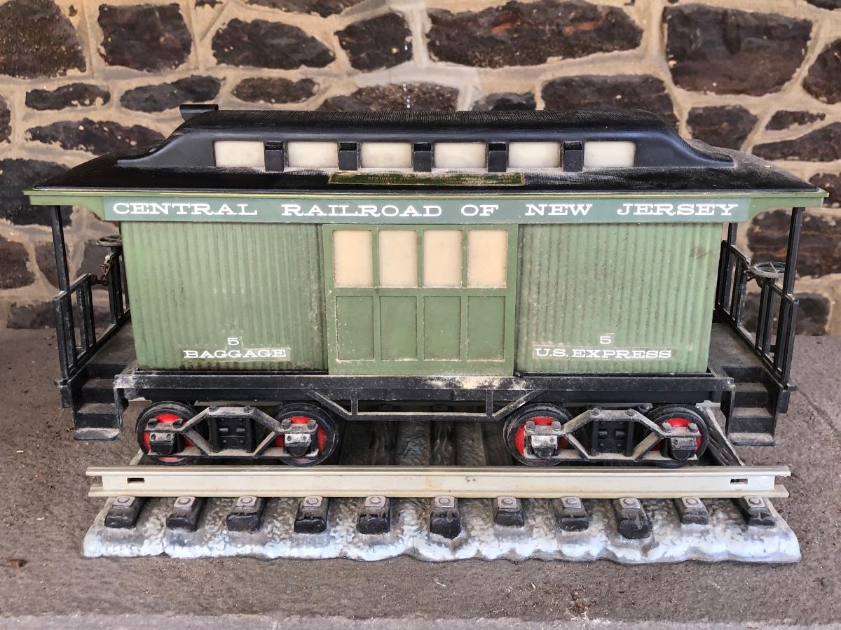 LOT 233M: Central Railroad of New Jersey Decanter Set w/ Track, Ezra Brooks Trolley Decanter & Commemorative Edition McCormick Train Decanter