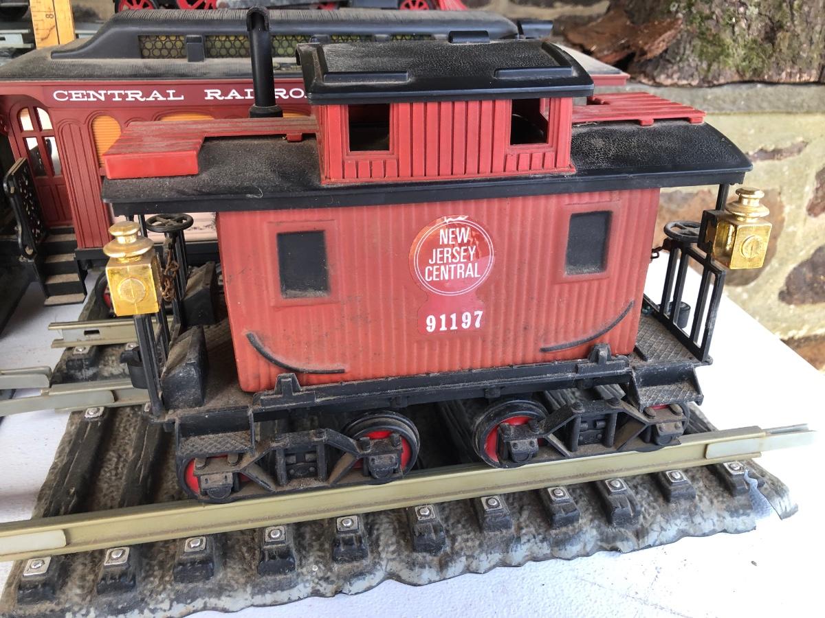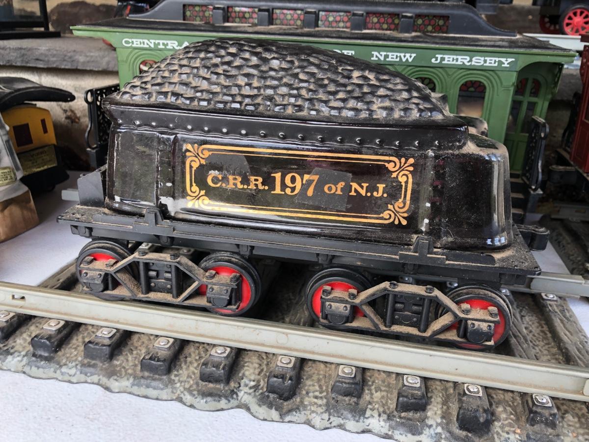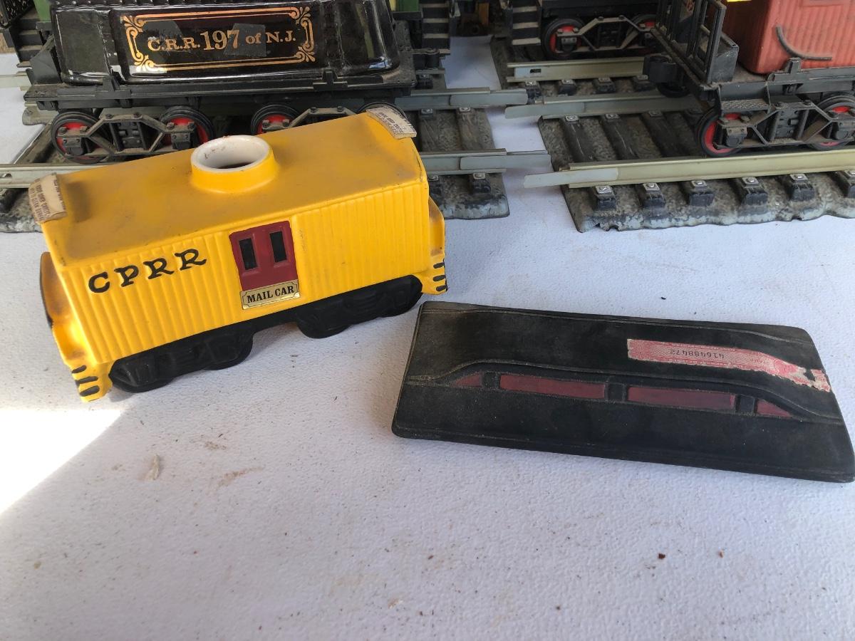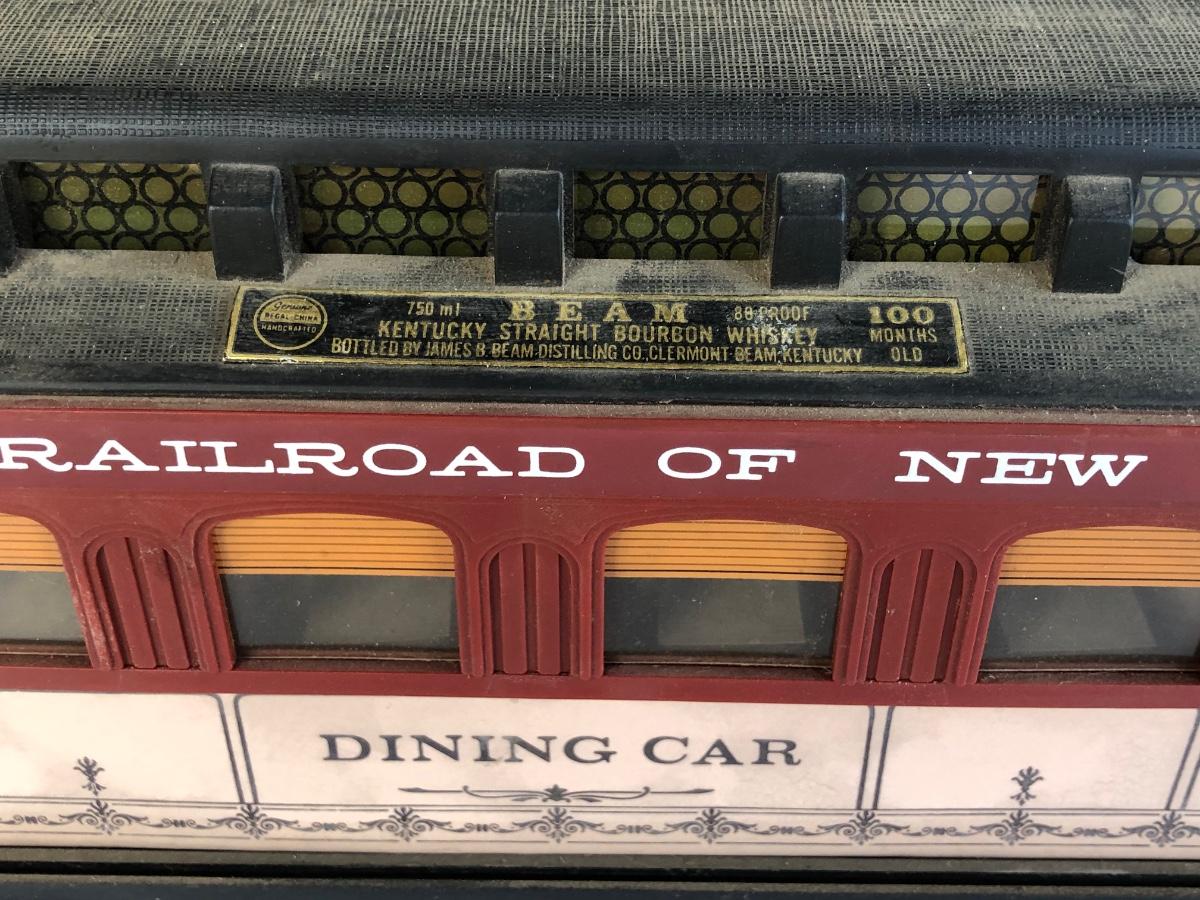 Includes six pieces of the Jim Beam Central Railroad of NJ decanter set with track and two other ceramic decanters. CRR of NJ set includes hidden bottle tops in some of the pieces and six tracks for the cars to sit on.