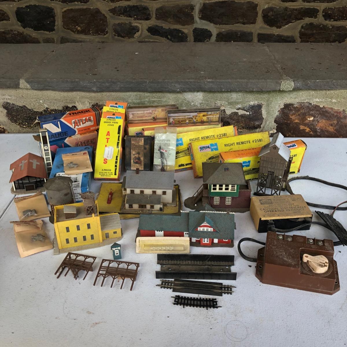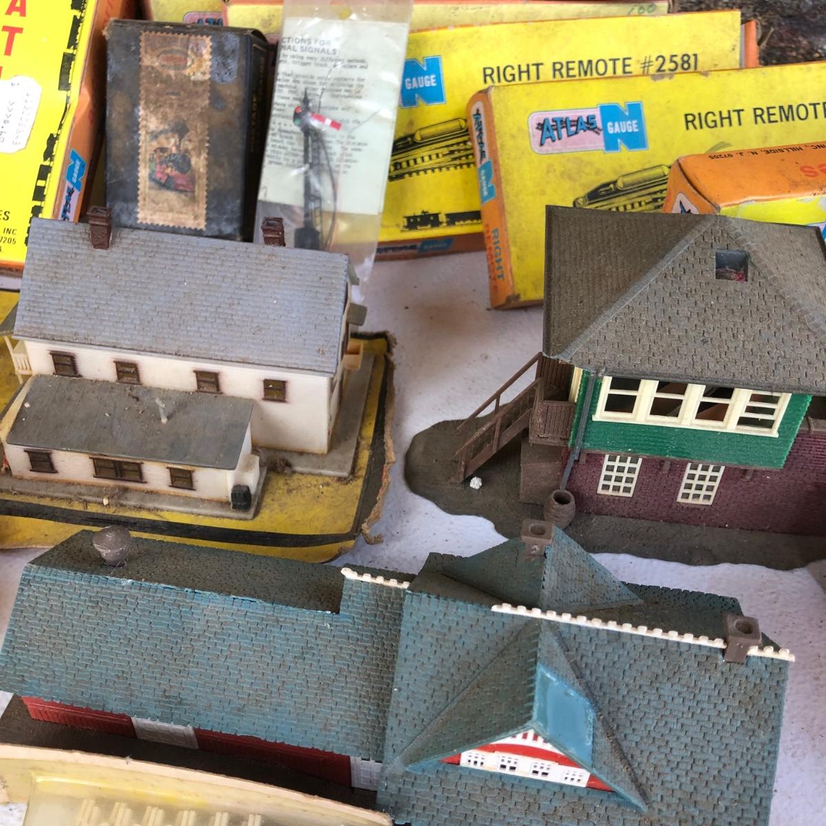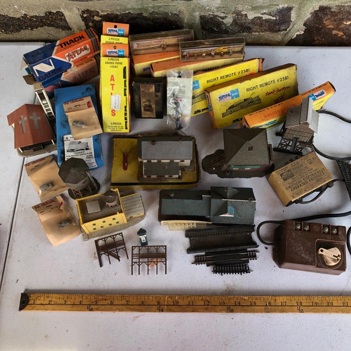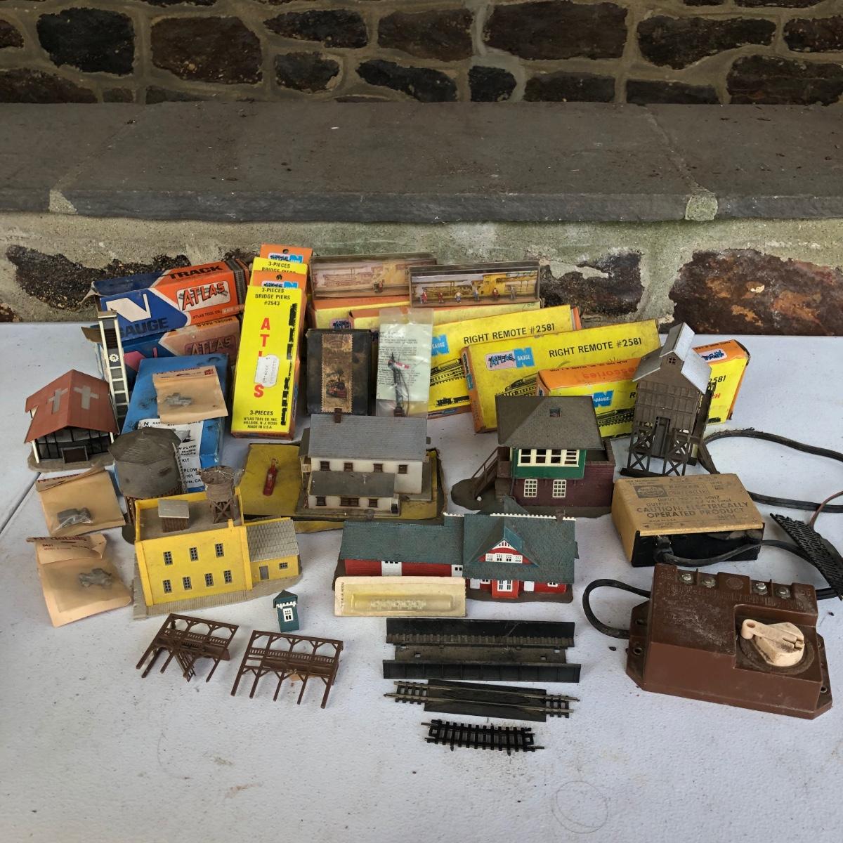 LOT 234M: N Scale Railroad Model Buildings, Boxed Atlas N Gauge Items, HO Scale Hobby Transformer Model 6605, Model Power Toy Transformer & More
