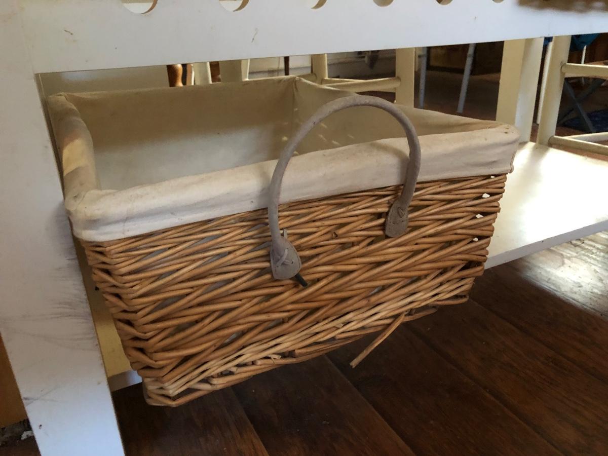 LOT 246M: Rolling Kitchen Island Table w/ Chairs & Baskets