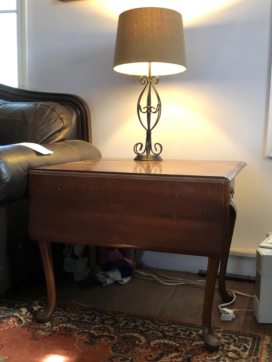 LOT 248M: Vintage Queen Anne Style Folding Table w/ Lamp