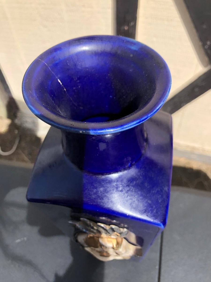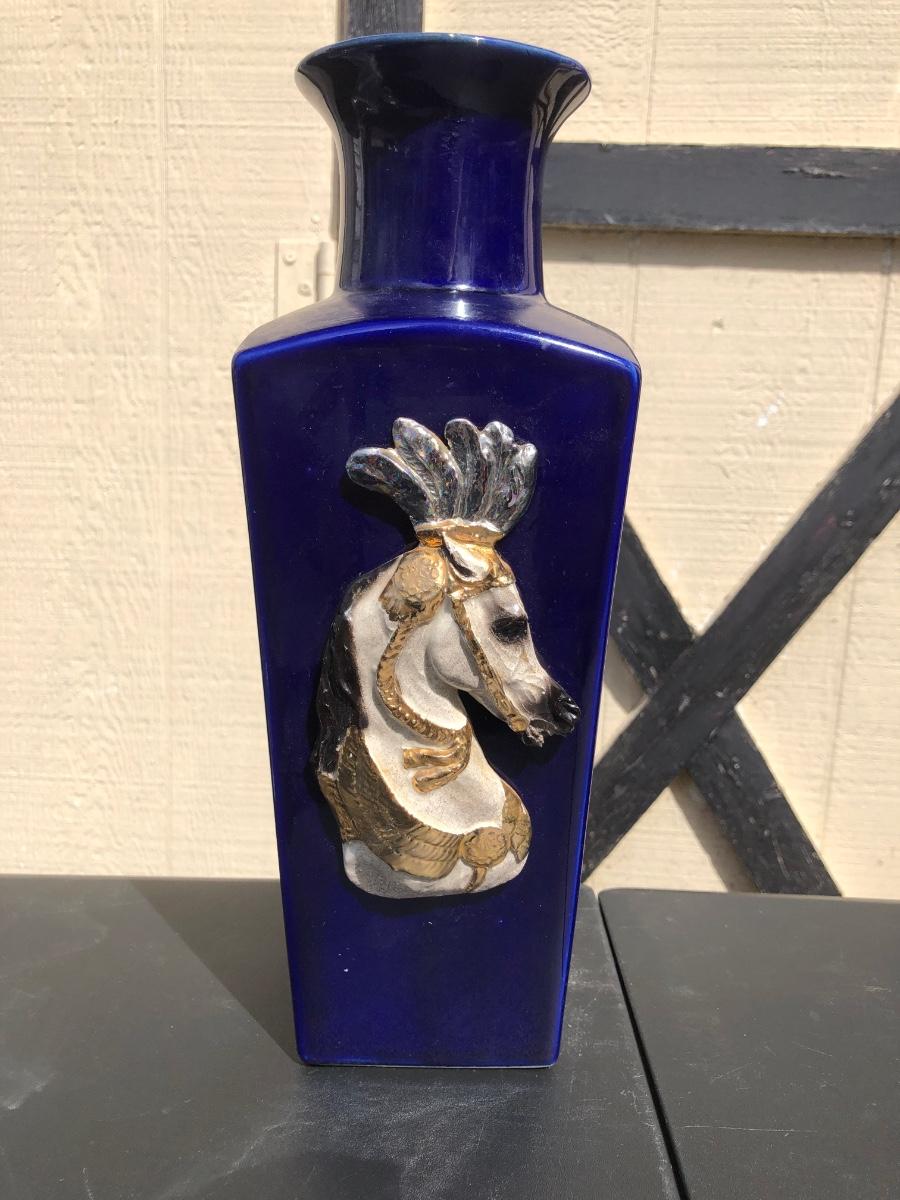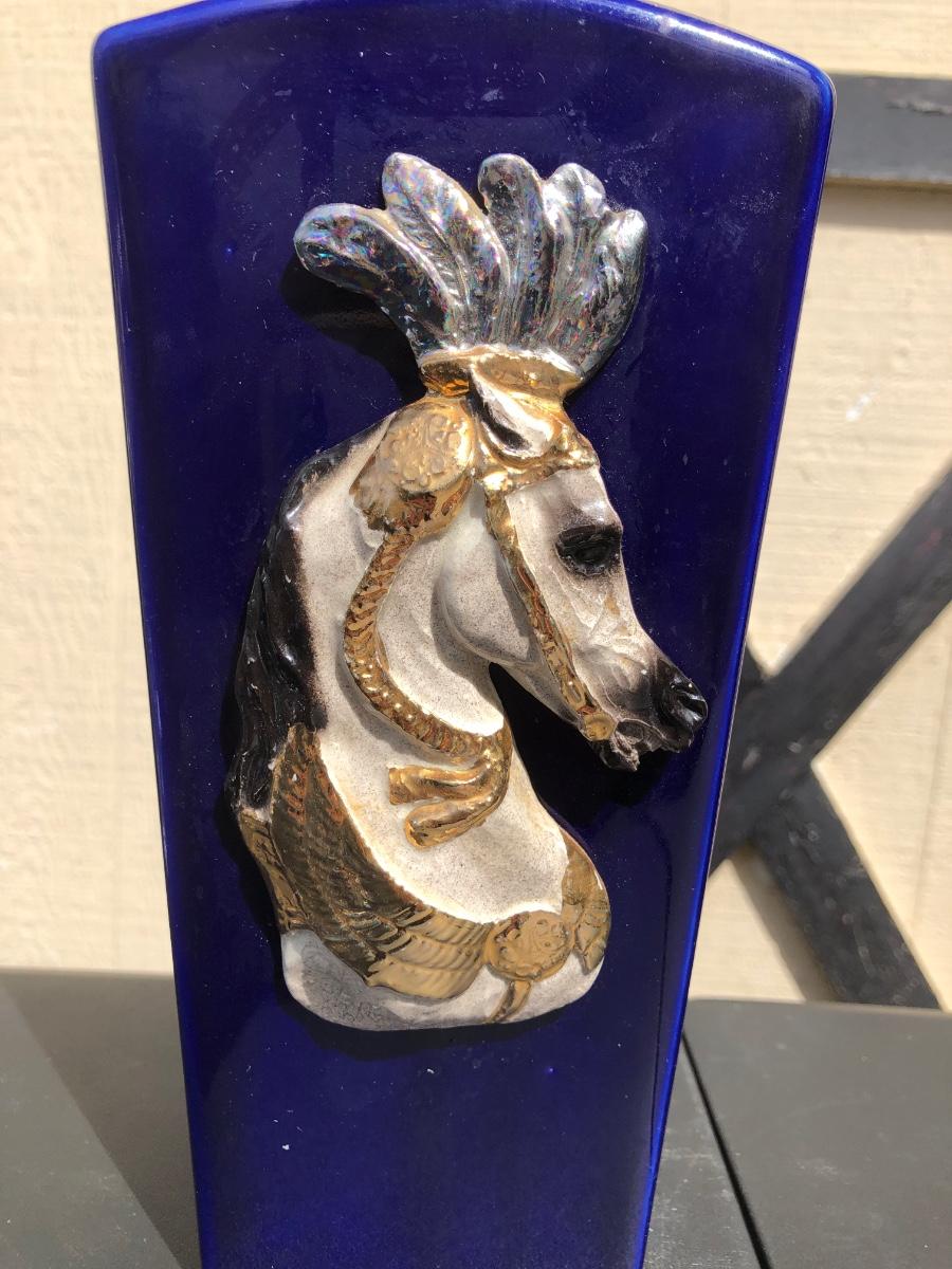 LOT 259M: Blue Carnival Horse Vase, Orrefors Crystal Vase & Clock
