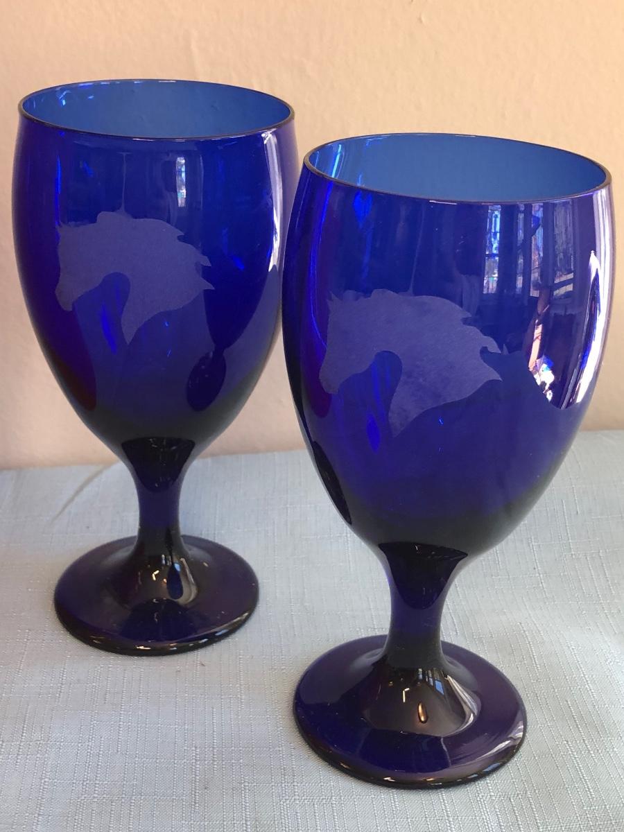 LOT 264M: The Brandywiners, Ltd. Glasses, Etched Horse Wine Glasses, Stainless Steel Silverware, Vegetable Dish & More