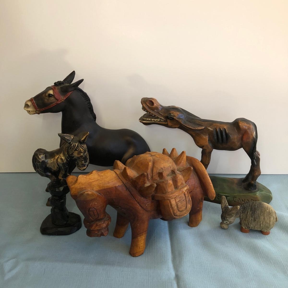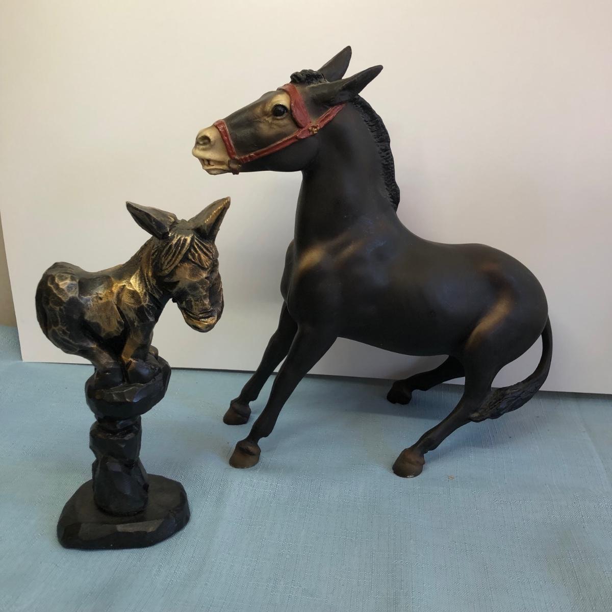 LOT 268M: Desert Canary Donkey Statue, Wooden Donkey Sculptures, & More Donkeys