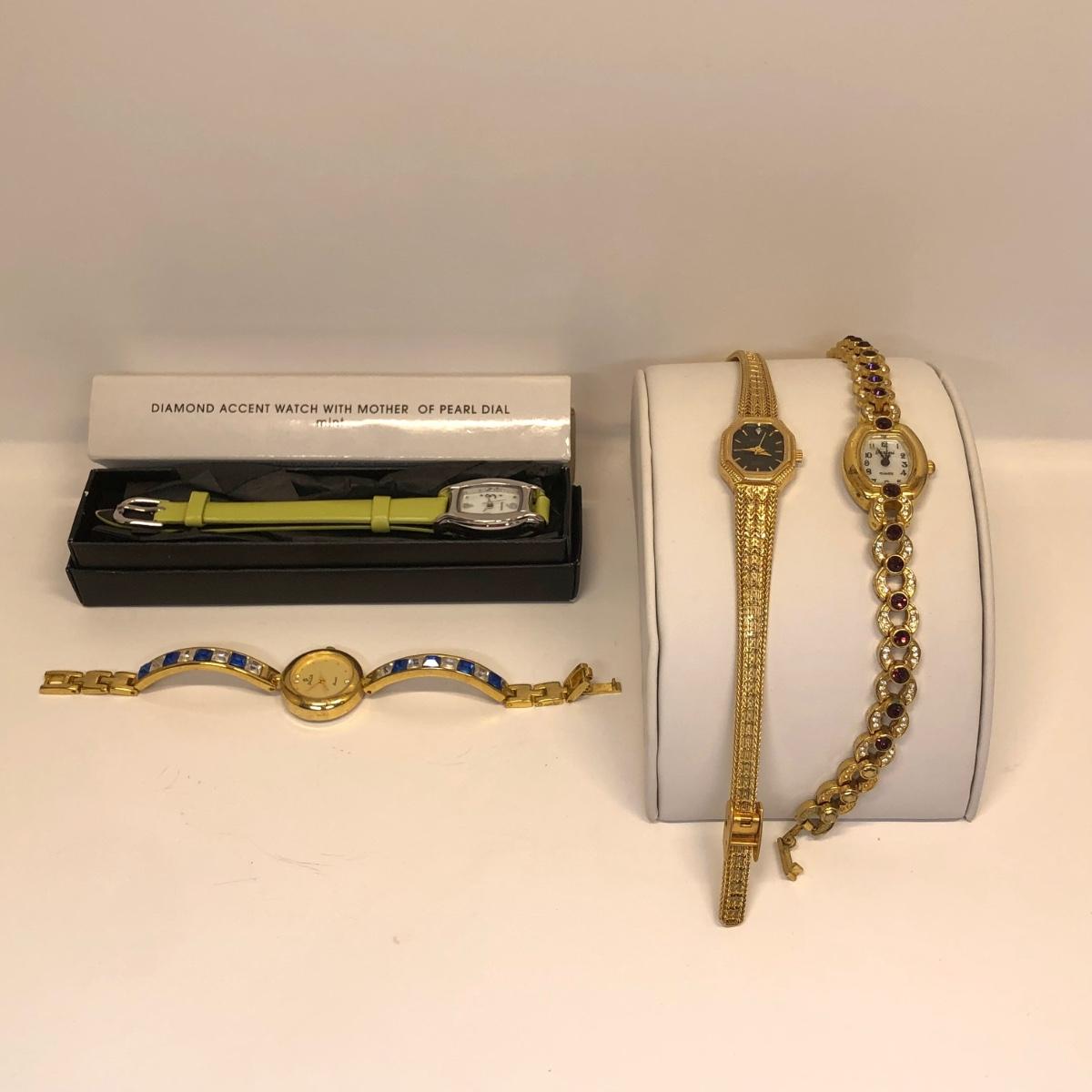 LOT 308M: Avon Diamond Accent Watch w/ Mother of Pear Dial, Jalga Quartz Watch, Perini Quartz Watch & Elgin Diamond Quartz Watch