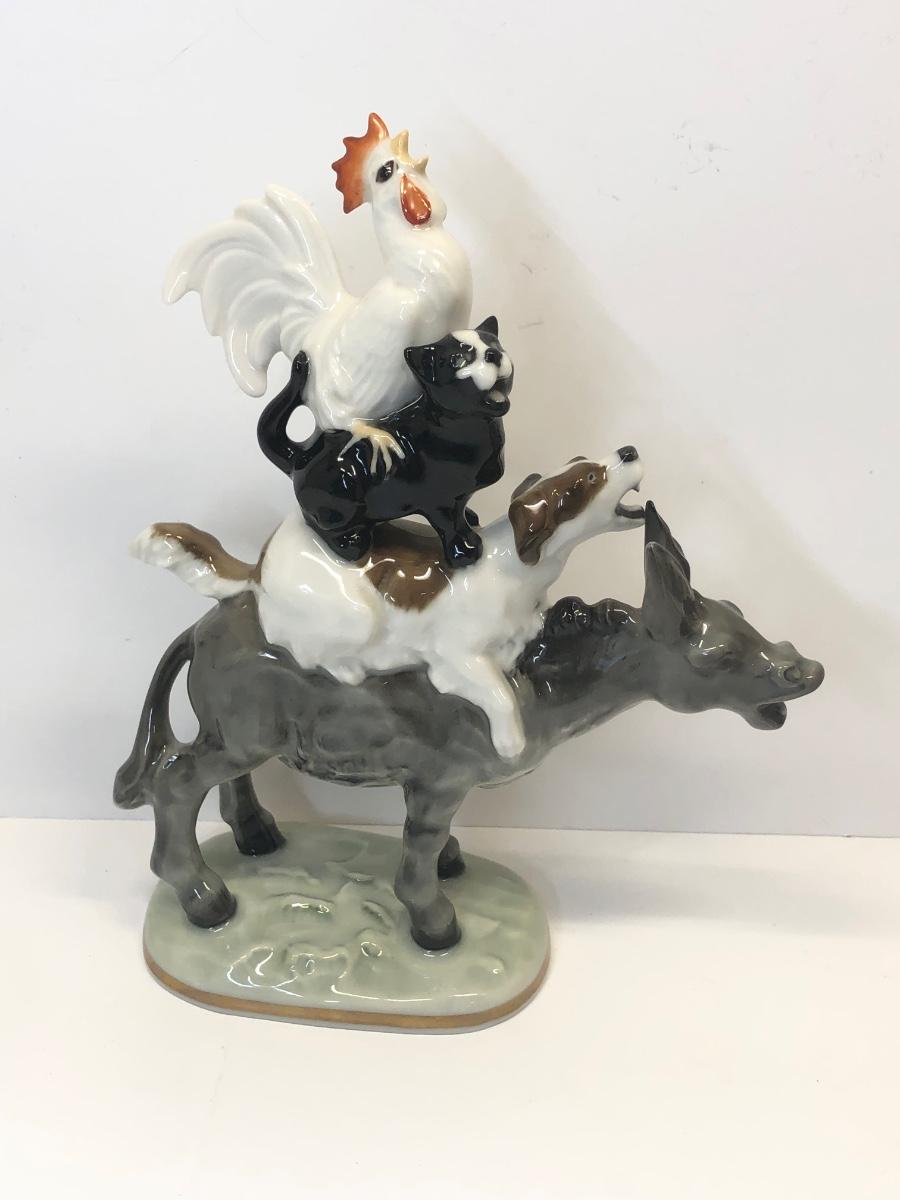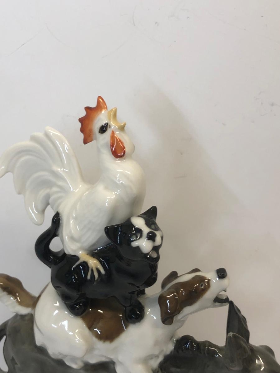 LOT 318M: Hutschenreuther Farm Animal Stack Sculpture, Rustic Kitchen Decor, Hurricane Style Oil Lamp, PIC China Flying Saucer Mortar & Pestle