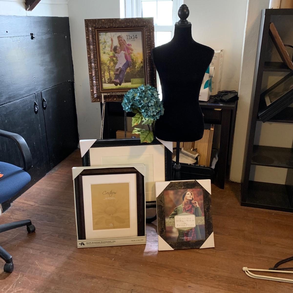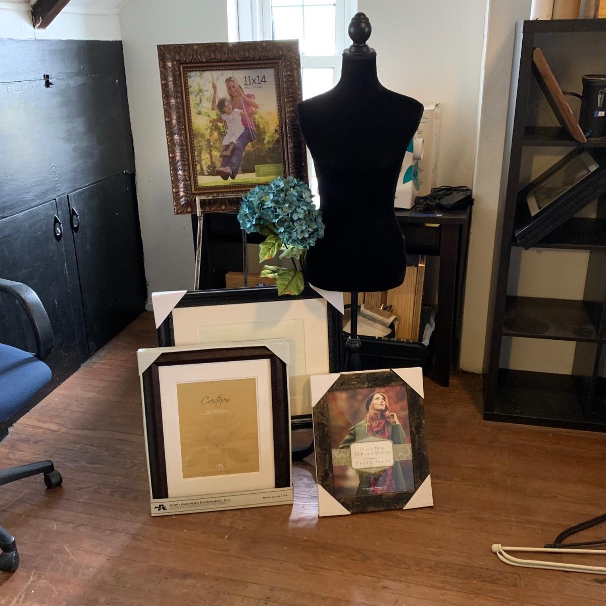 LOT 504R: Home Decor Dress Form (58"), Decorative Easel (53") & Picture Frames