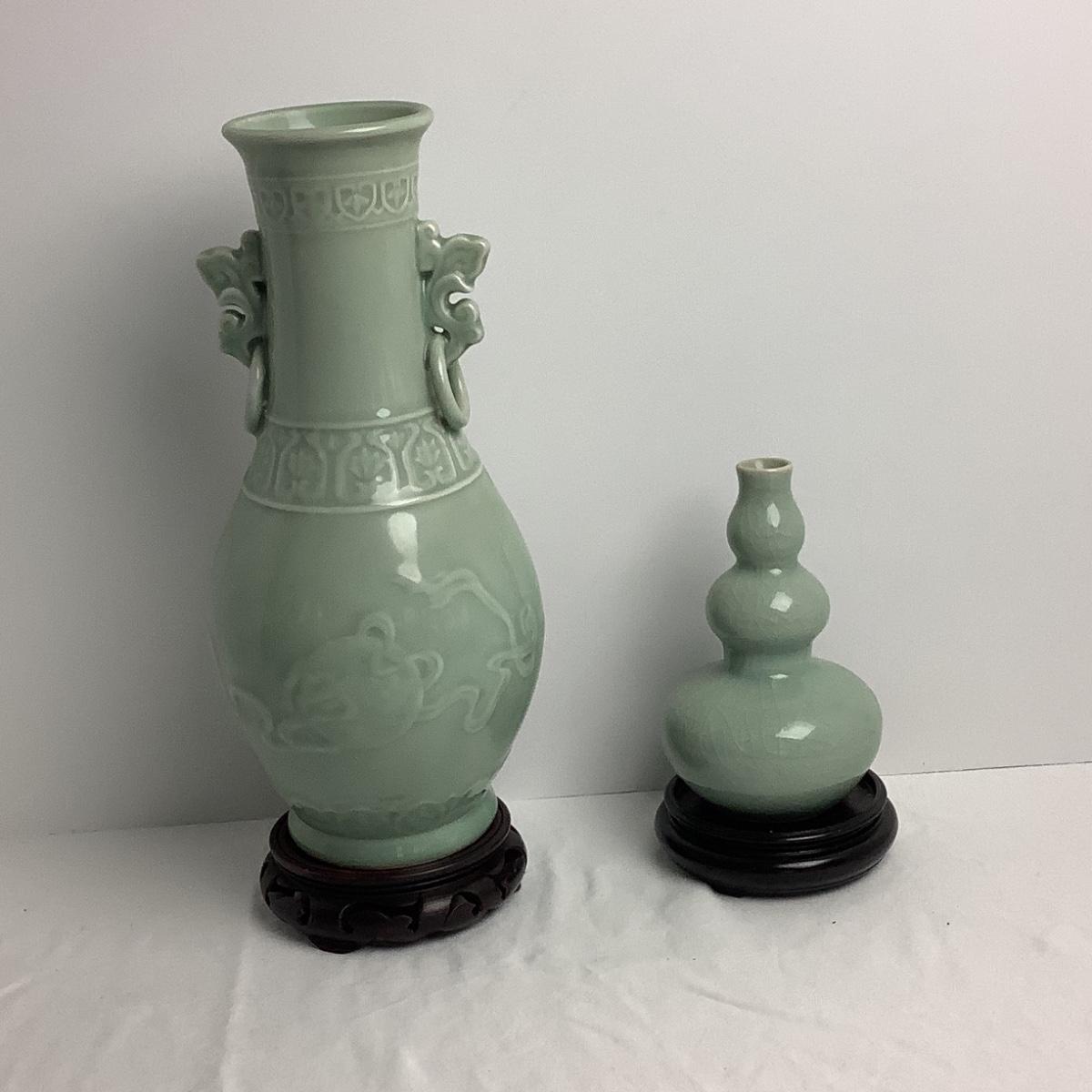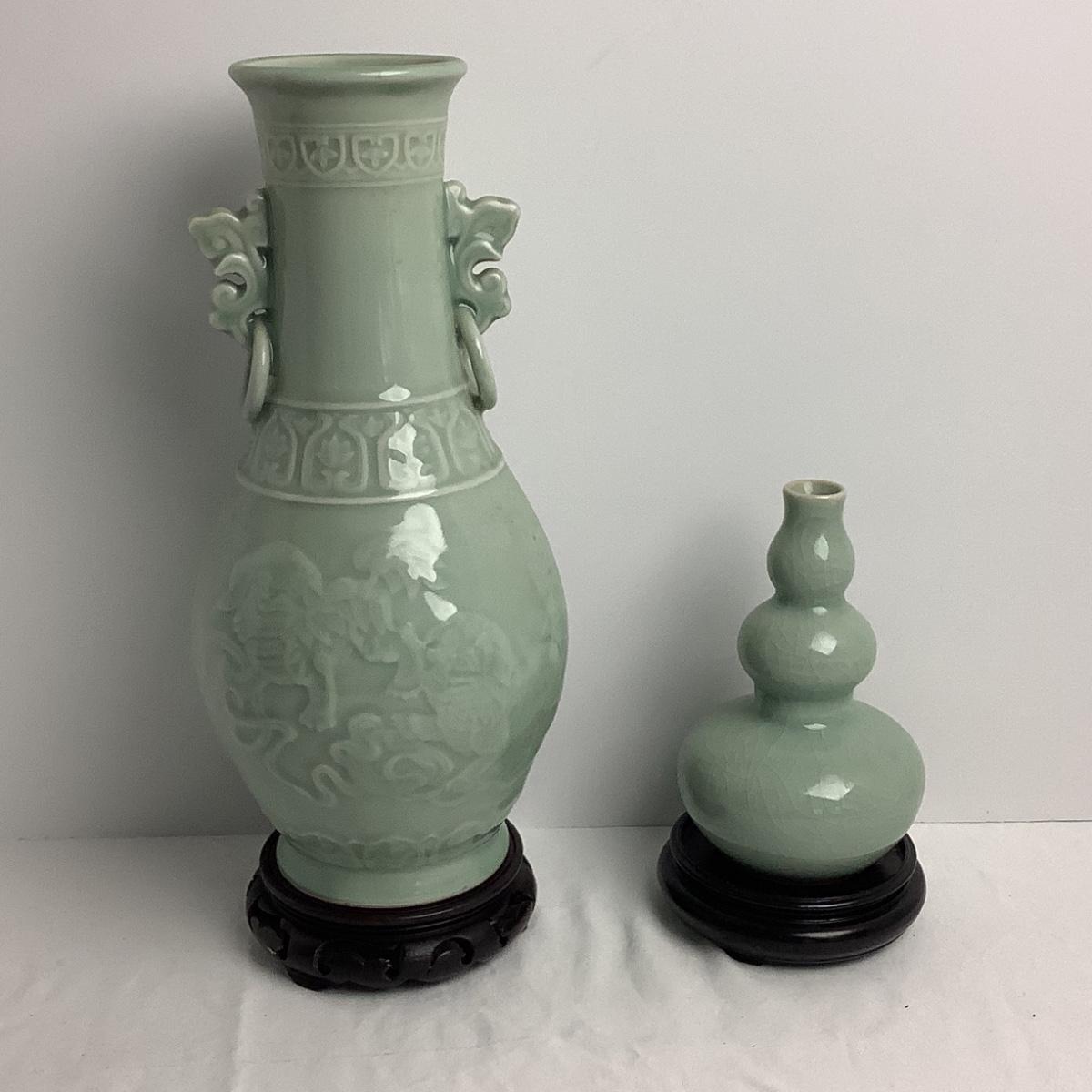 Lot 8425  Two Vintage Chinoiserie Porcelain Celadon Vases