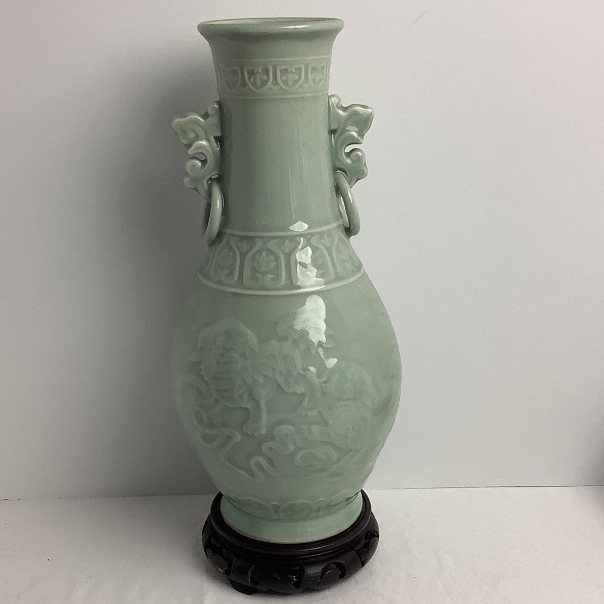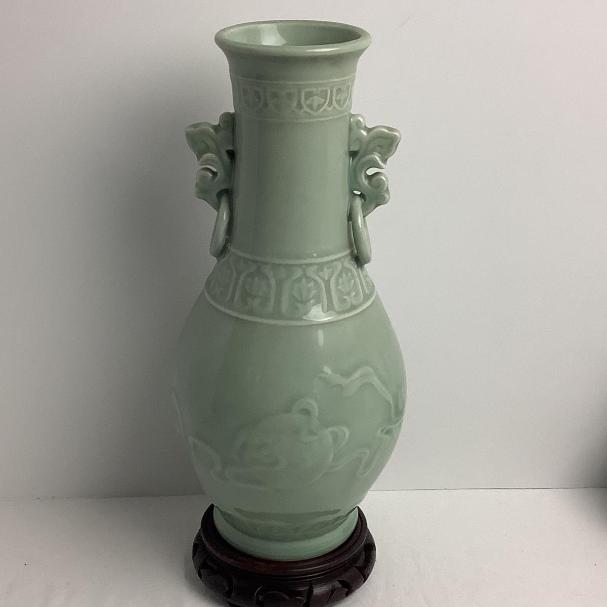 Lot 8425 Two Vintage Chinoiserie Porcelain Celadon Vases