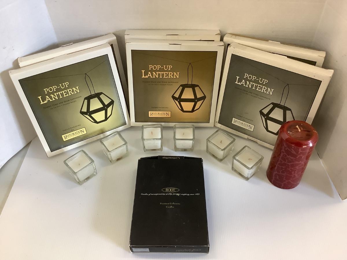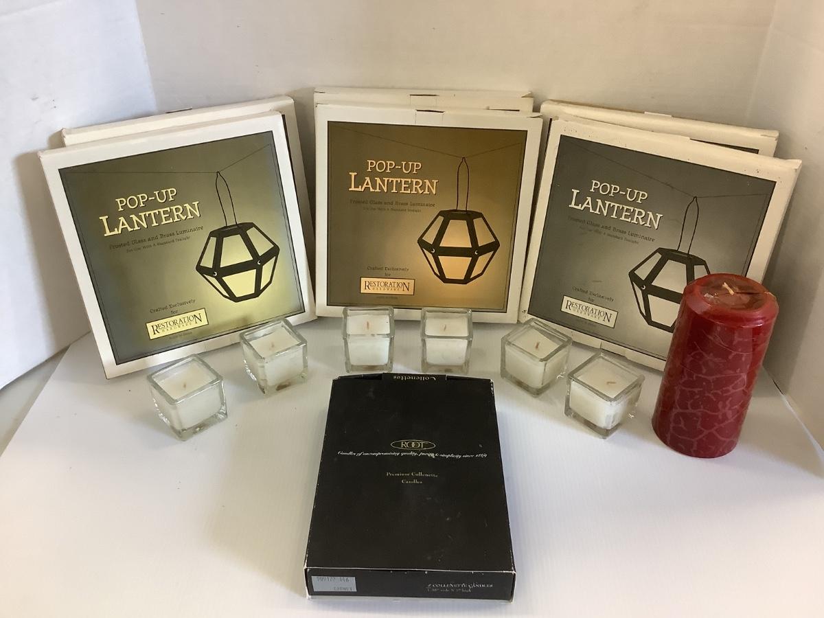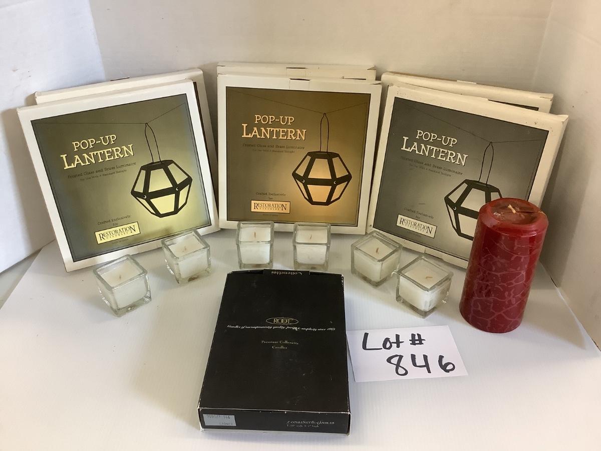 Lot 846. Lot of Pop-up Lanterns/Clear Glass Votives/Root Candles