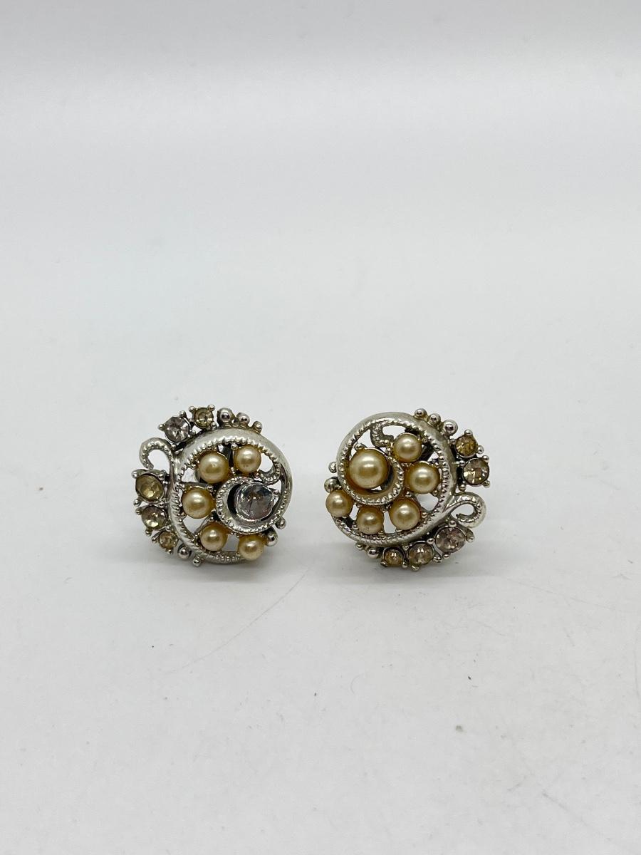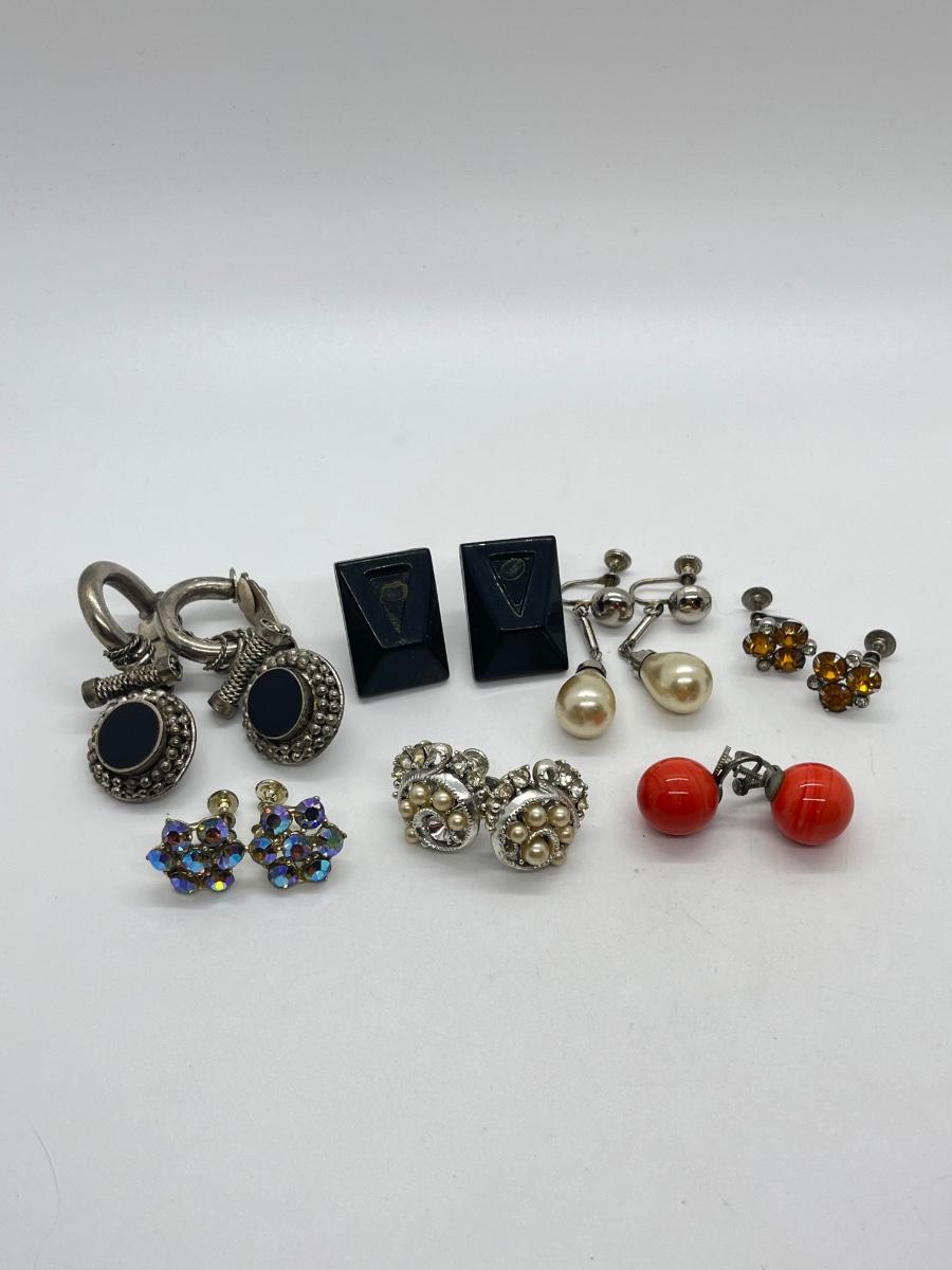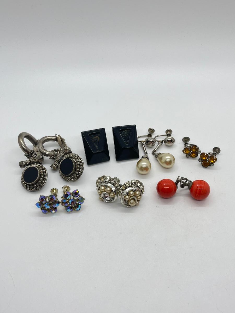 LOT 55: Seven Silvertone Clip On + Screwback Earrings