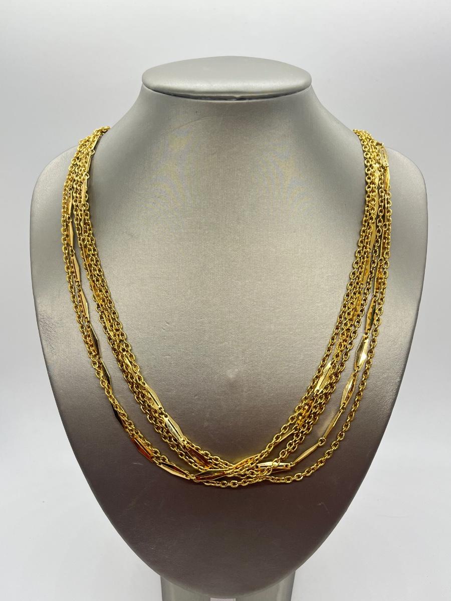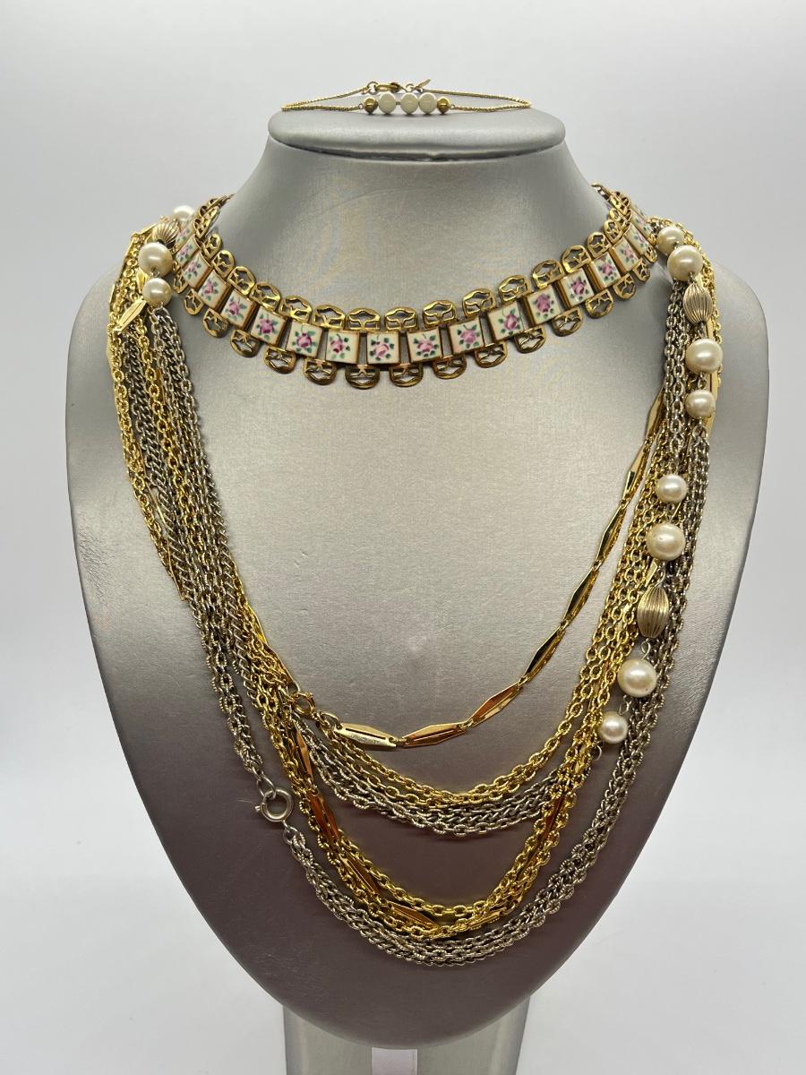 LOT 58: Goldtone Necklaces + Monet Bracelet- Two 54" Chains & 14" Choker