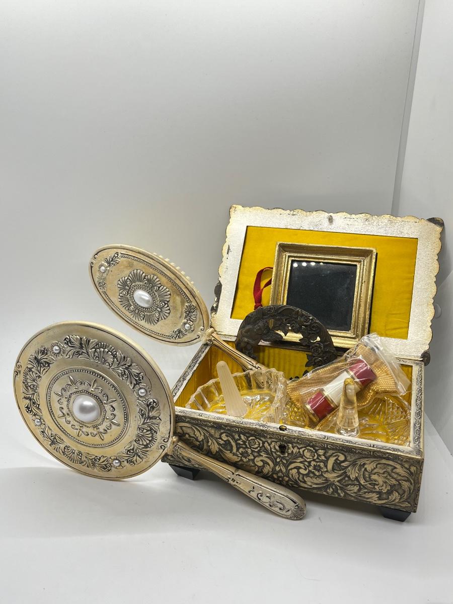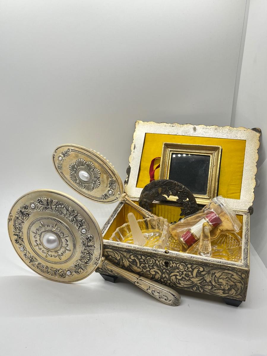 LOT 65: Vanity Brush + Mirror Set, Trinket Box & More