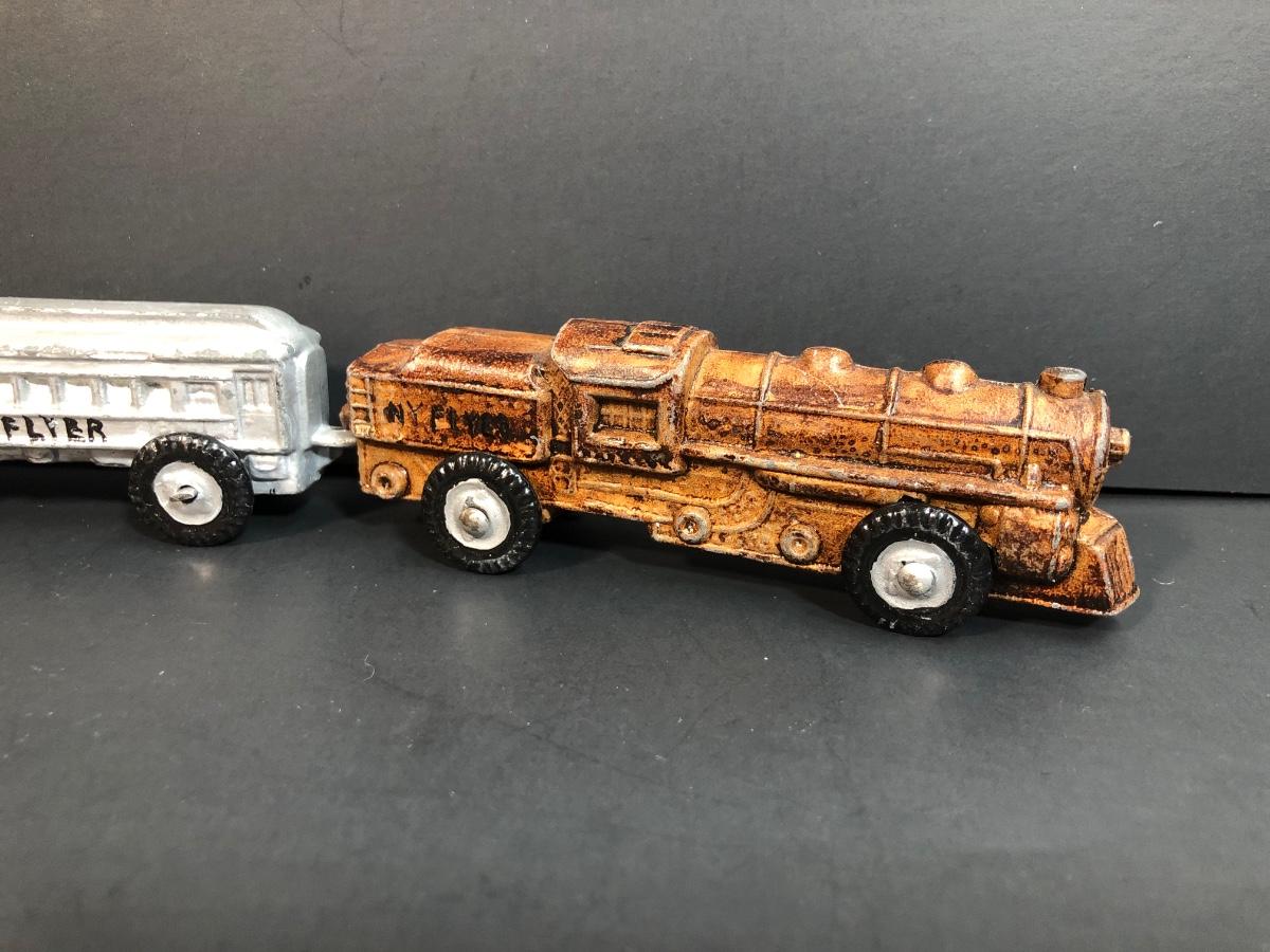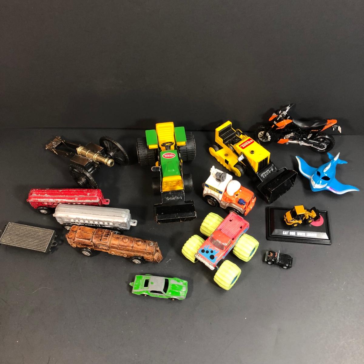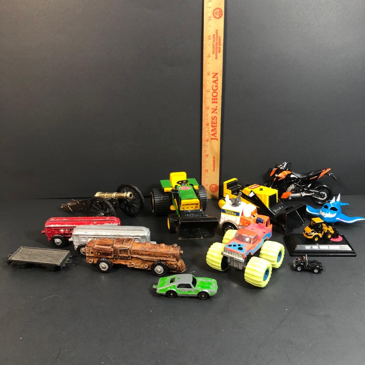 LOT 125M: Vintage Vehicle Collection: New York Flier Train, Miniature Cannon, CAT 906 Wheel Loader & More
