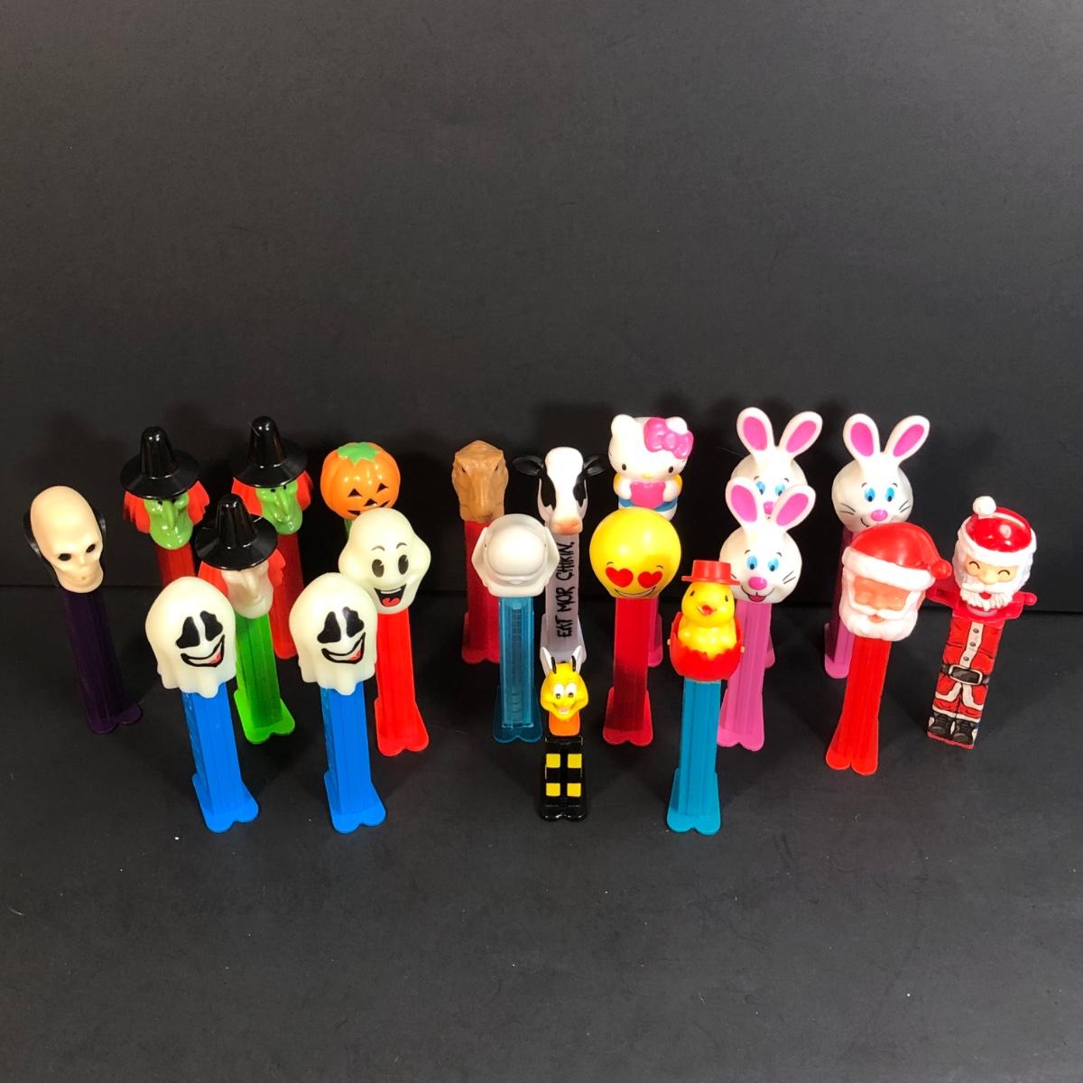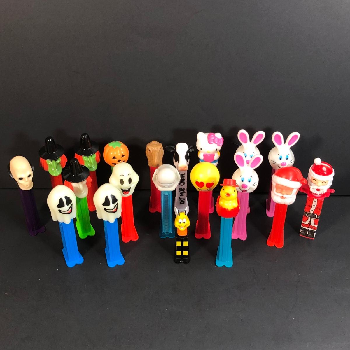 Includes ghosts, witches, pumpkin, dinosaurs, Chick-Fil-A, Hello Kitty, heart eyes emoji, Easter Bunnies, Santa, and a small Cheerios dispenser.