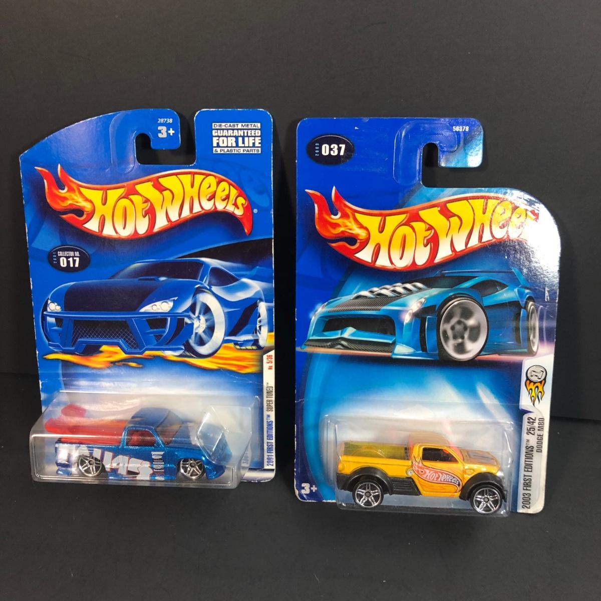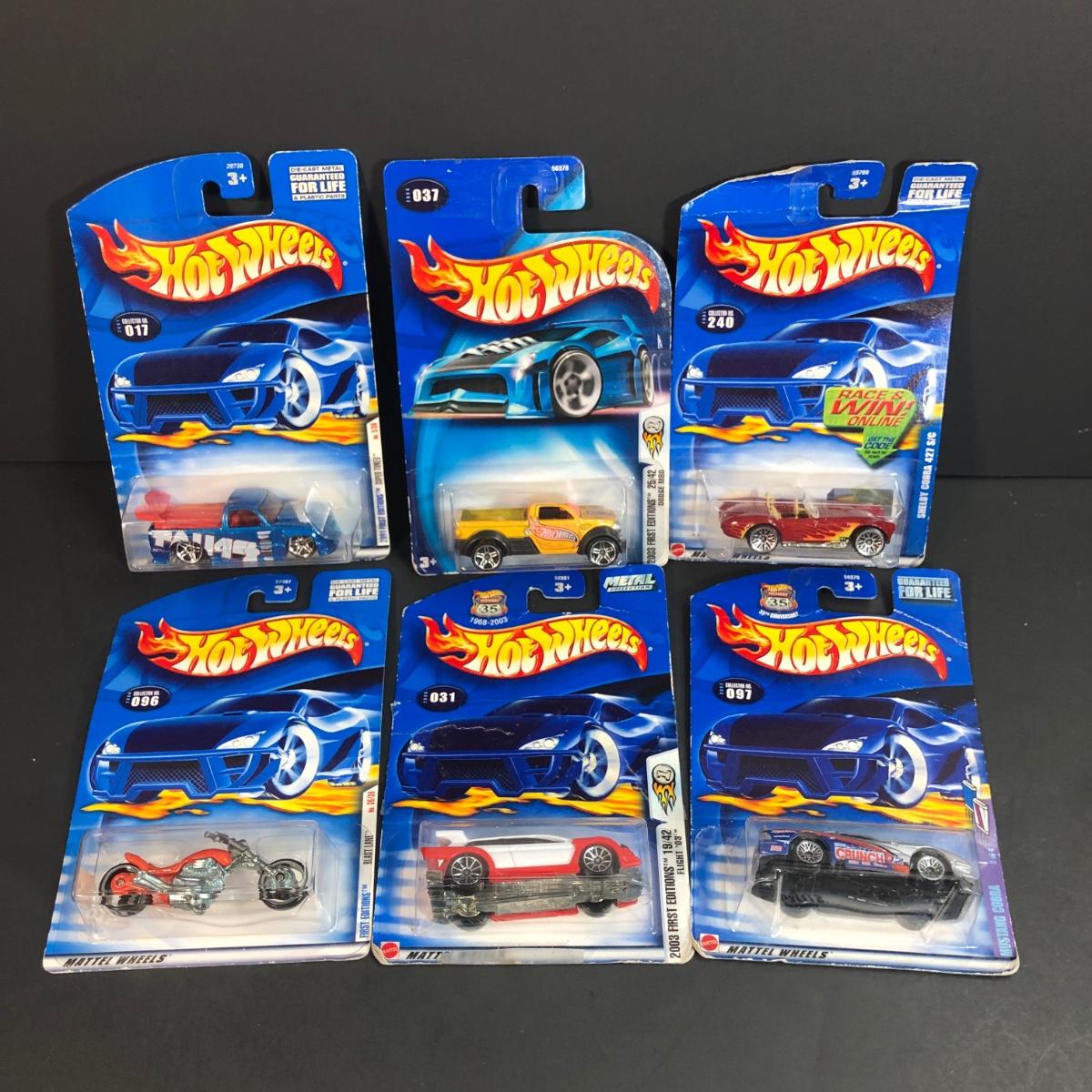 LOT 136M: Hot Wheels: 2001 First Editions Super Tuned, 2003 First Editions Dodge M80, First Editions Blast Lane, 2003 First Editions Flight '03, Crunch Bar Mustang Cobra, & Shelby Cobra 427 S/C