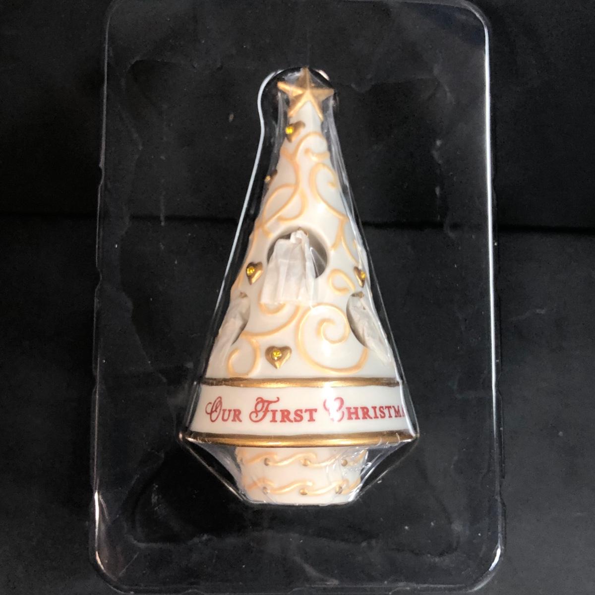 LOT 144M: Buyer's Choice Carolers, Star Box, Glass Christmas Tree Dish & Hallmark Keepsake First Christmas Together "Promise Tree"