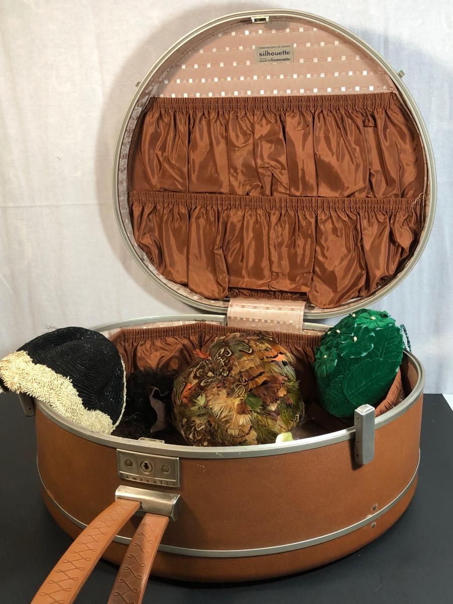 LOT 146M: Silhouette Hat Box Style 1640 by Samsonite w/ Vintage Fascinators