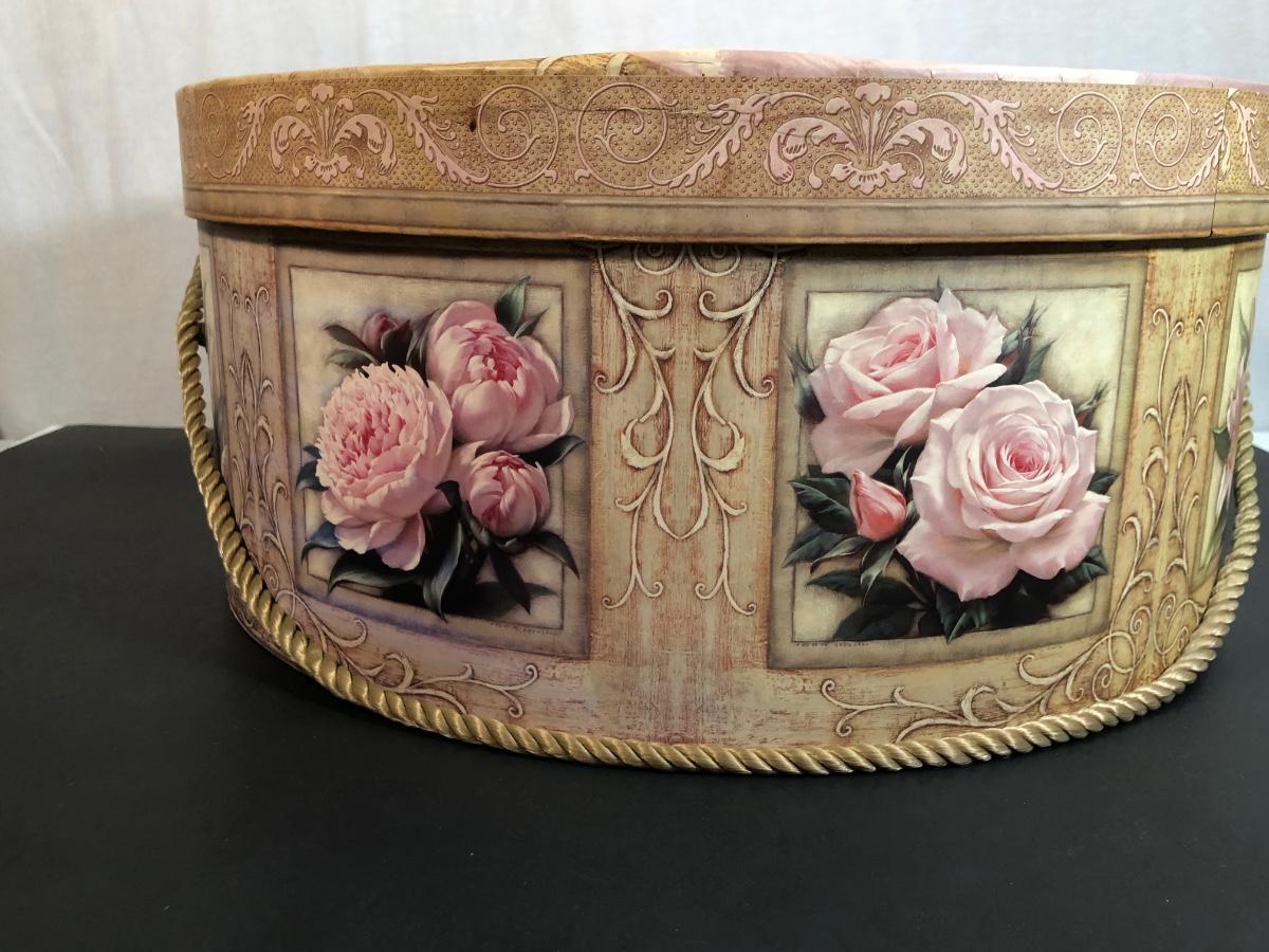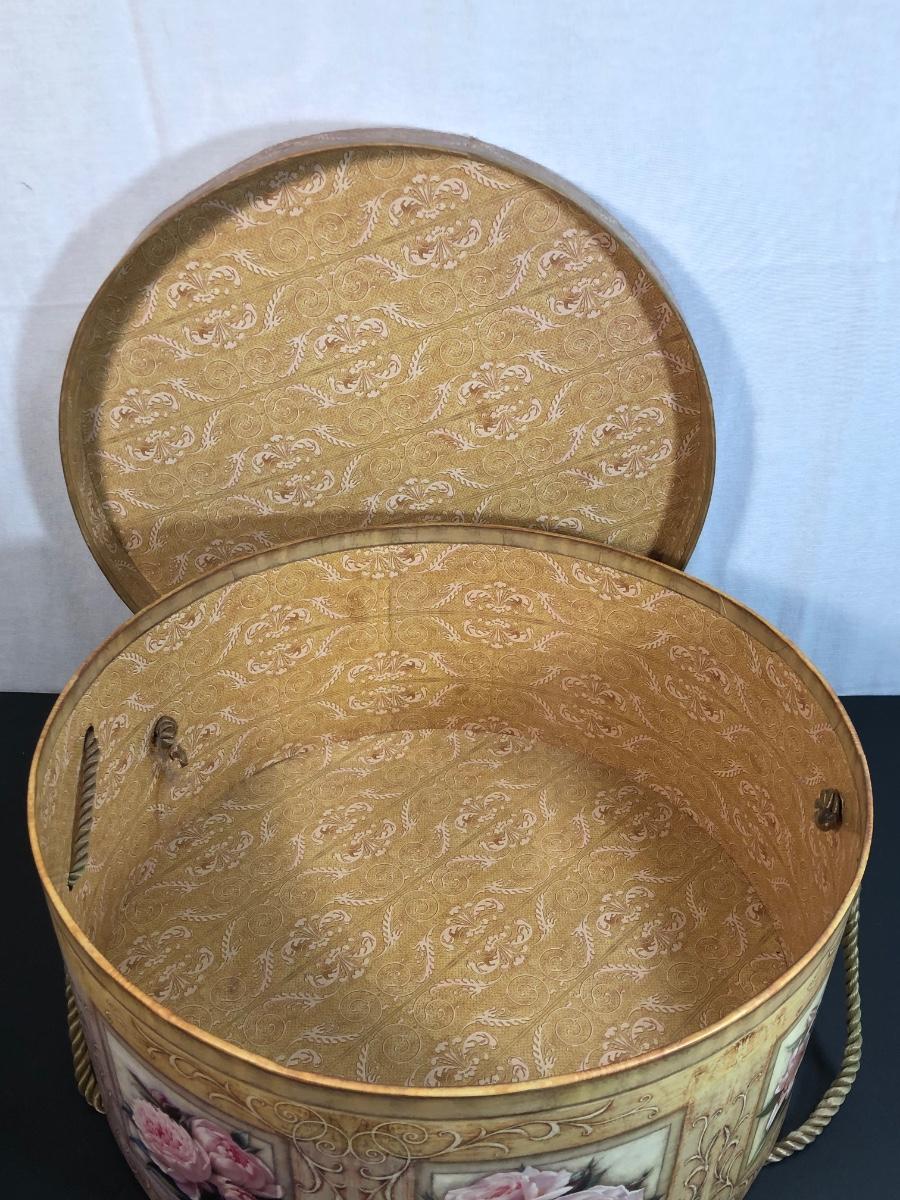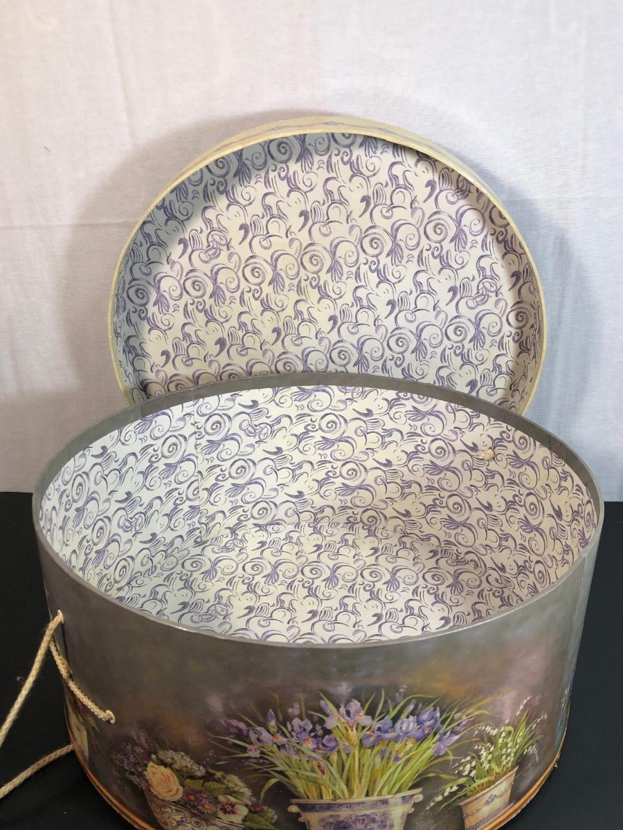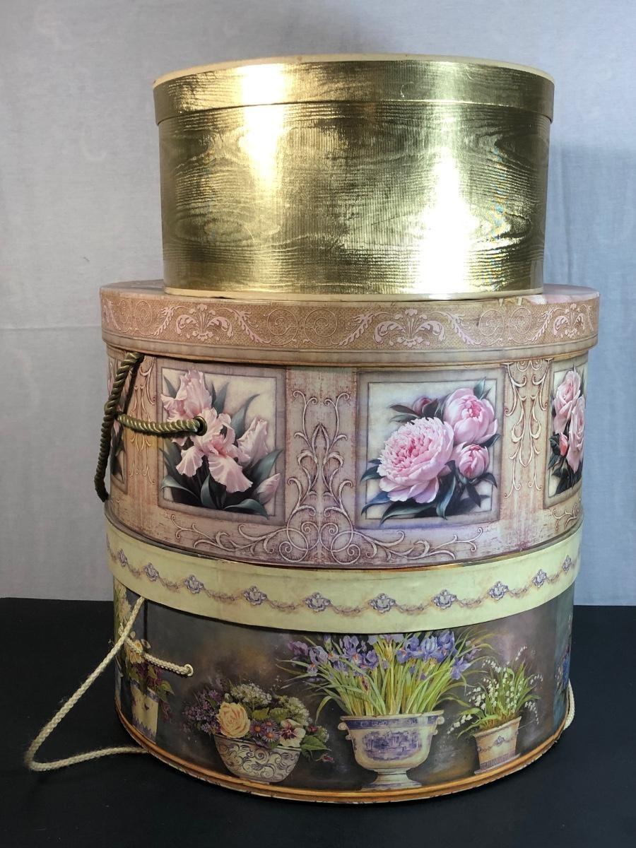 Includes 3 vintage hat boxes. One measures 12 inches in diameter and the other two measure 16 inches in diameter.