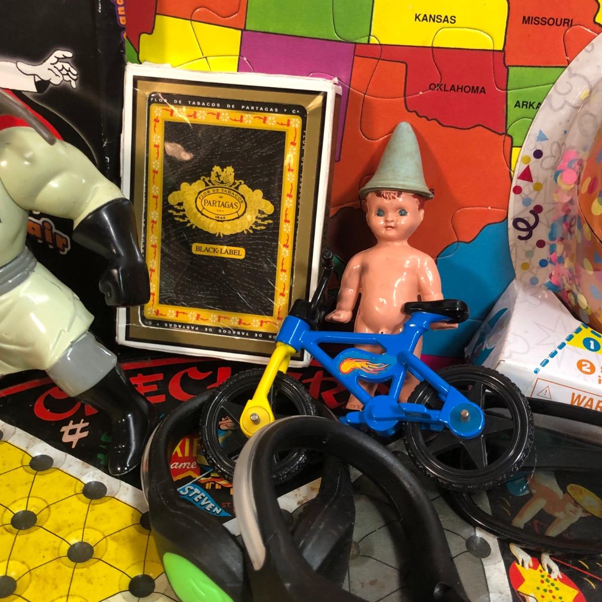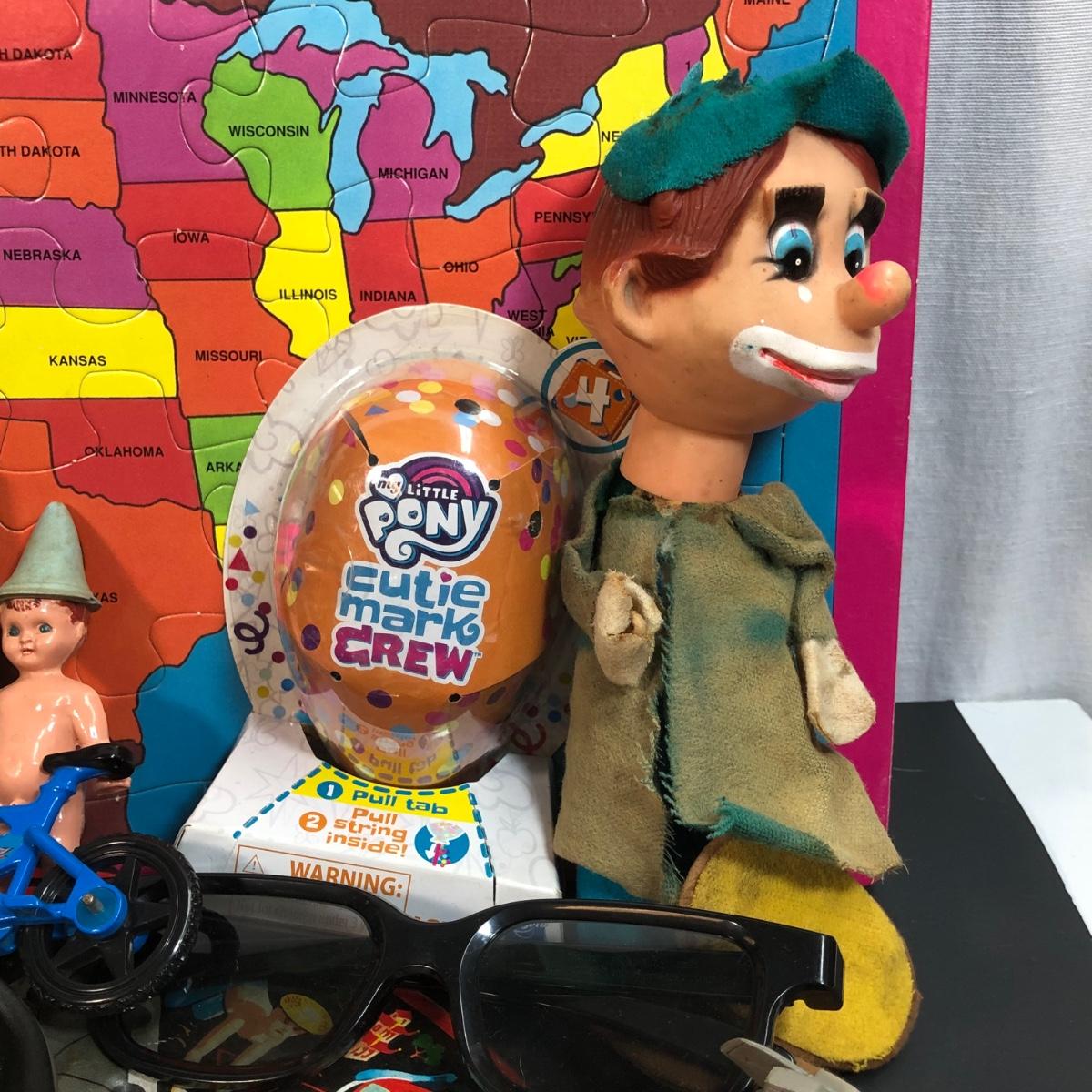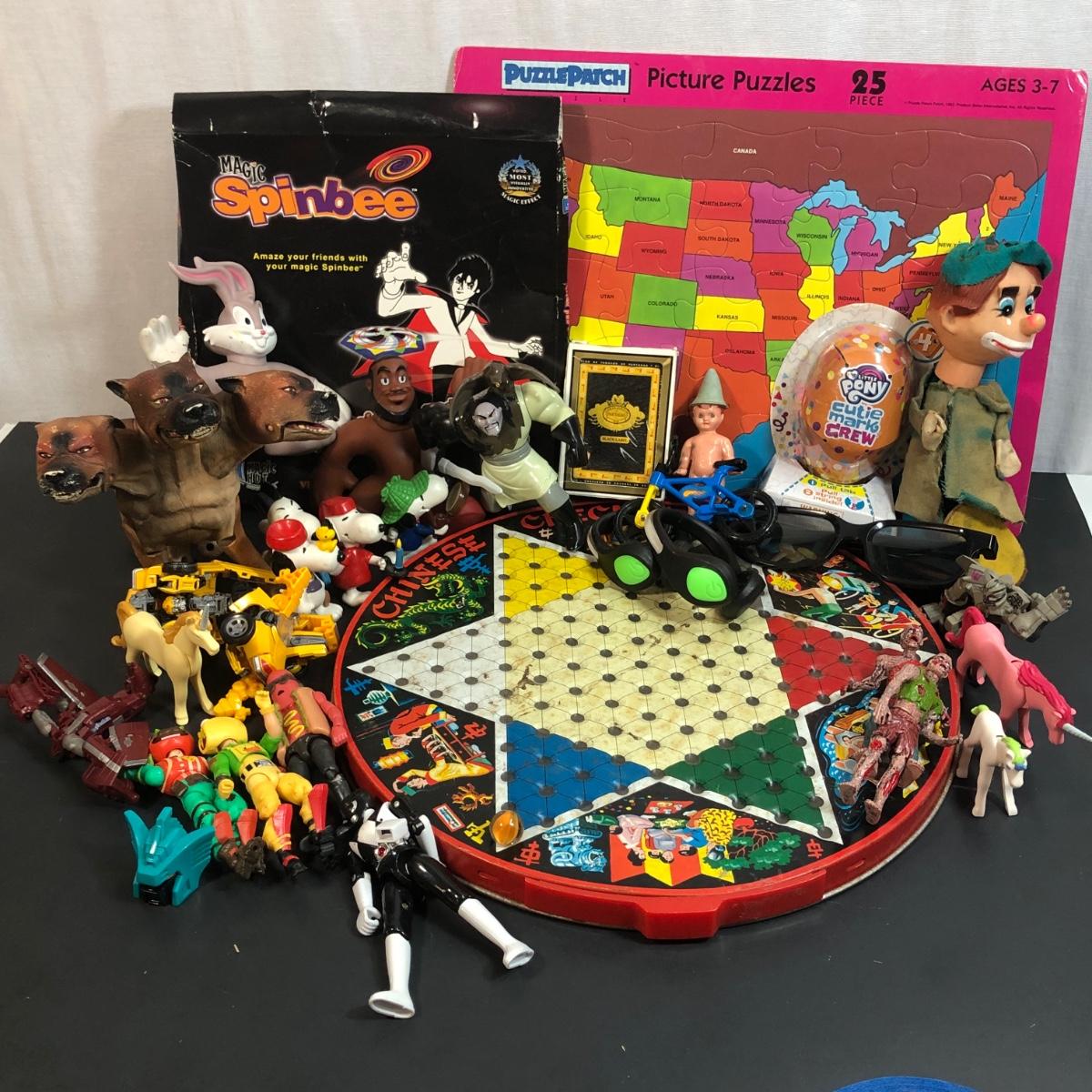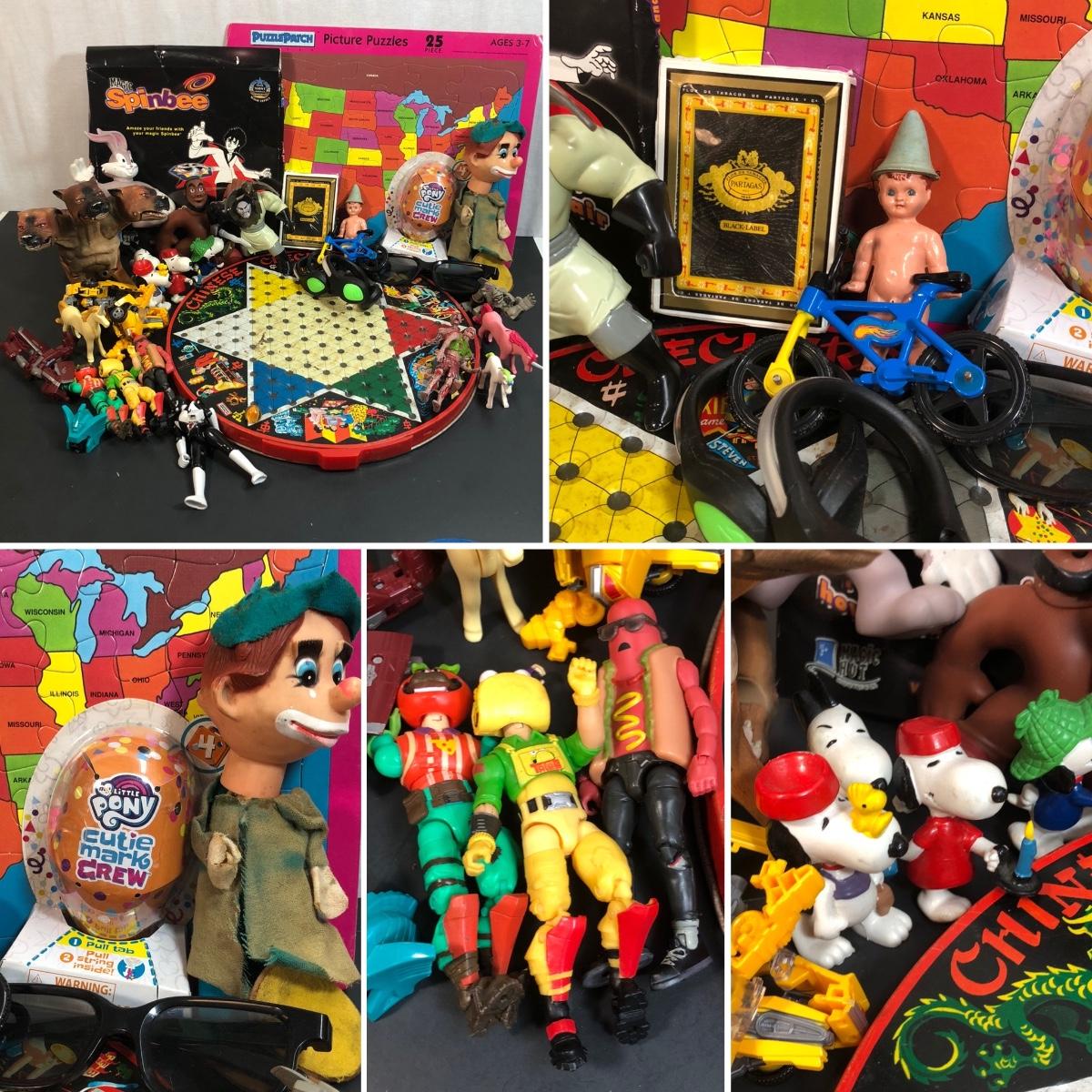 Includes a mixed bag of different toys, both vintage and modern.