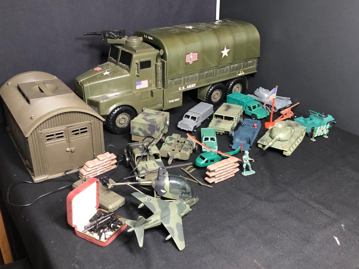 LOT 156M: Hasboro GI Joe Truck & Collection of Army Toys