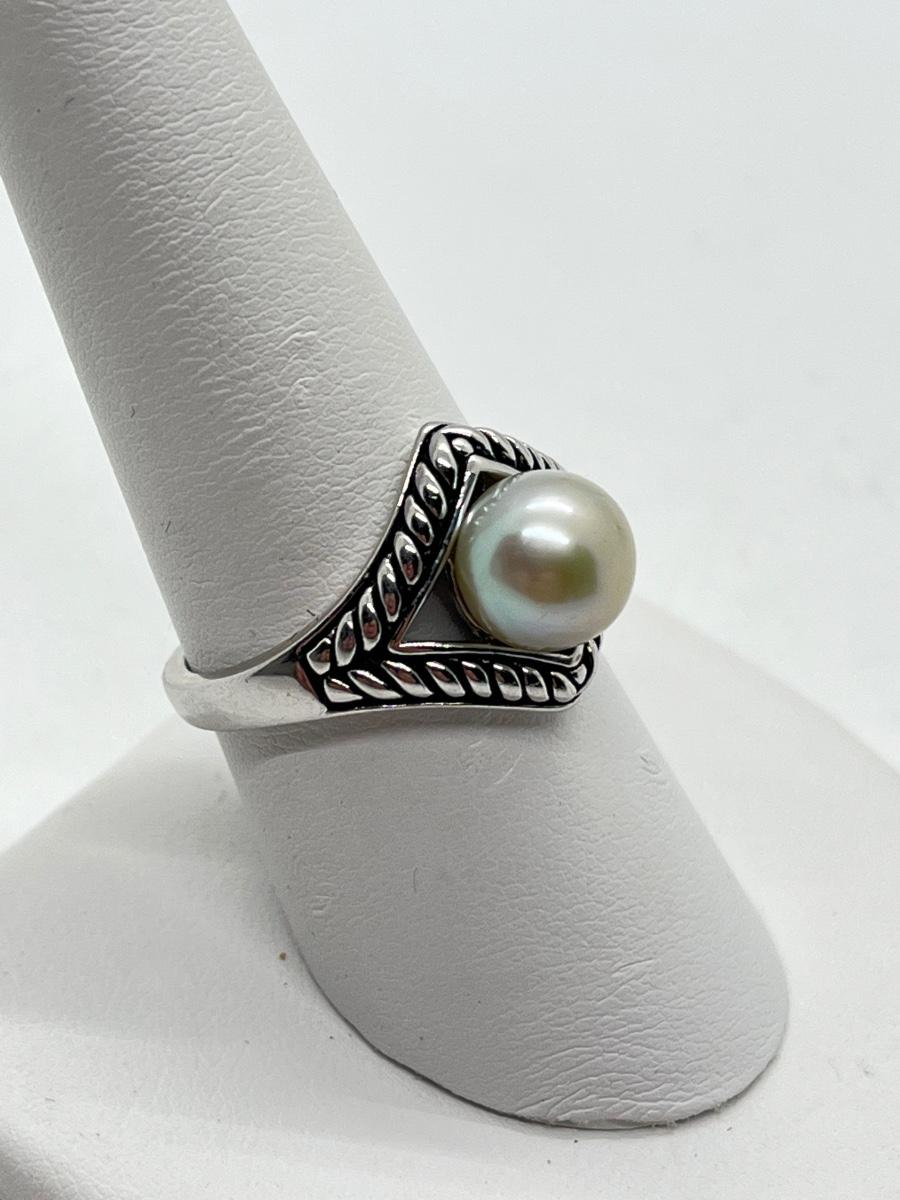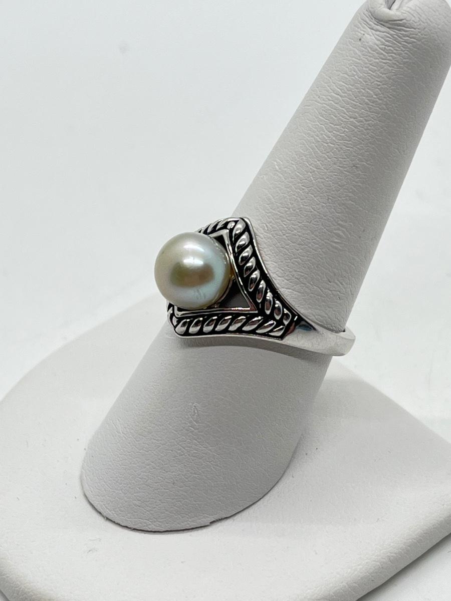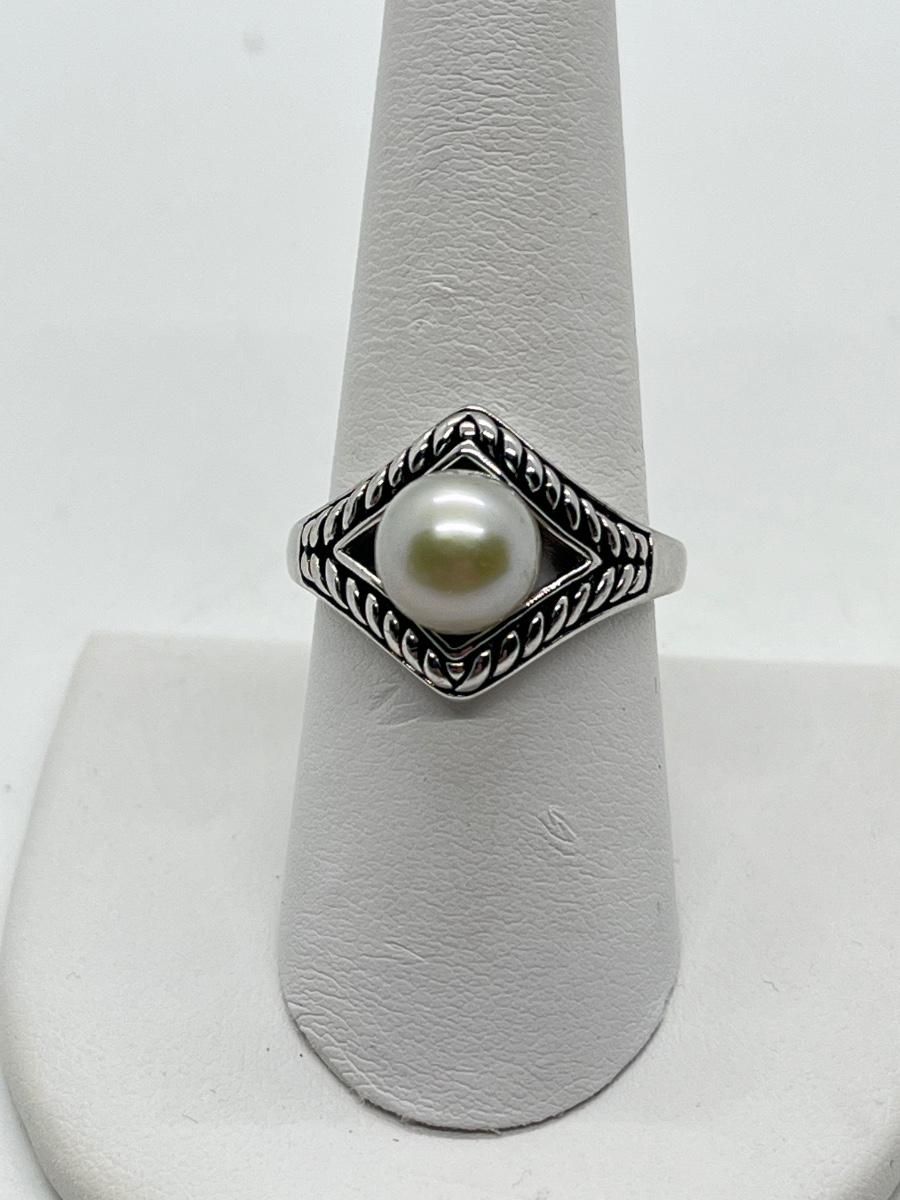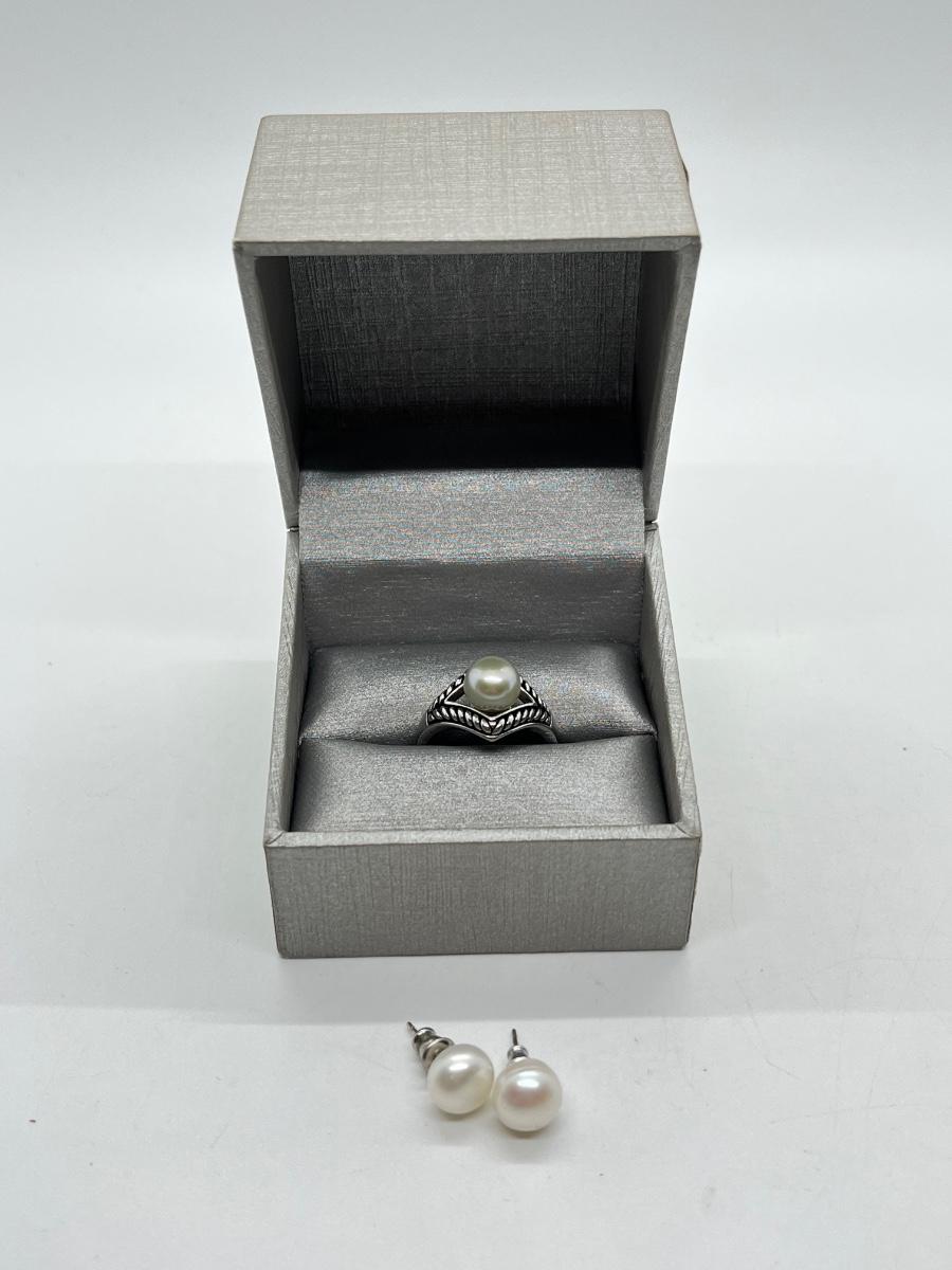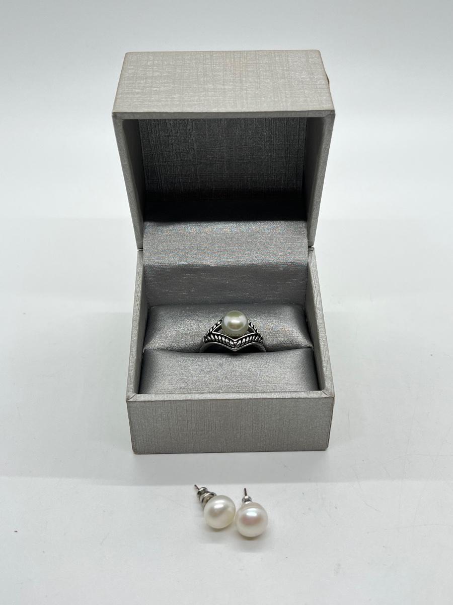 LOT 204: Honora Cultured Pearl Sterling Silver Ring (Size 8.5) with Faux Pearl Pierced Earrings