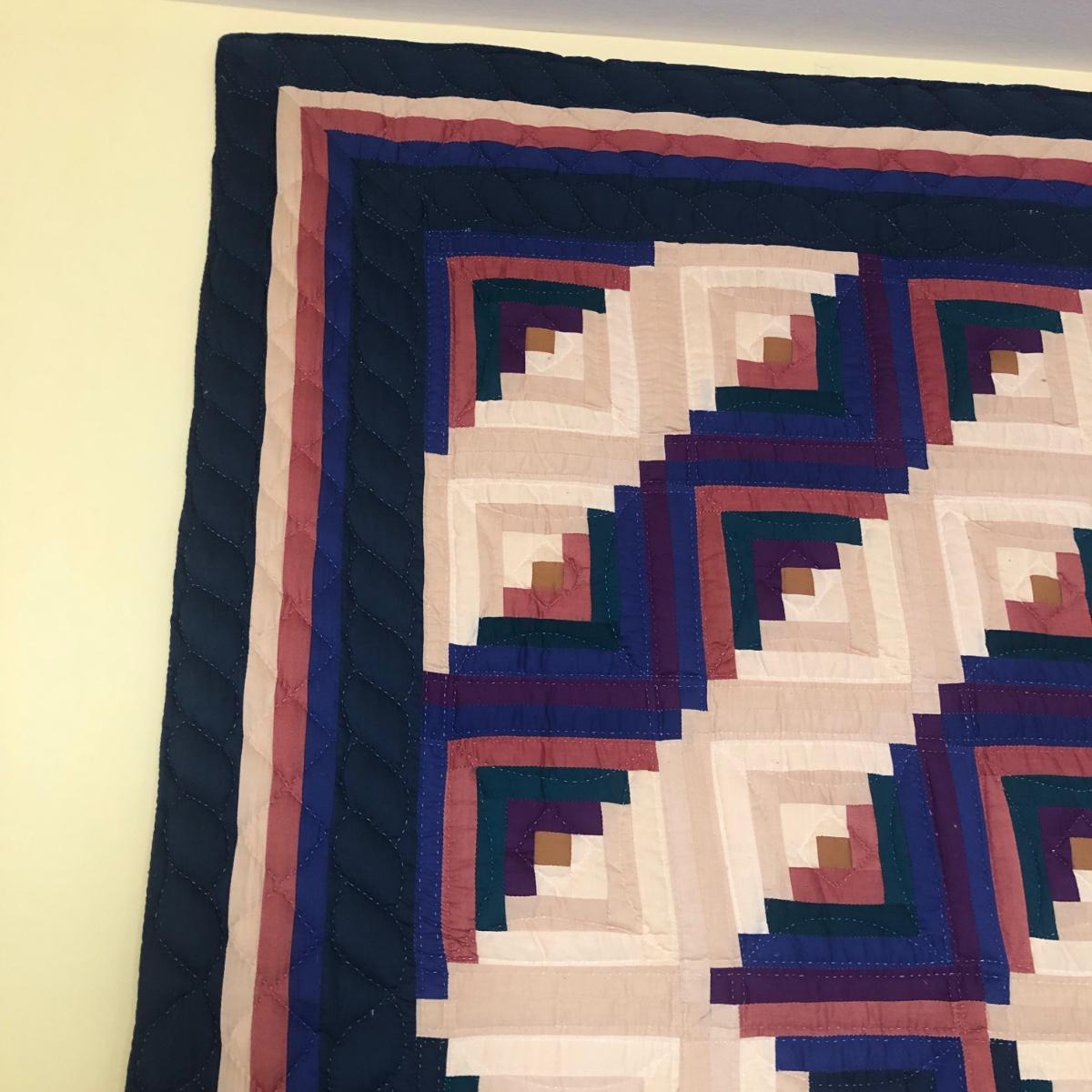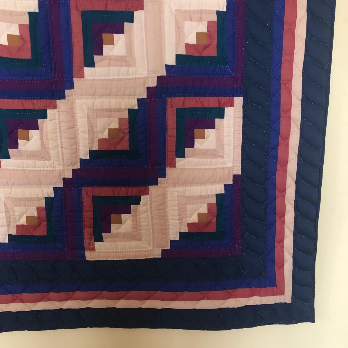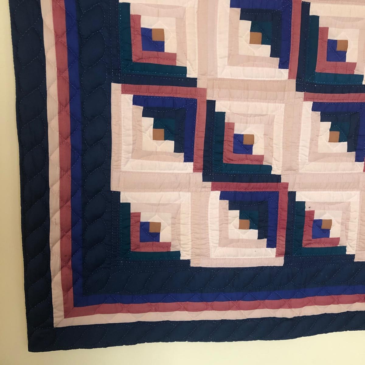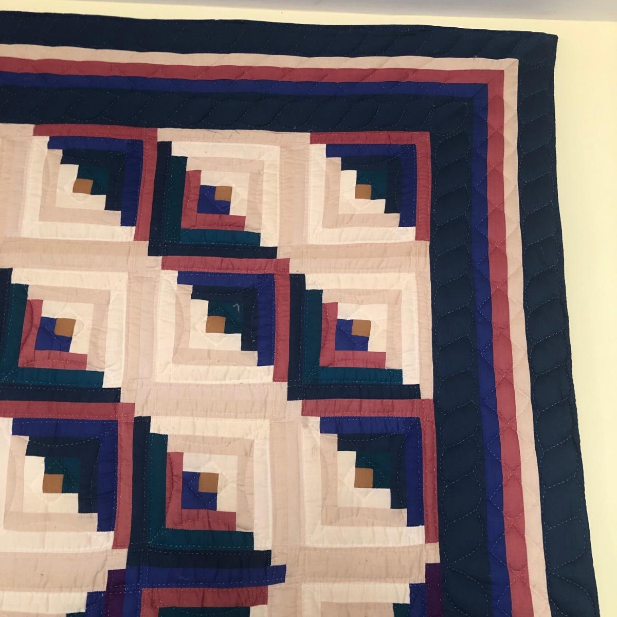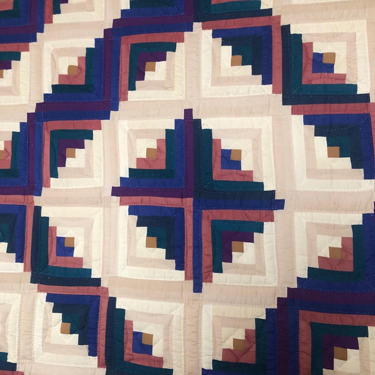 A large quilt done in the Log Cabin pattern. Measures 84 x 68 inches.