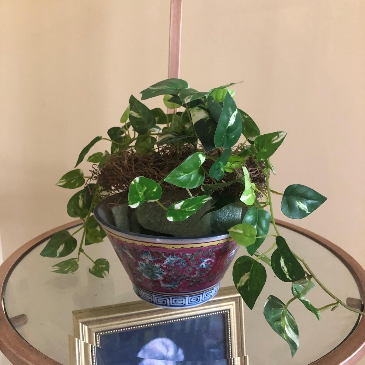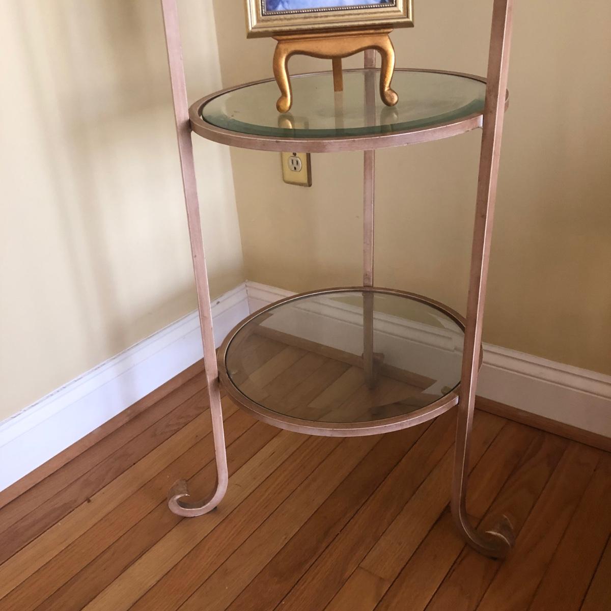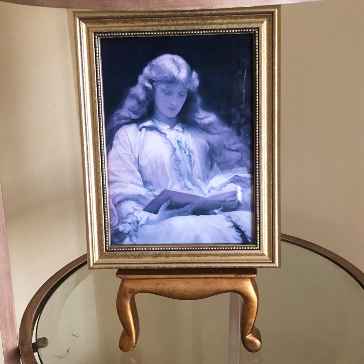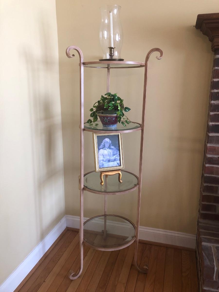 LOT 6M: Tower Shelf w/ Home Decor: Candle, Faux Plant, Framed Print