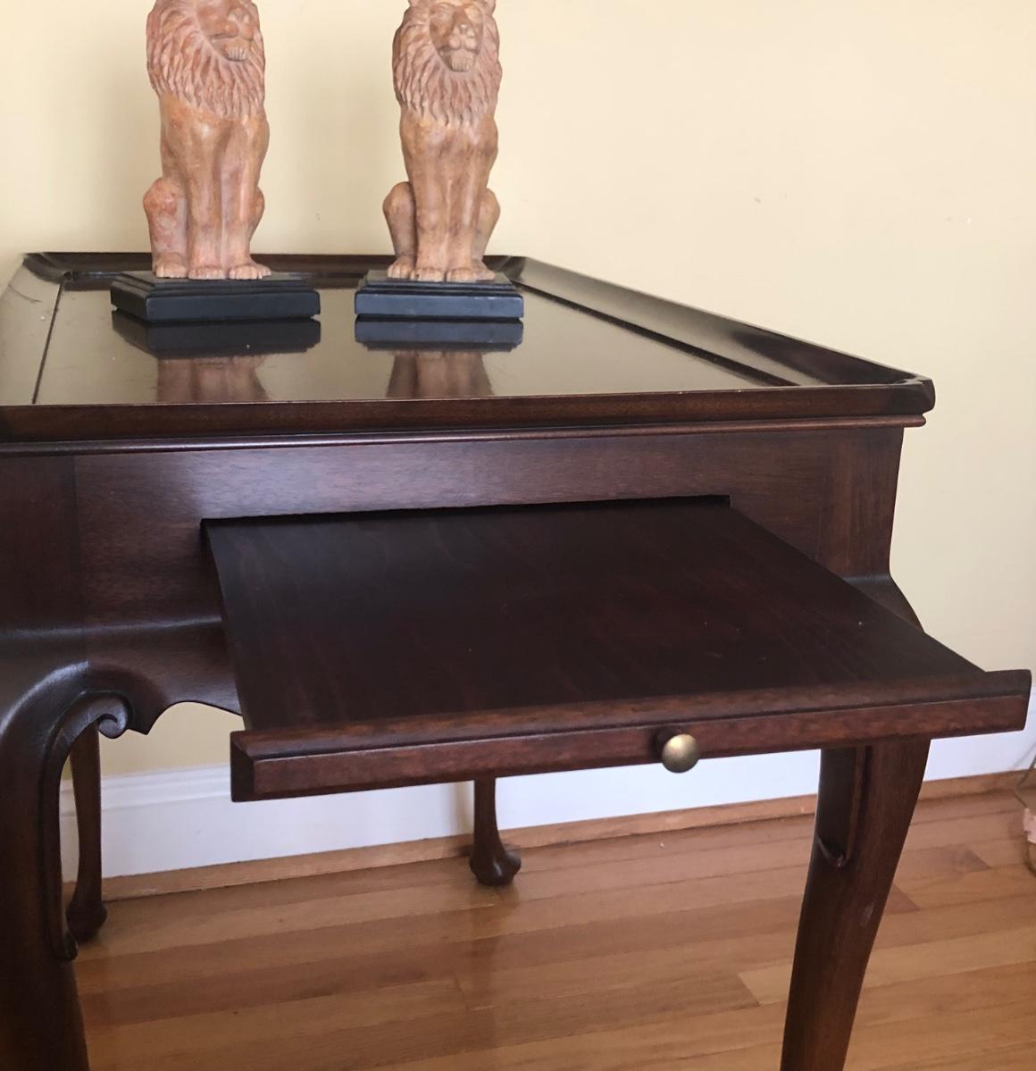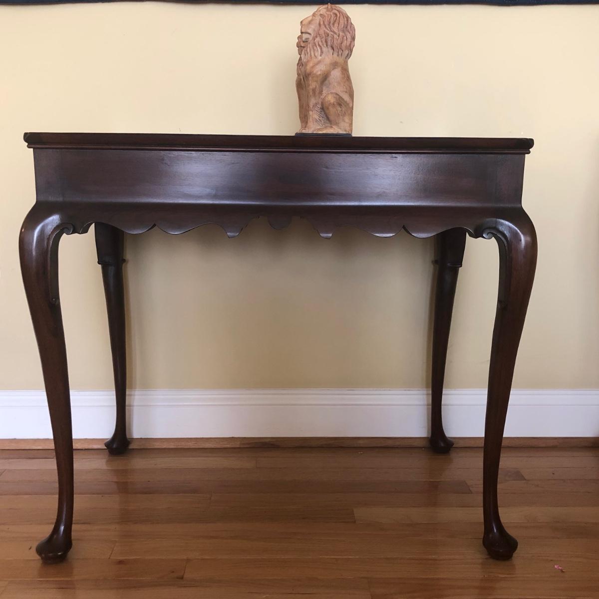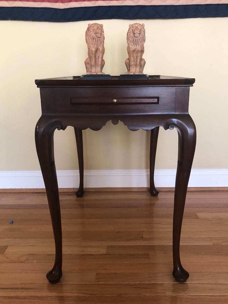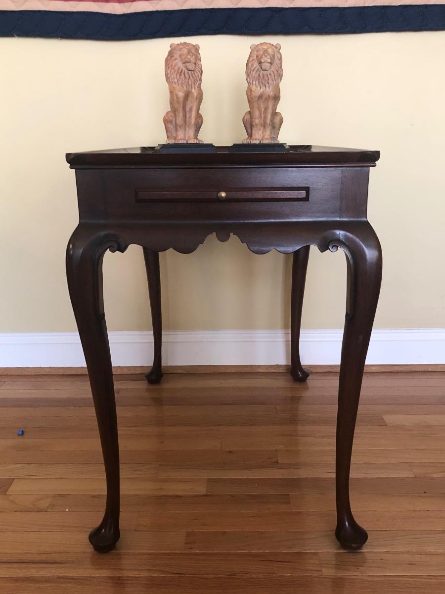 LOT 10M: Virginia Galleries Queen Anne Style Side Table w/ Lion Bookends