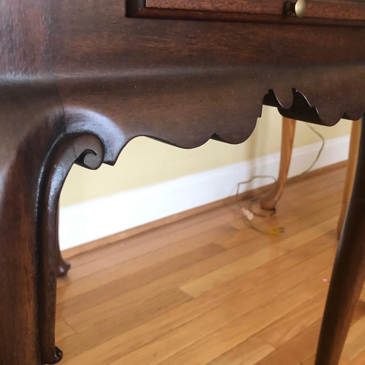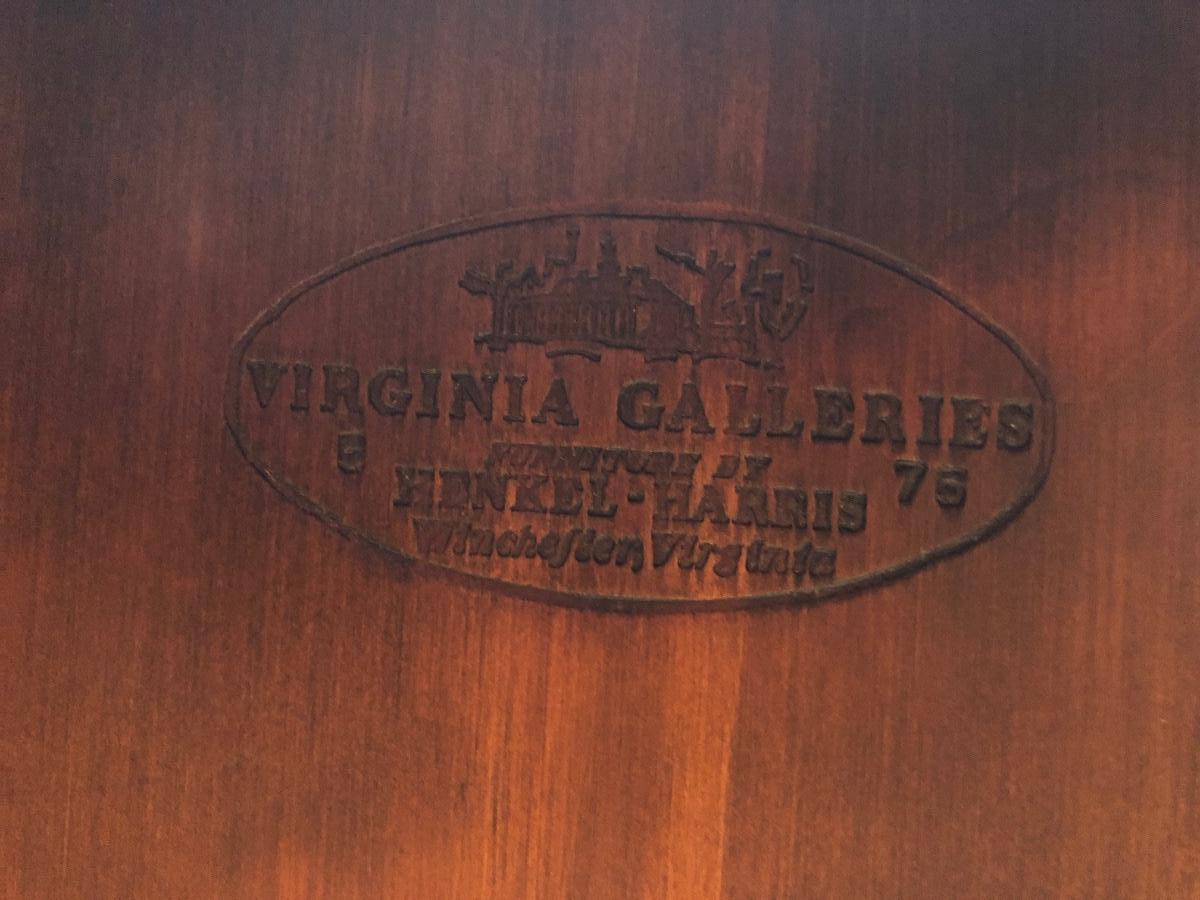 Made by Henkel-Harris in Winchester, Virginia. Table measures 30W x 18D x 27H.