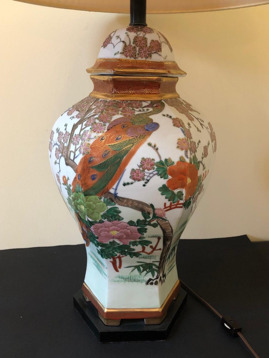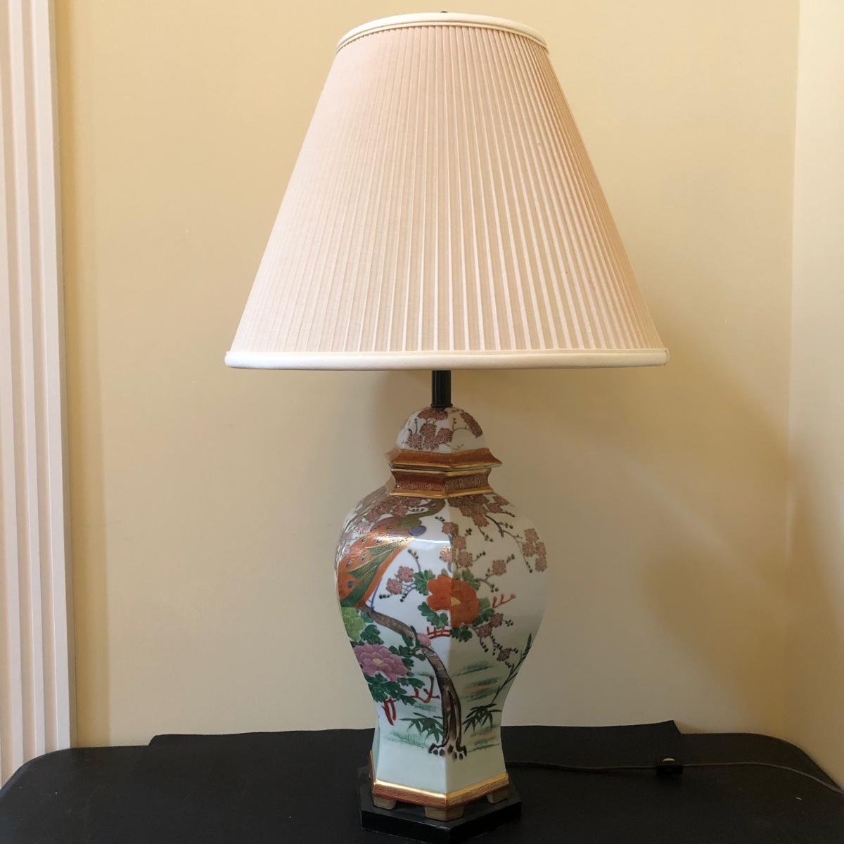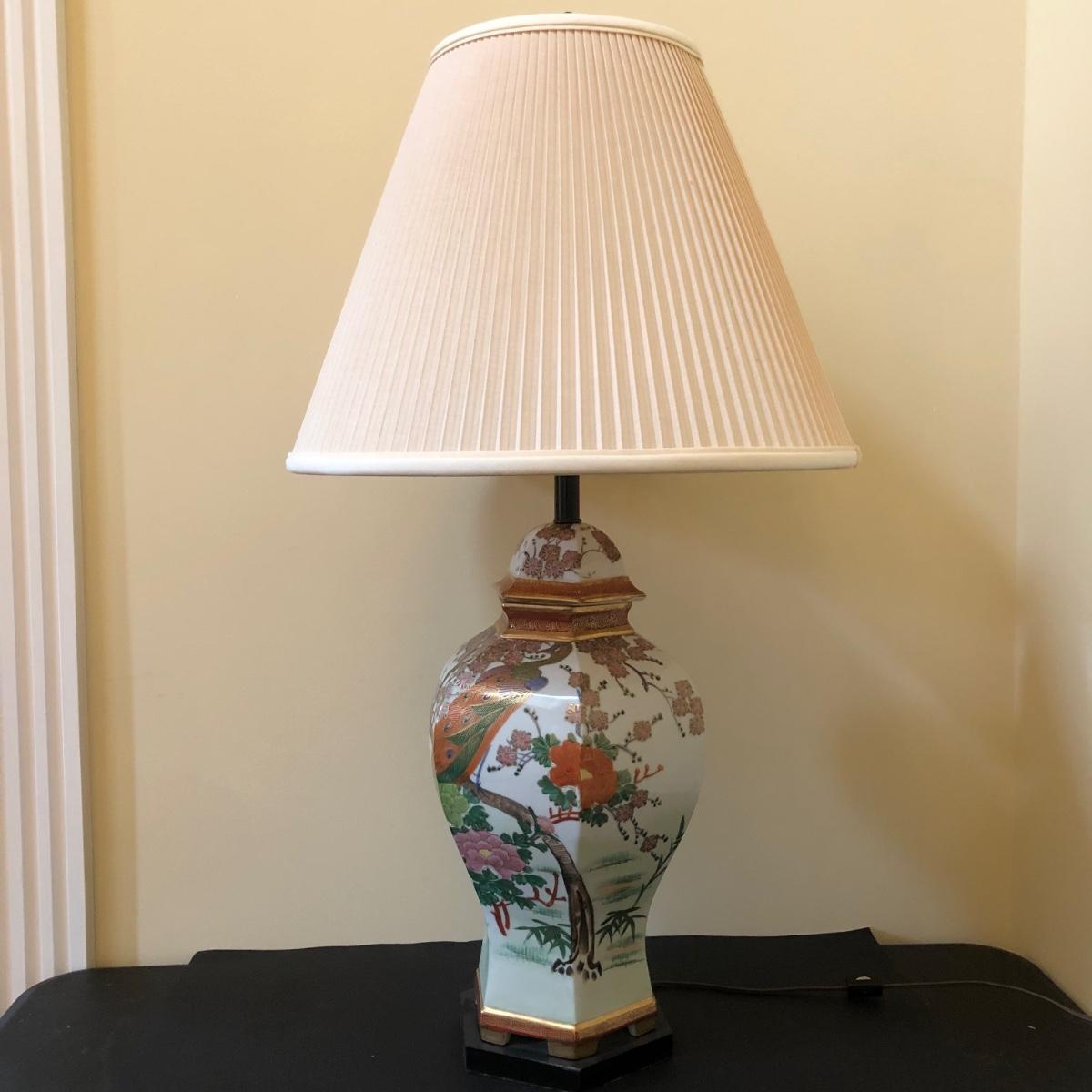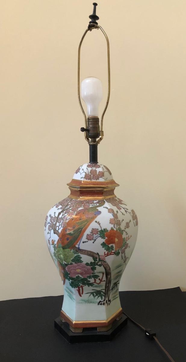 LOT 11M: Vintage Vase Lamp w/ Floral & Bird Design