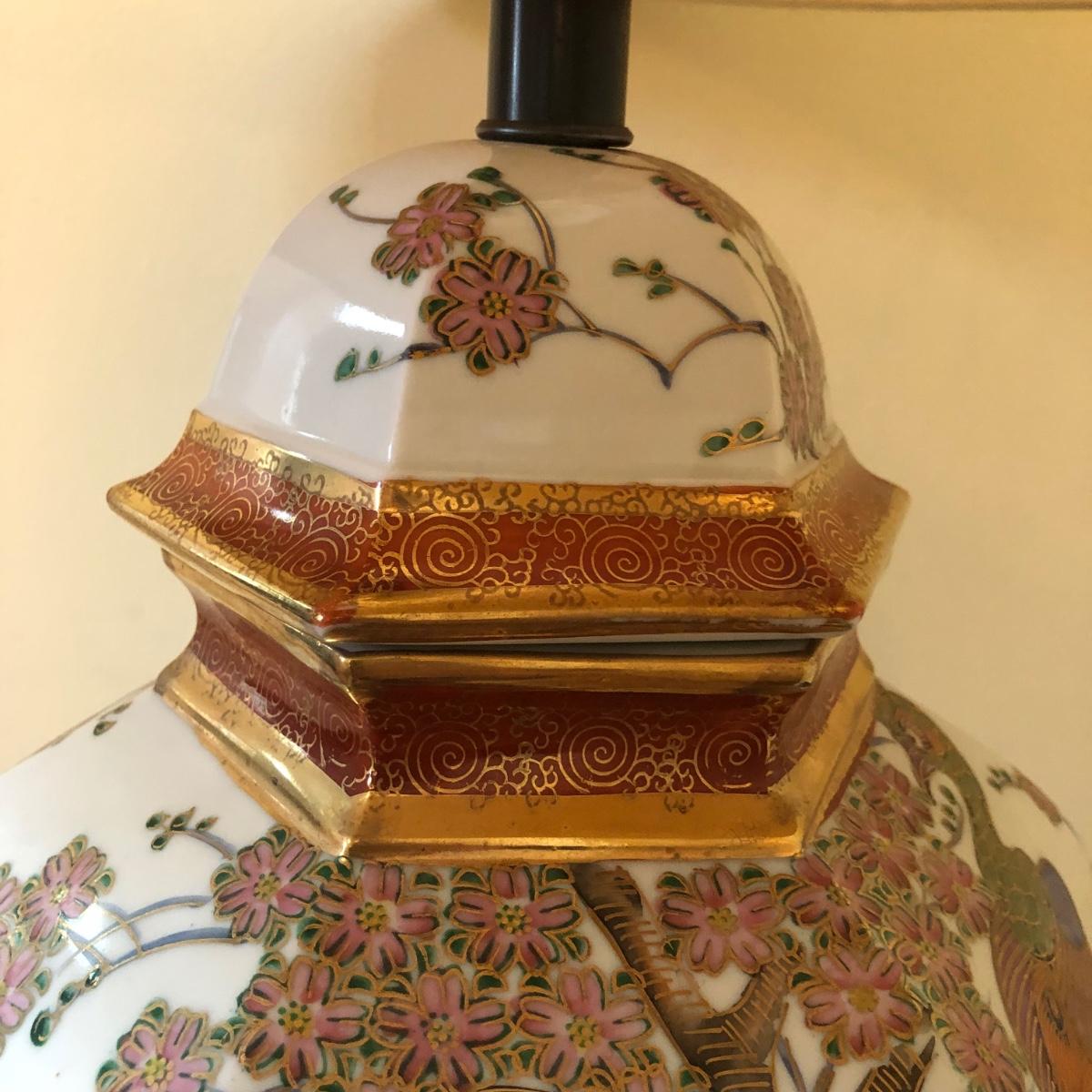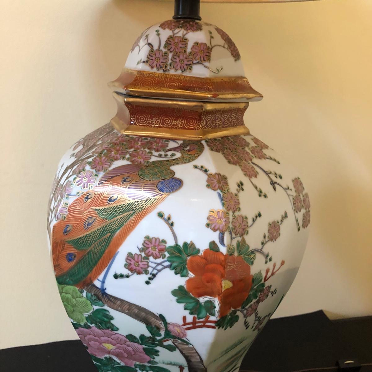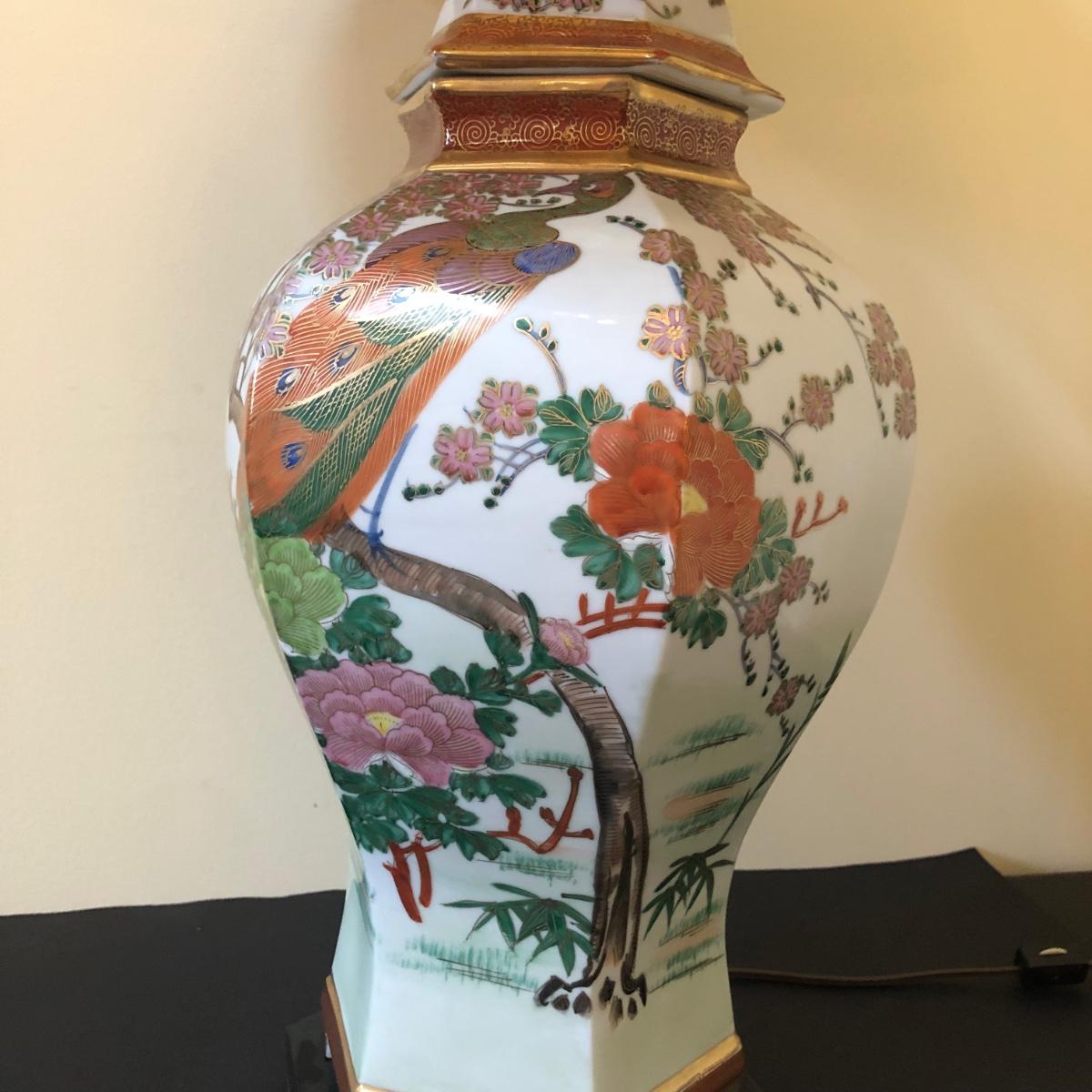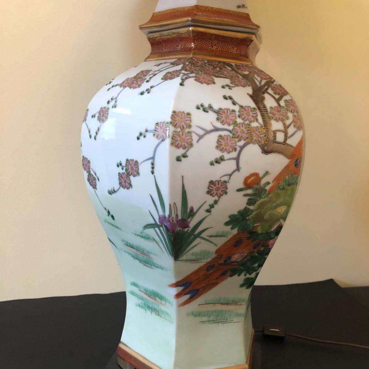 LOT 11M: Vintage Vase Lamp w/ Floral & Bird Design