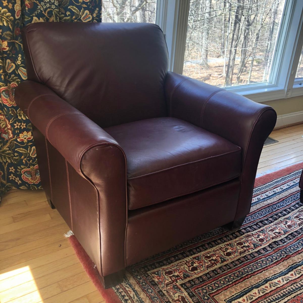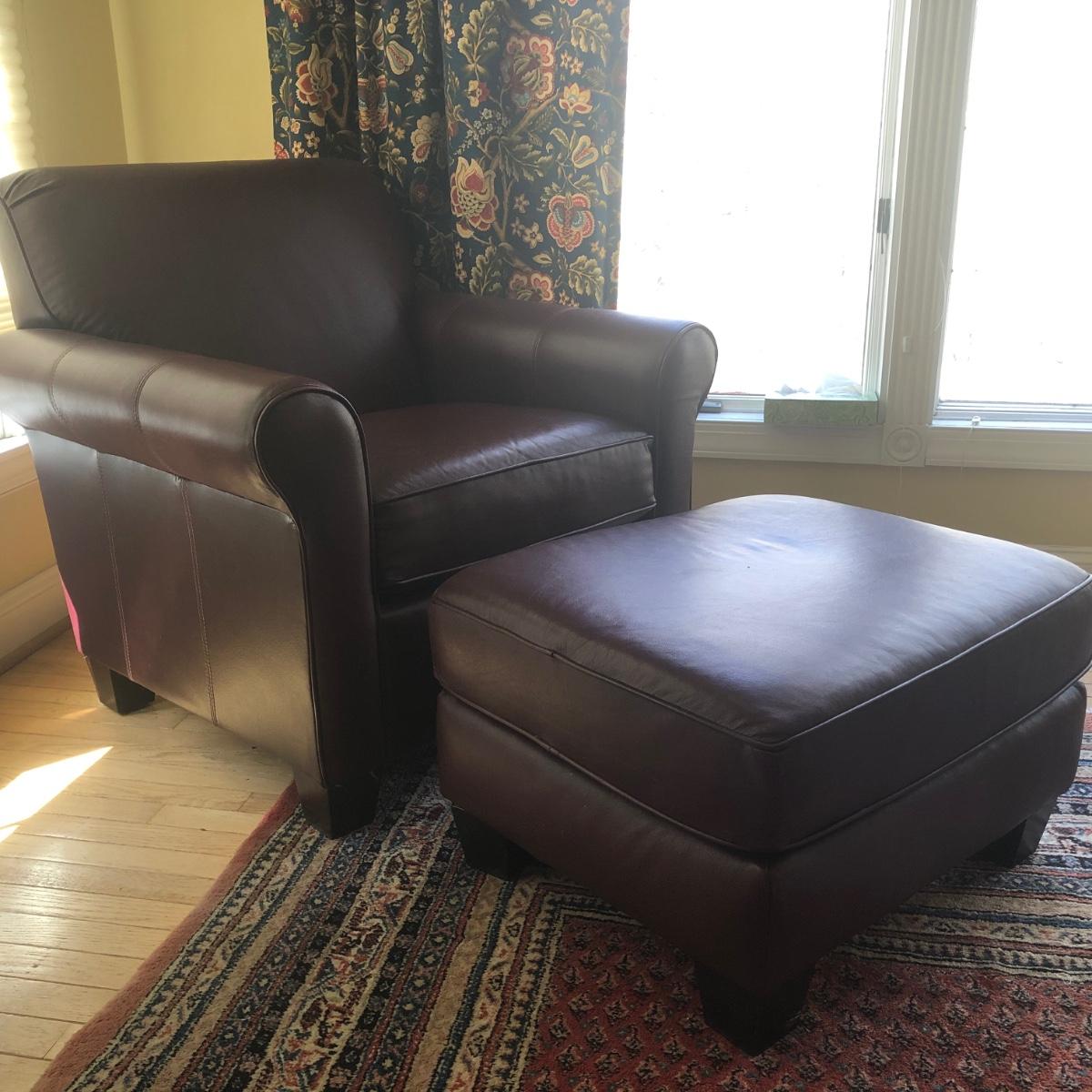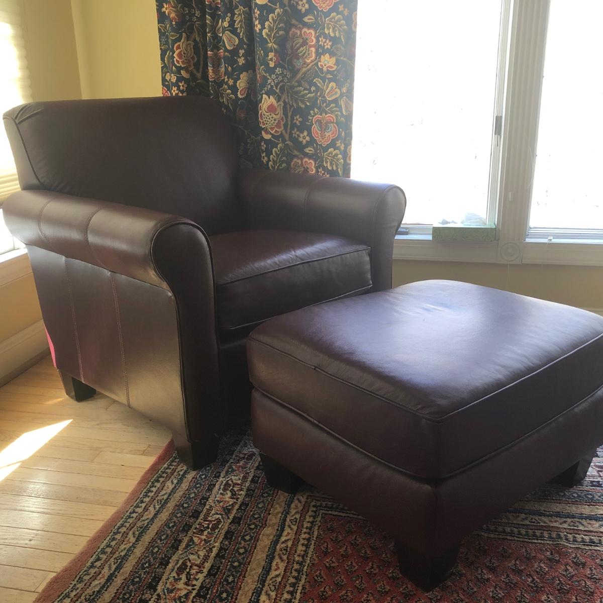 LOT 15M: England Furniture Salvador Rosetta (Red) Leather Armchair w/ Matching Ottoman
