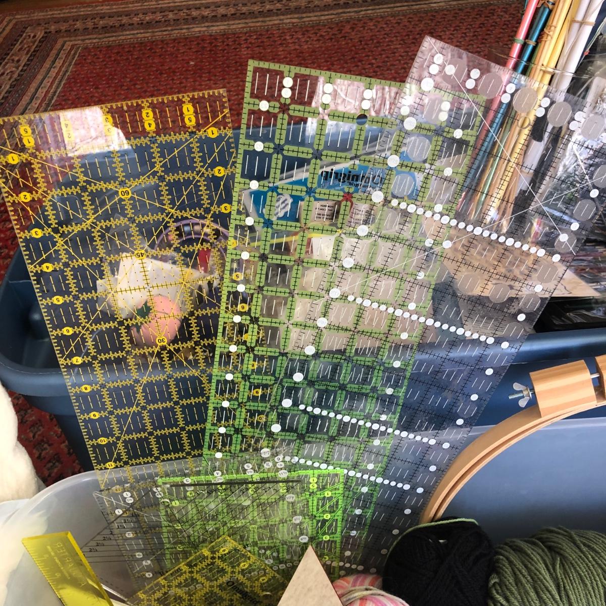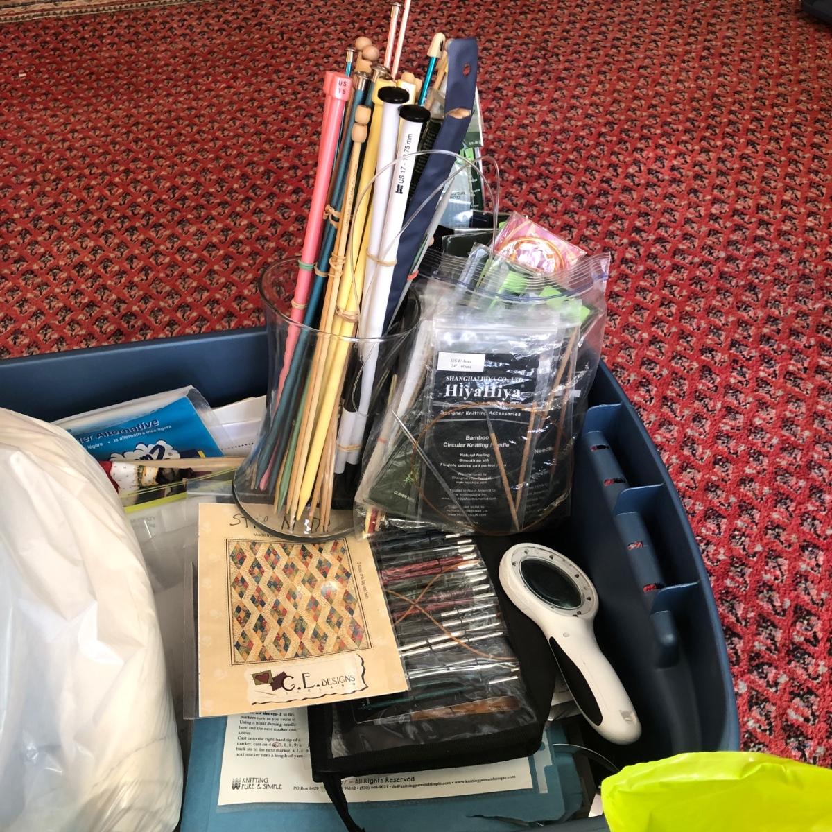 LOT 23M: Knitting & Crafting Bins: Yarn, Knitting Needles, Acrylic Rulers, Sewing Supplies & More!